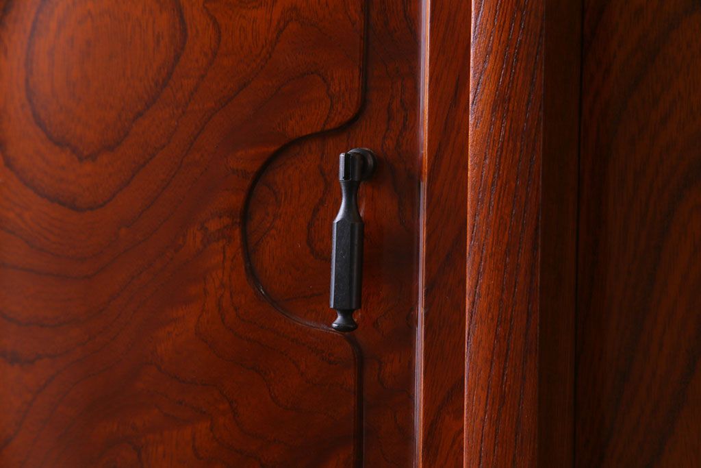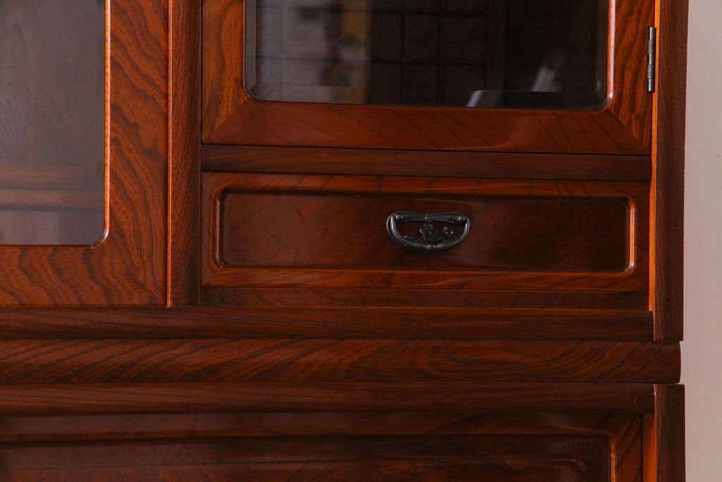 ラフジュ工房> 和箪笥> 茶箪笥・茶棚 > 中古美品 民芸家具 9尺サイズ 隠し付き 上質な存在感を放つ重ね茶箪笥(茶棚、飾り棚)