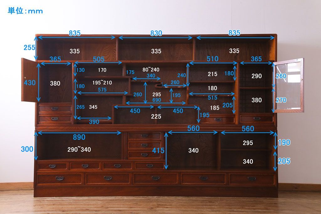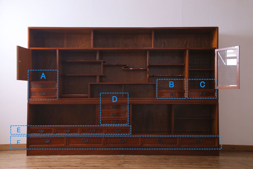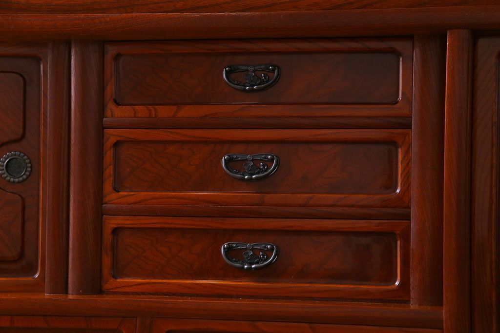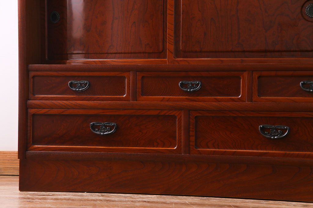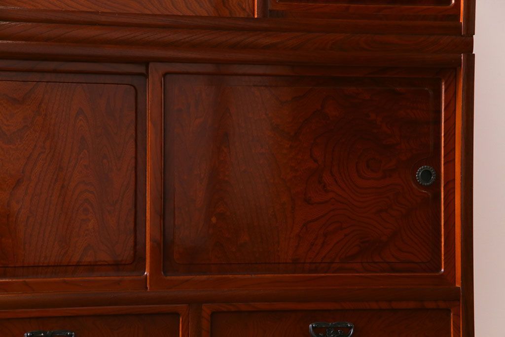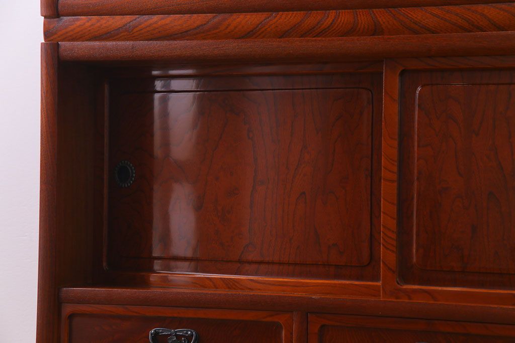 ラフジュ工房> 和箪笥 > 中古美品 民芸家具 9尺サイズ 隠し付き 上質な存在感を放つ重ね茶箪笥(茶棚、飾り棚)