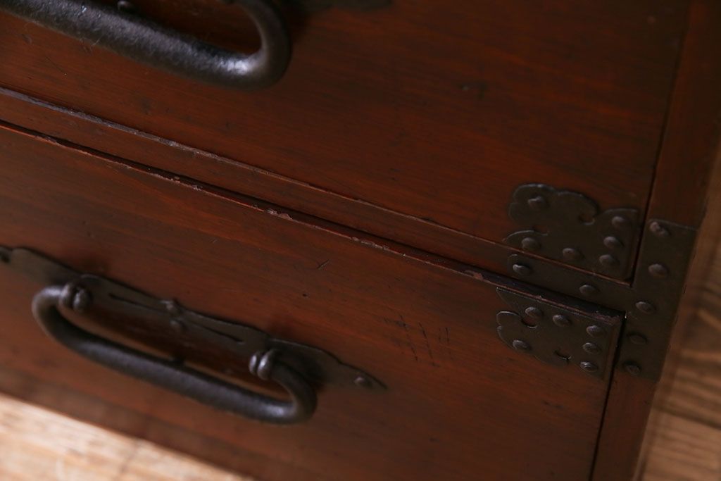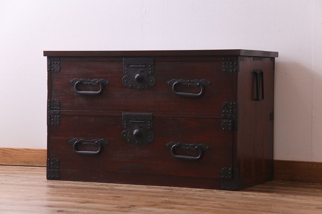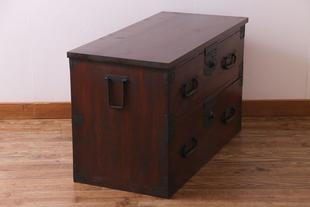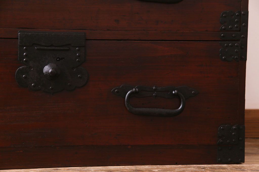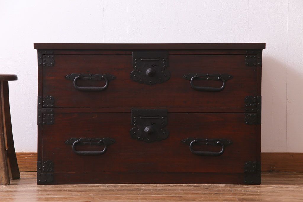 アンティーク家具 和製アンティーク 重厚な金具と味わいのある趣が魅力の箪笥ローボード(ローチェスト、衣装箪笥)