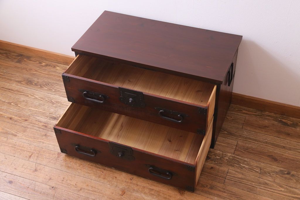 ラフジュ工房> 和箪笥 > アンティーク家具 和製アンティーク 重厚な金具と味わいのある趣が魅力の箪笥ローボード(ローチェスト、衣装箪笥)