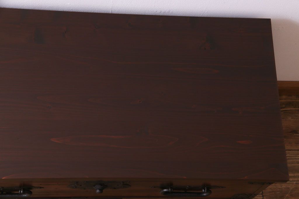 ラフジュ工房> キャビネット・戸棚> テレビ台・ローボード > アンティーク家具 和製アンティーク 重厚な金具と味わいのある趣が魅力の箪笥ローボード(ローチェスト、衣装箪笥)