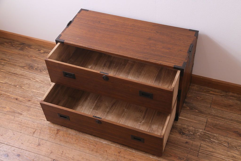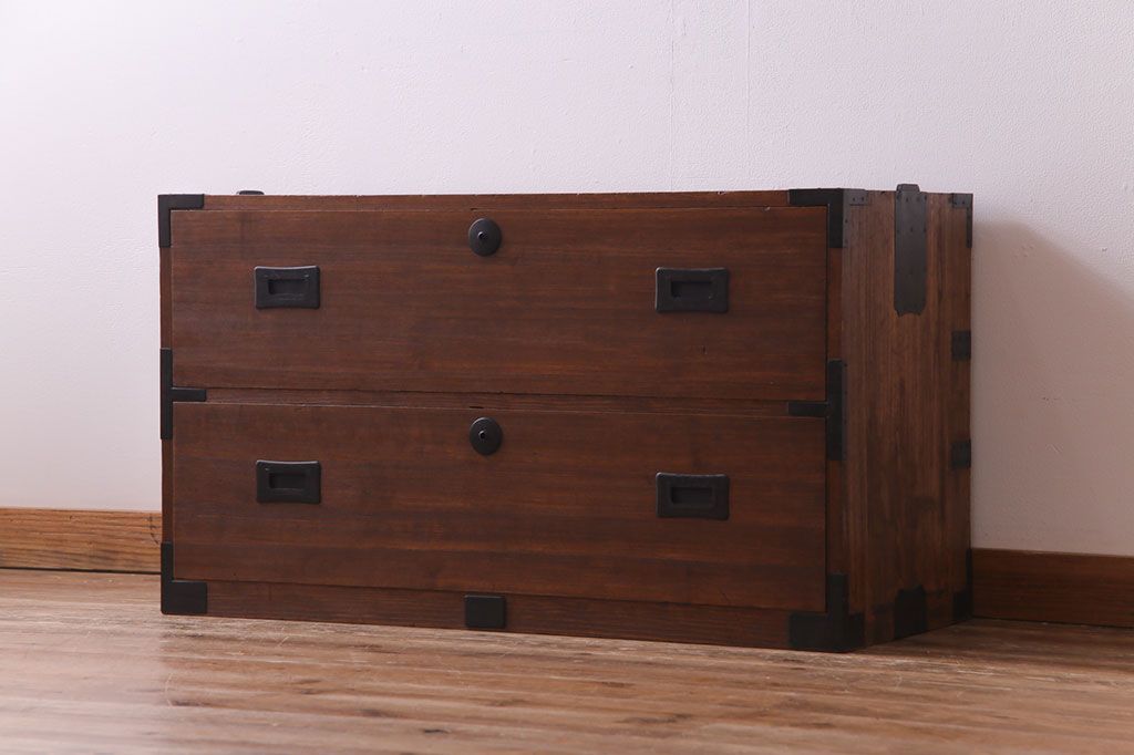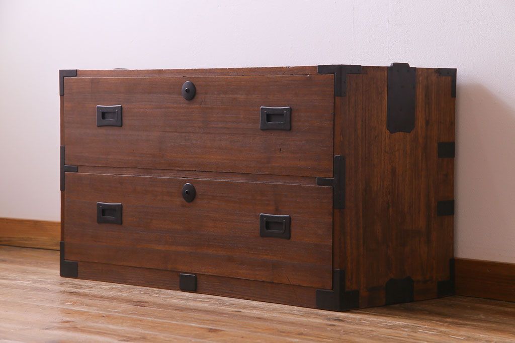 アンティーク家具 昭和初期 総桐材 モダンなデザインが目を引く箪笥ローボード(ローチェスト、衣装箪笥、桐箪笥、桐たんす)