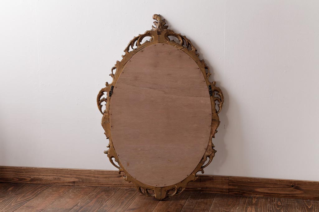 アンティーク雑貨 フランスビンテージ 高級感のあるフレームのウォールミラー(壁掛け鏡)