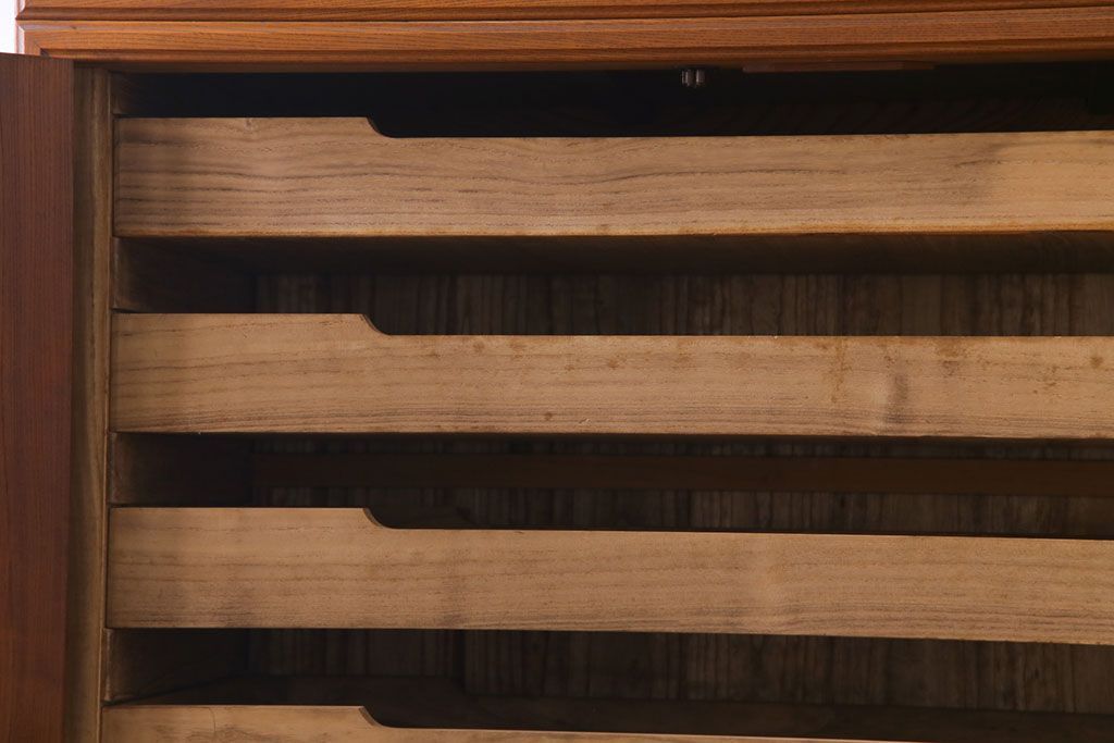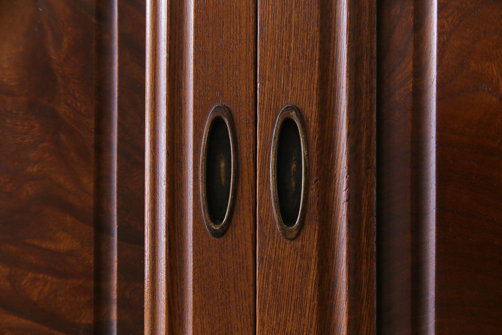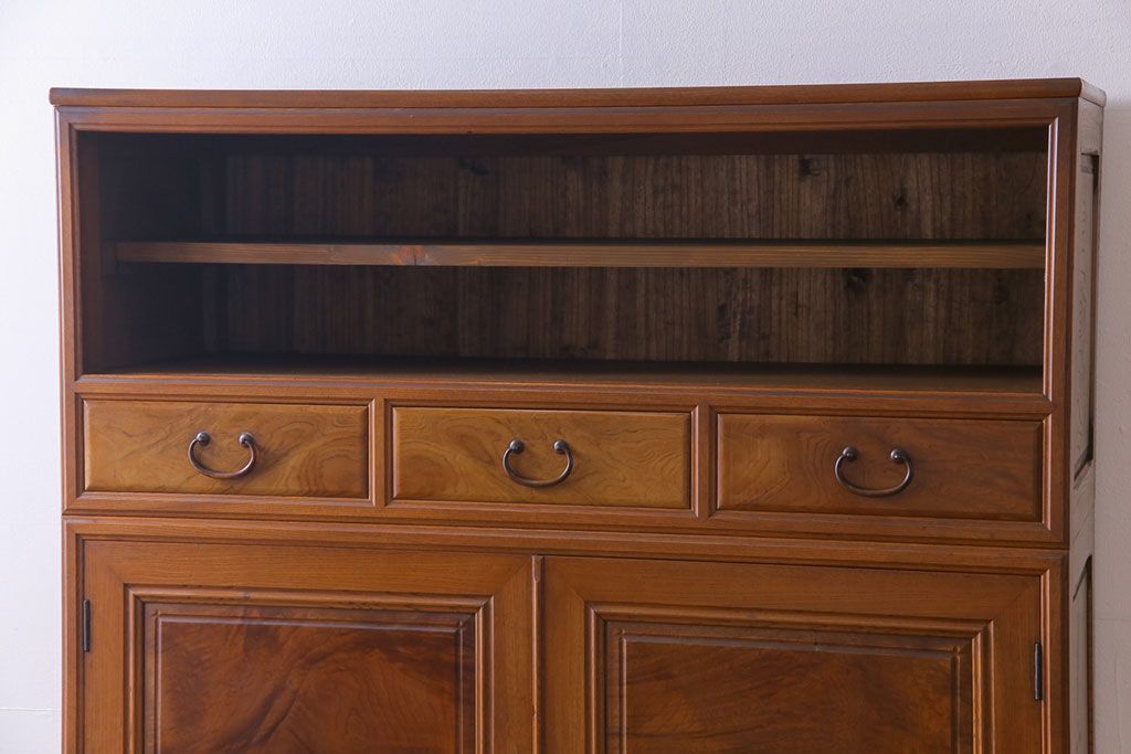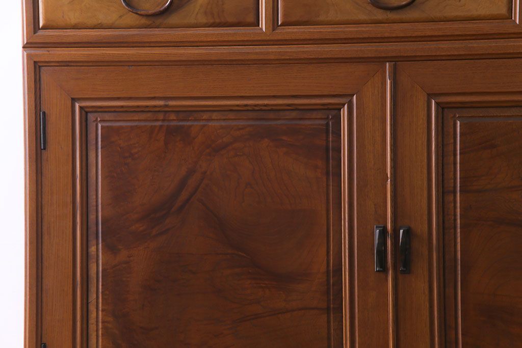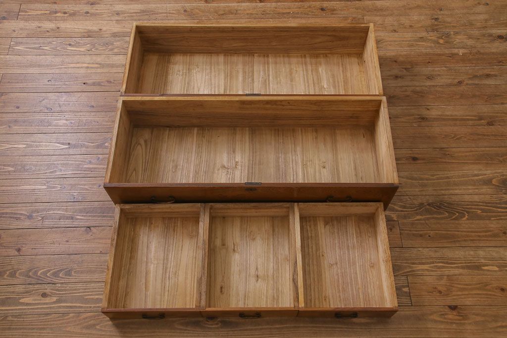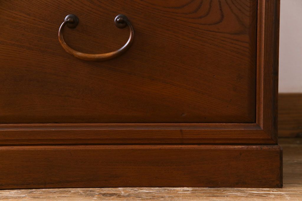 アンティーク家具 上手物 銅金具 三方ケヤキ無垢材 玉杢が美しい上手物の重ね箪笥(衣装箪笥、引き出し)