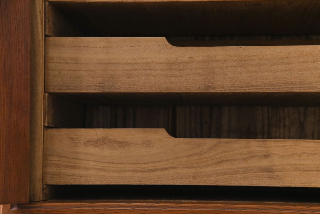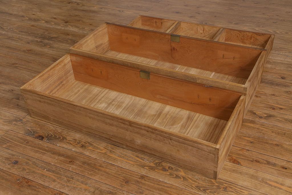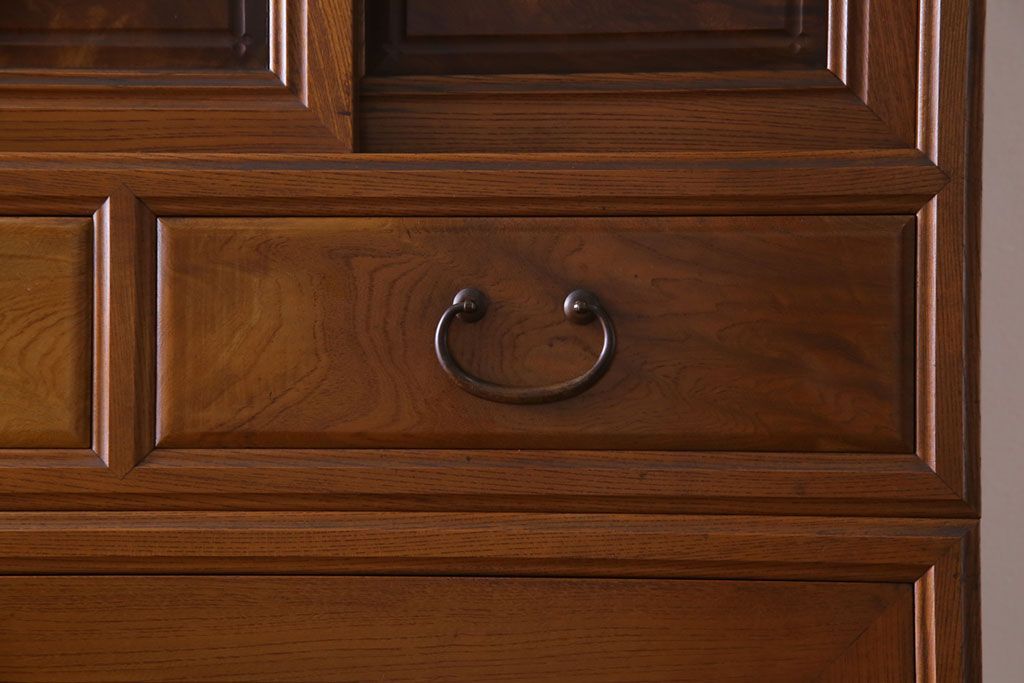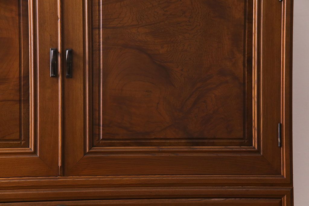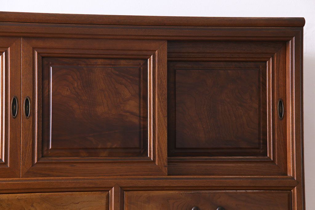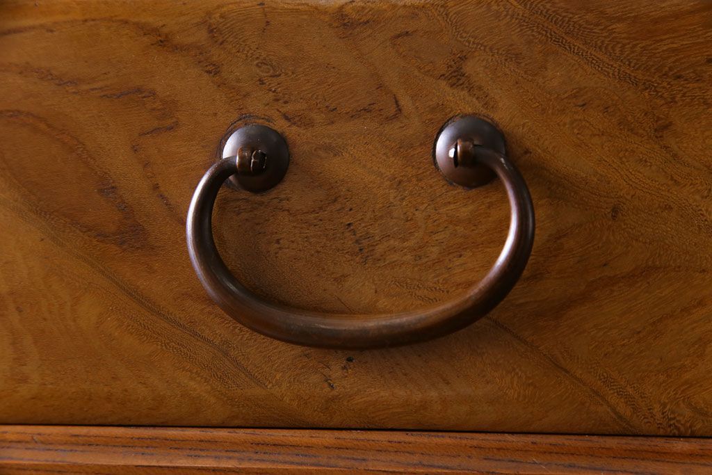 ラフジュ工房> 和箪笥> 着物箪笥 > アンティーク家具 上手物 銅金具 三方ケヤキ無垢材 玉杢が美しい上手物の重ね箪笥(衣装箪笥、引き出し)