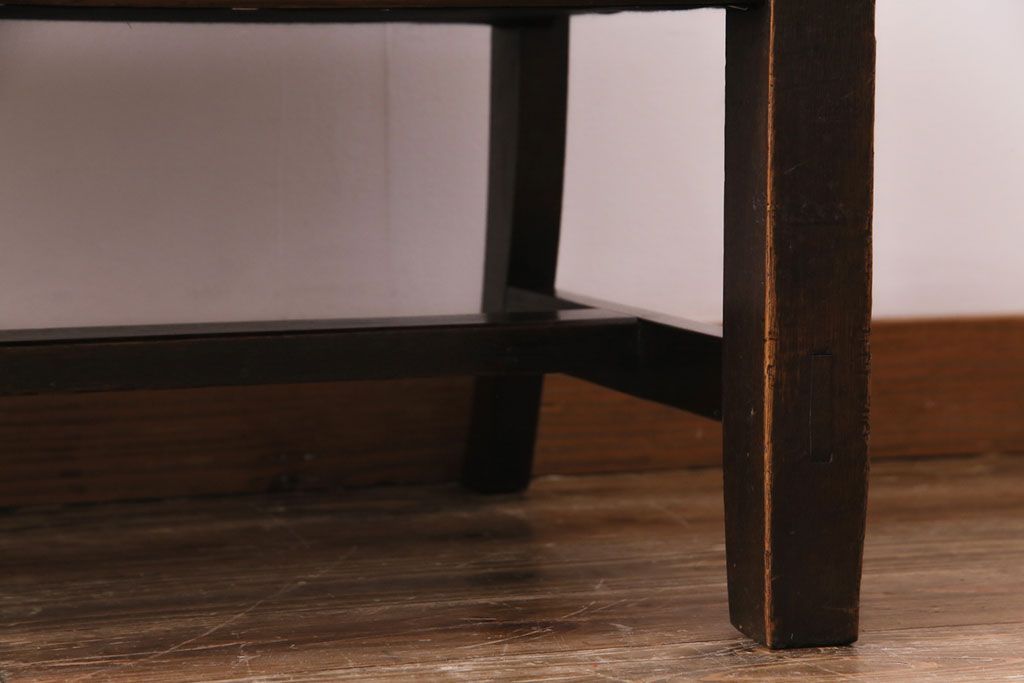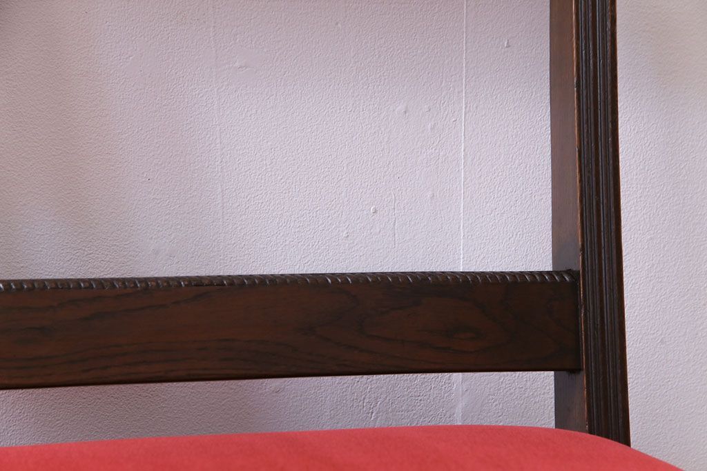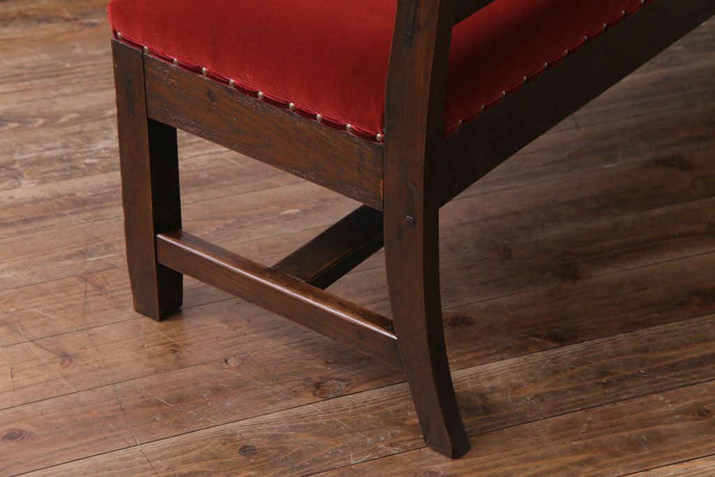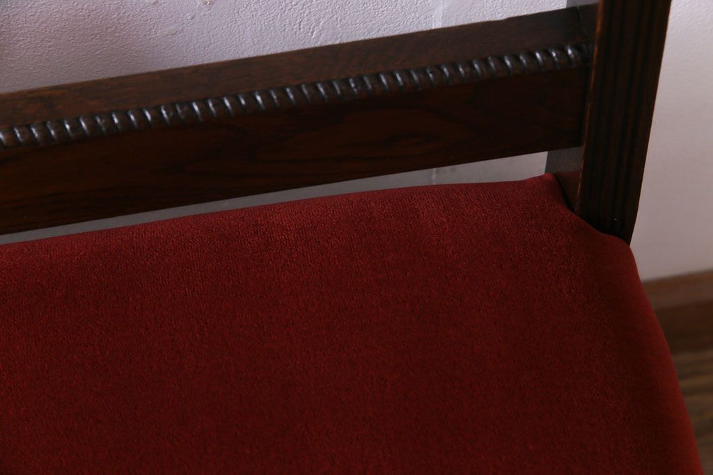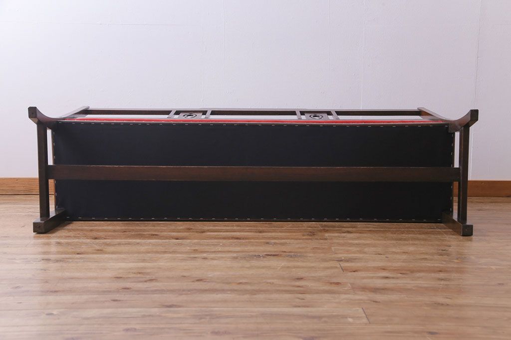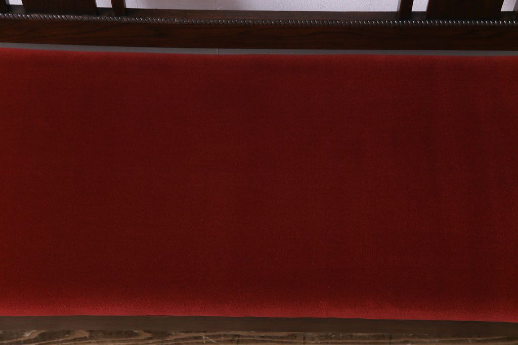 ラフジュ工房> 椅子・ベンチ> ベンチ > アンティーク家具 大正ロマン オーク材 象嵌入り 透かし彫りが上品な木製ソファベンチ(3人掛けソファ)
