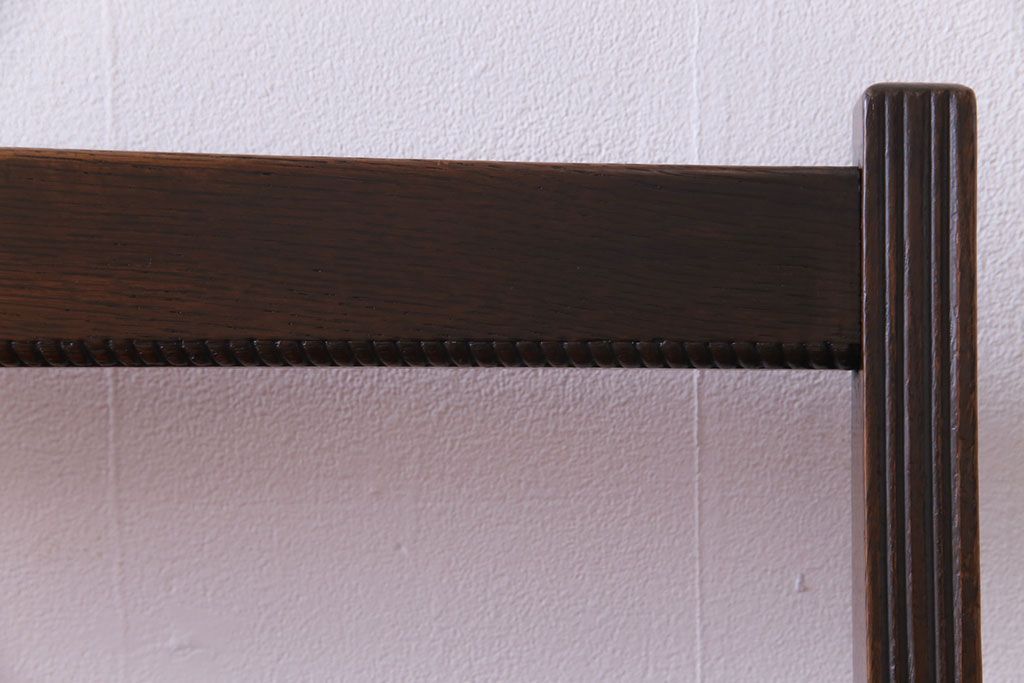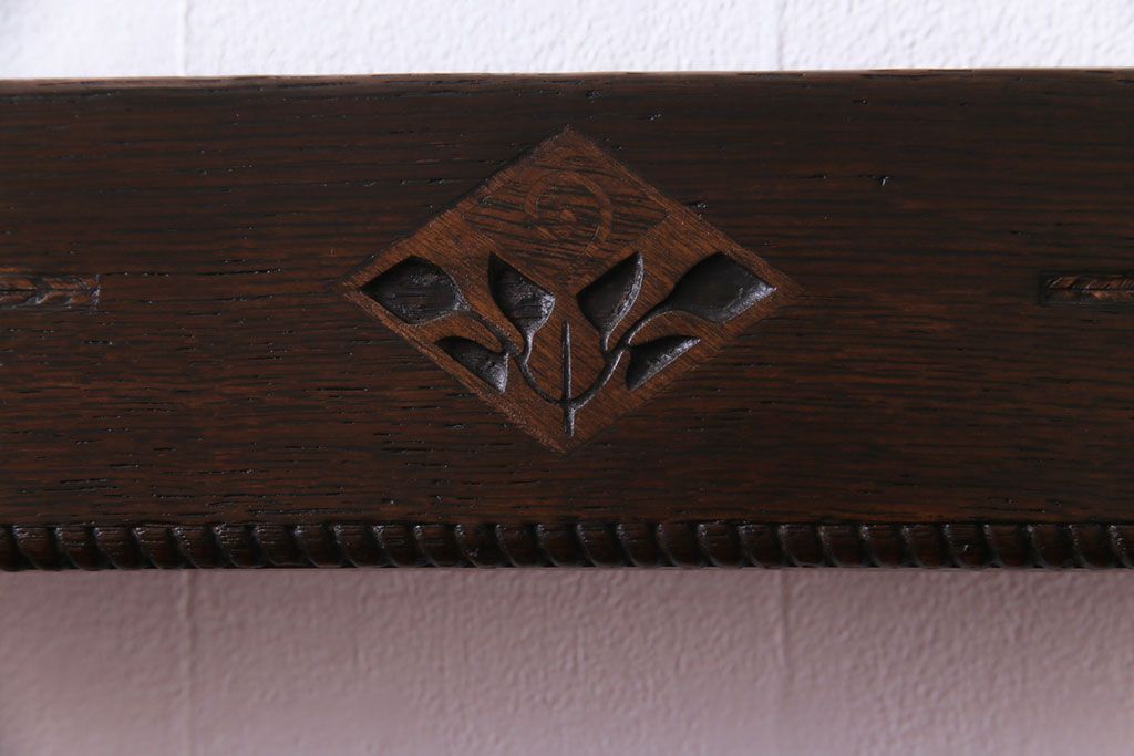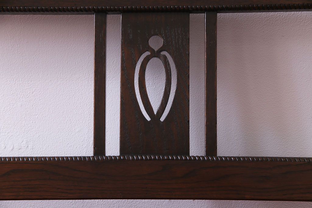アンティーク家具 大正ロマン オーク材 象嵌入り 透かし彫りが上品な木製ソファベンチ(3人掛けソファ)