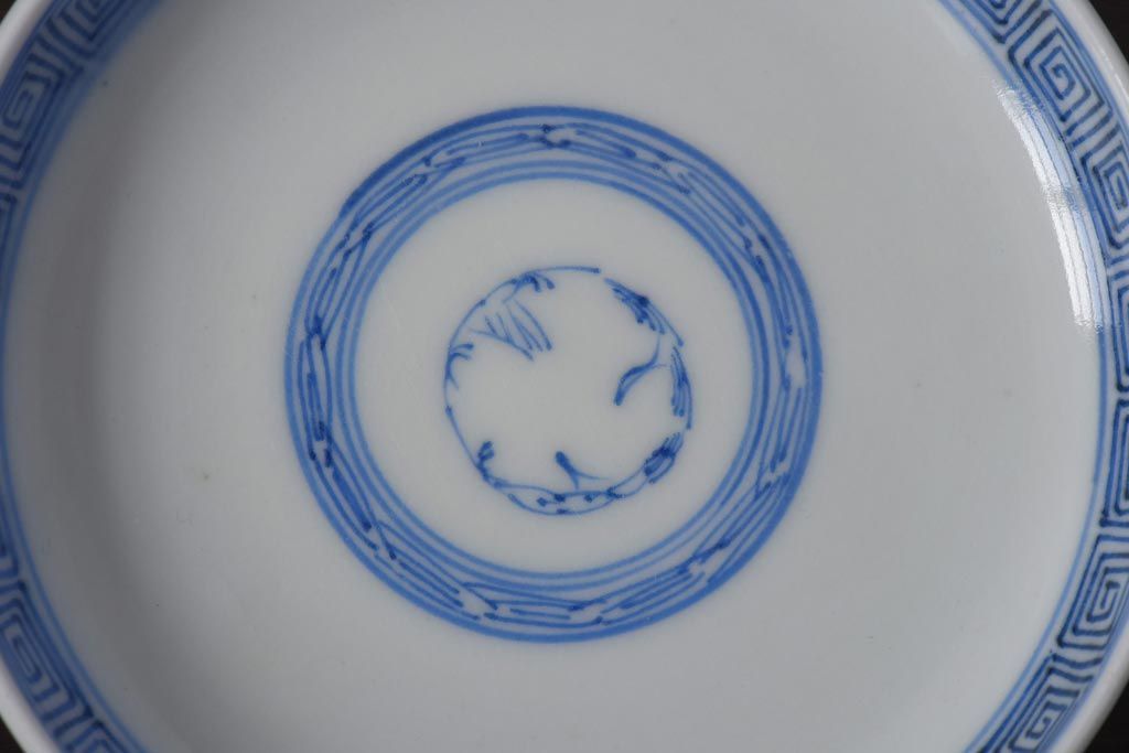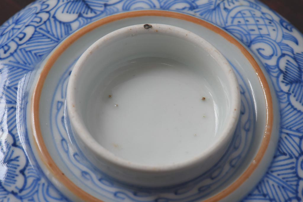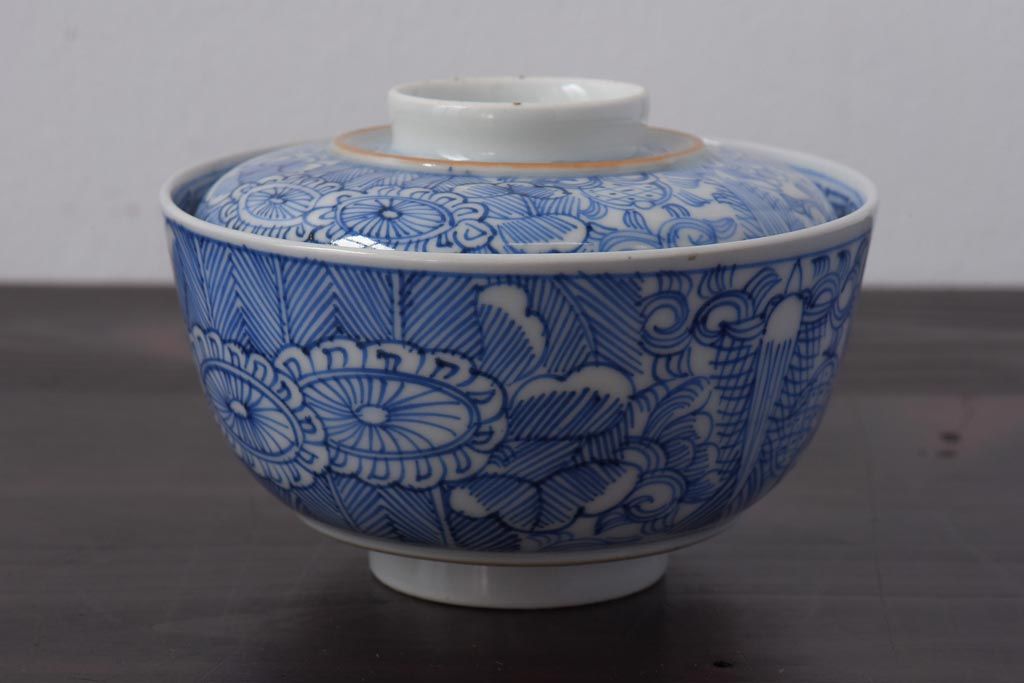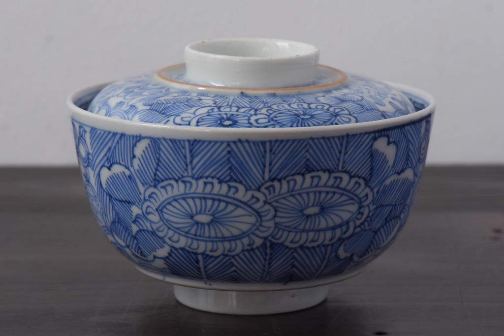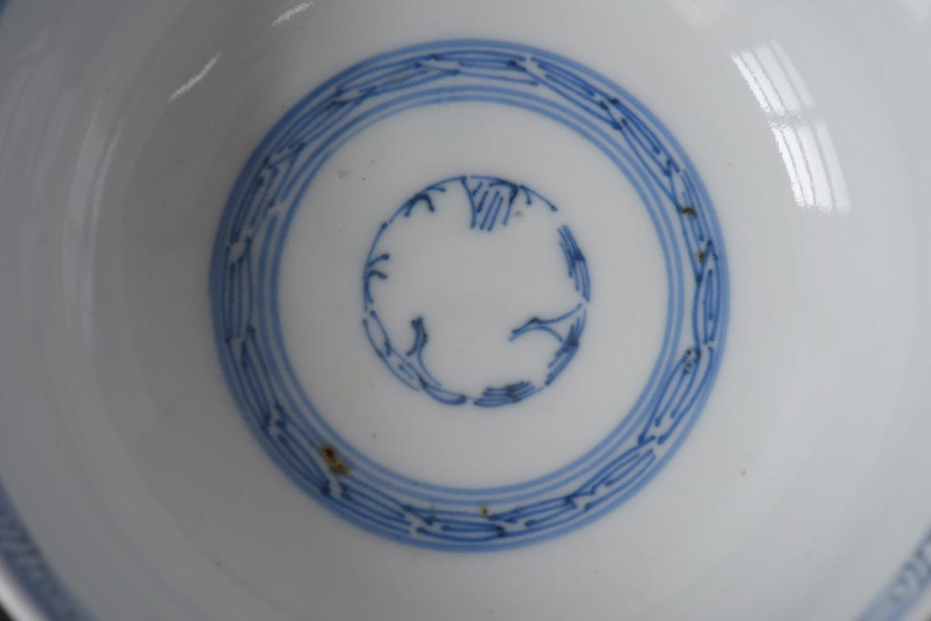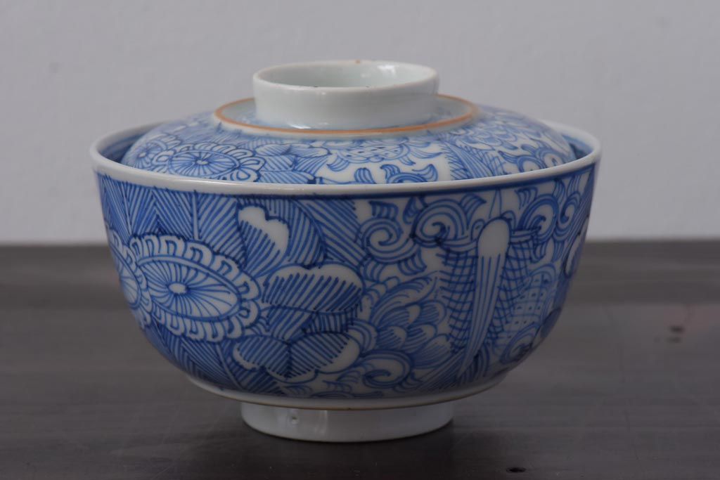 ラフジュ工房> 和食器・茶道具 > 古民具・骨董 幕末明治期 線描染付 細かな図柄が味わい深い蓋付茶碗(和食器)2客セット(2)
