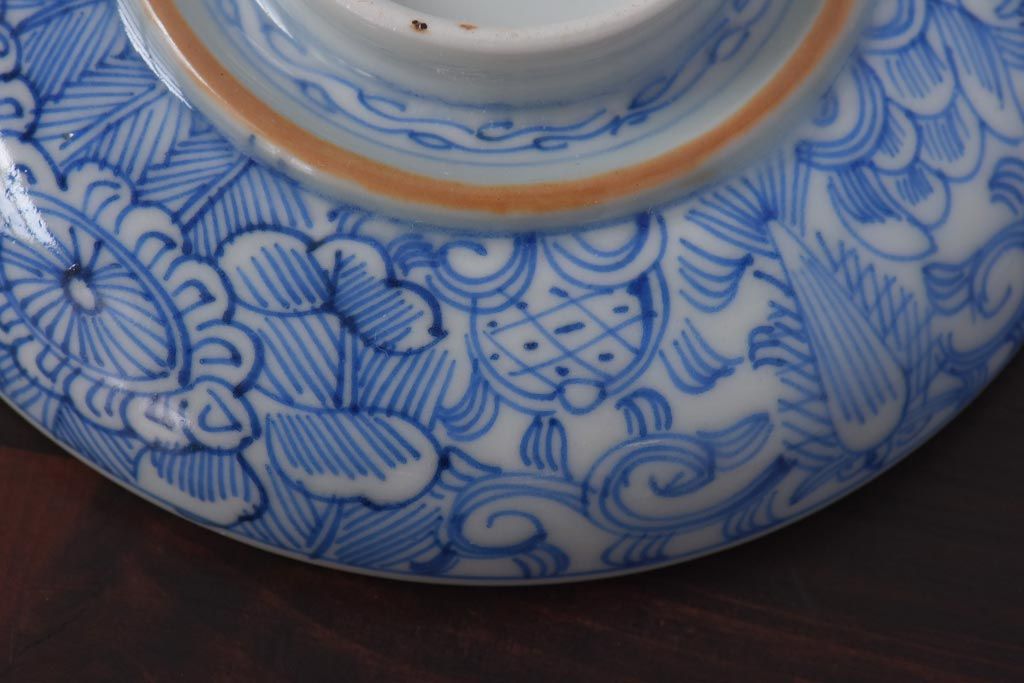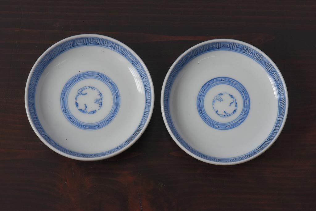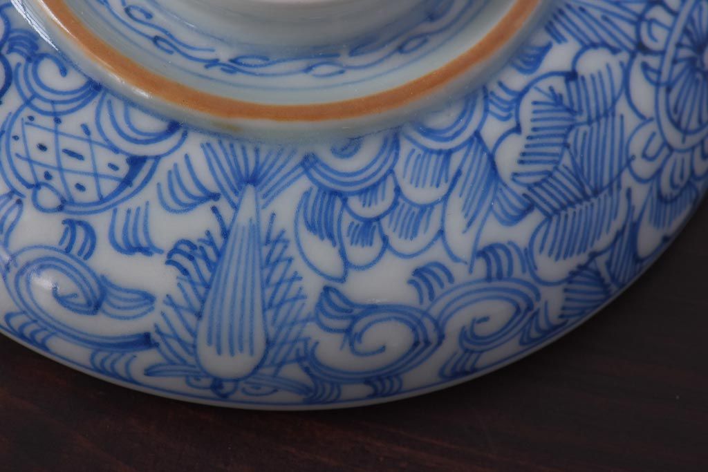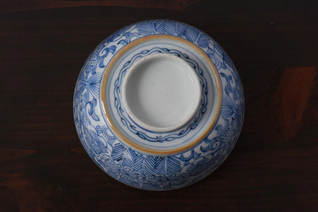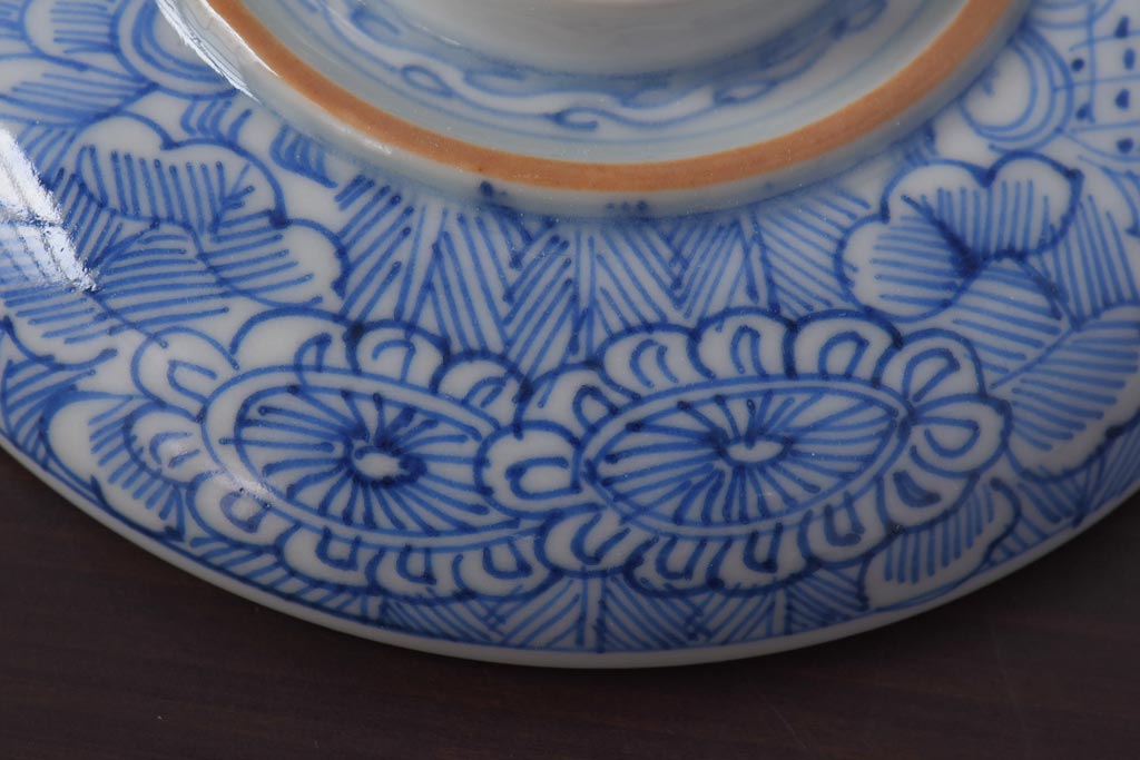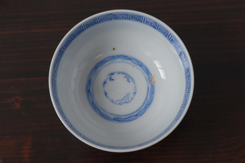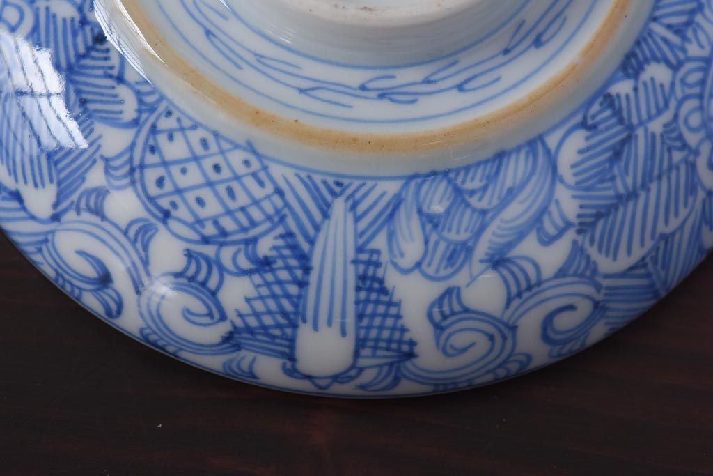 ラフジュ工房> 和食器・茶道具 > 古民具・骨董 幕末明治期 線描染付 細かな図柄が味わい深い蓋付茶碗(和食器)2客セット(2)