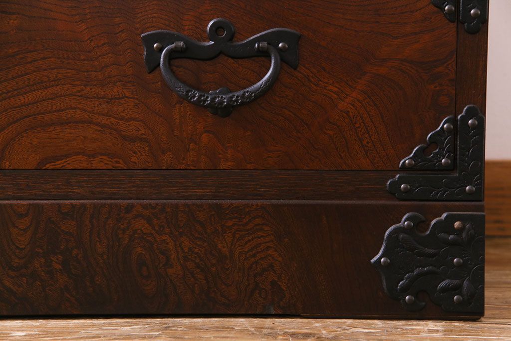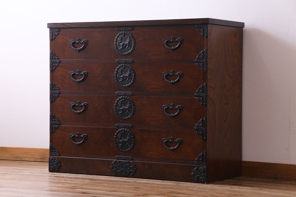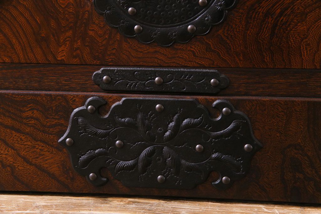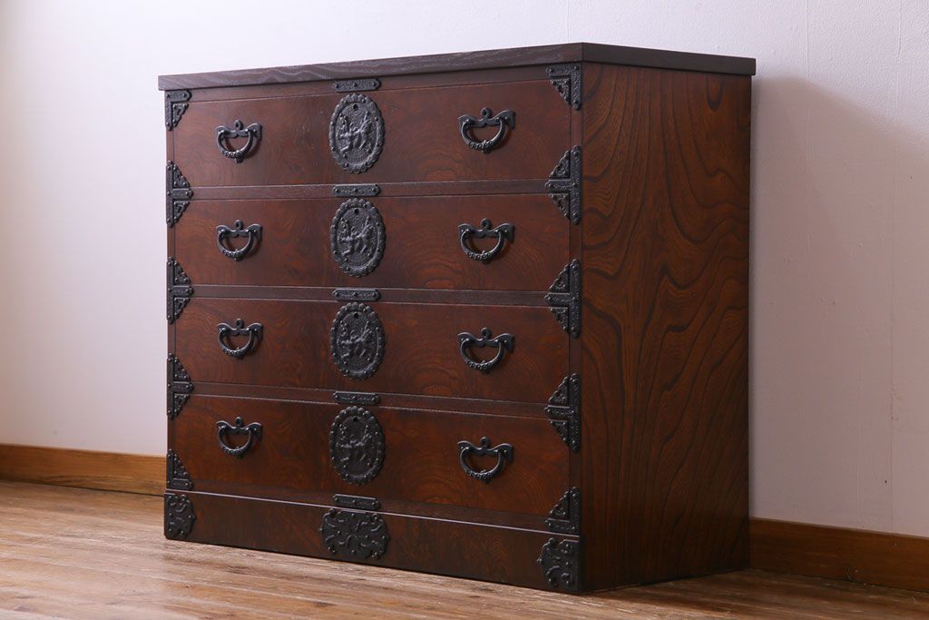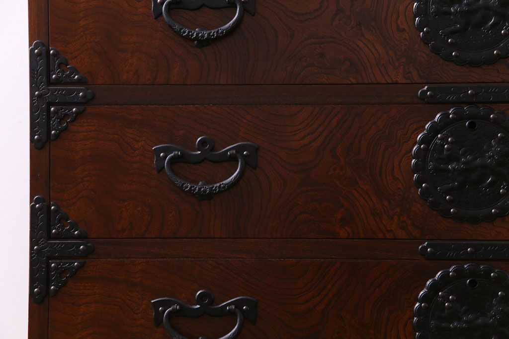 中古 岩谷堂箪笥 天板リメイク 唐獅子の金具が魅力の衣装箪笥(チェスト、整理ダンス)