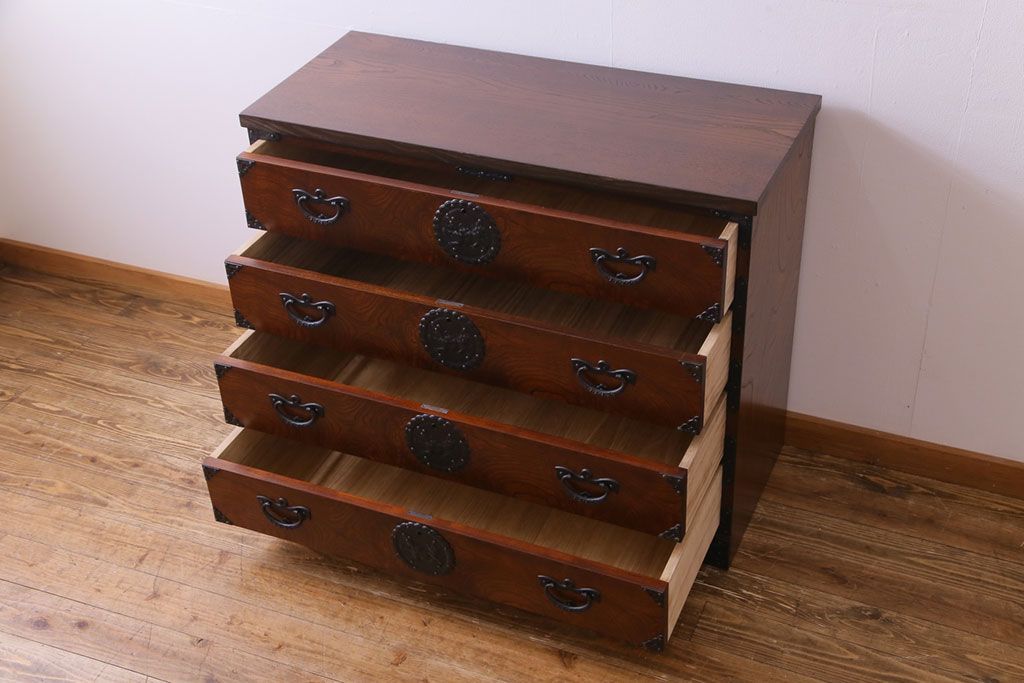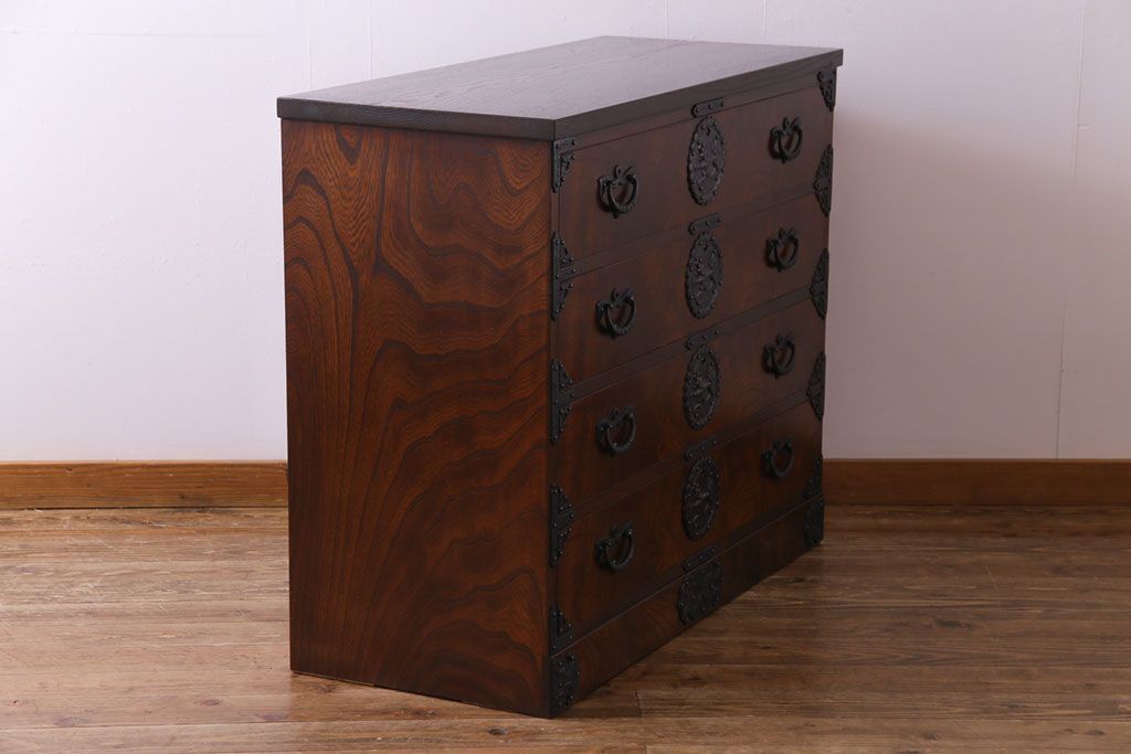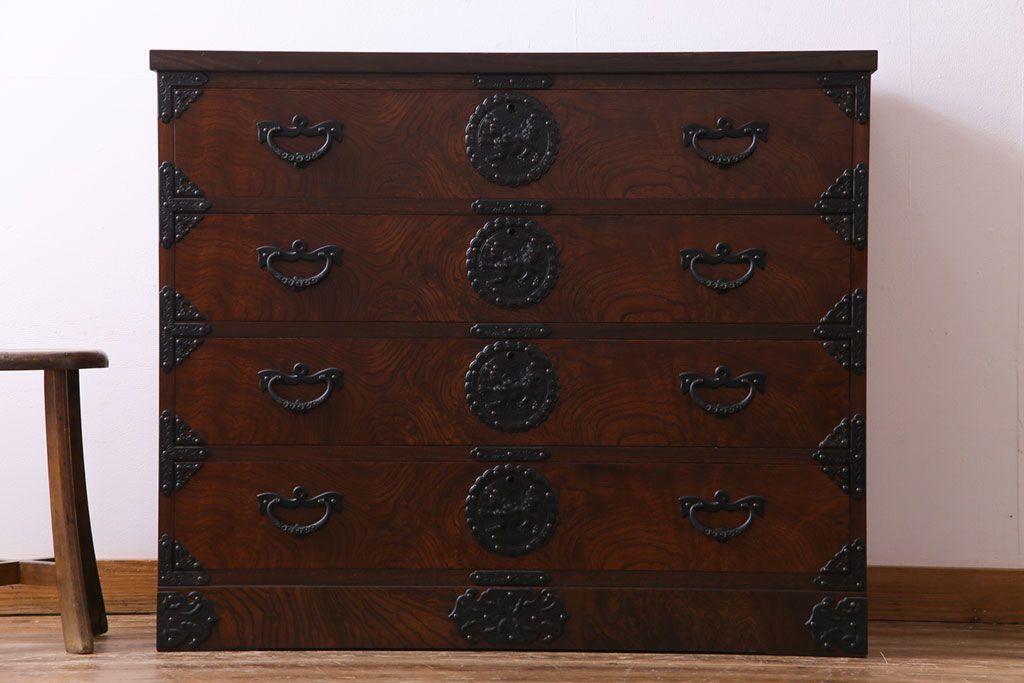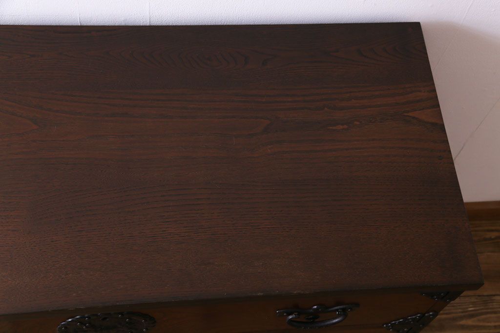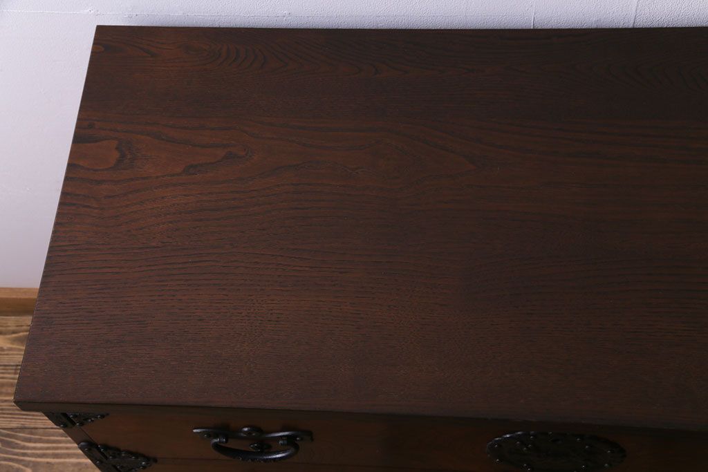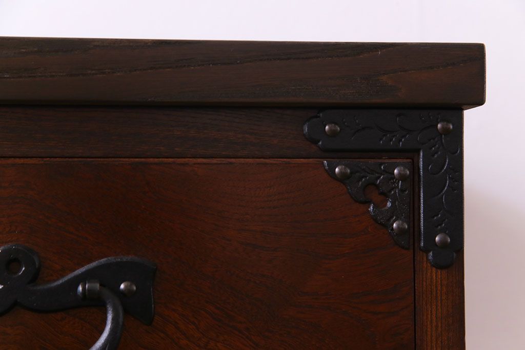 ラフジュ工房> 和箪笥> 衣装箪笥 > 中古 岩谷堂箪笥 天板リメイク 唐獅子の金具が魅力の衣装箪笥(チェスト、整理ダンス)