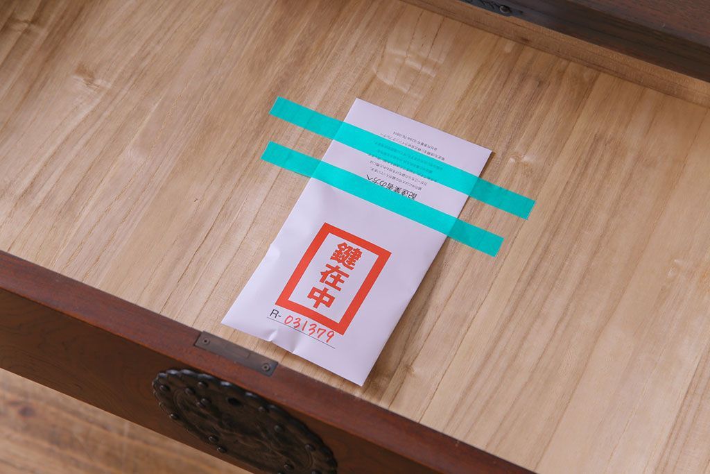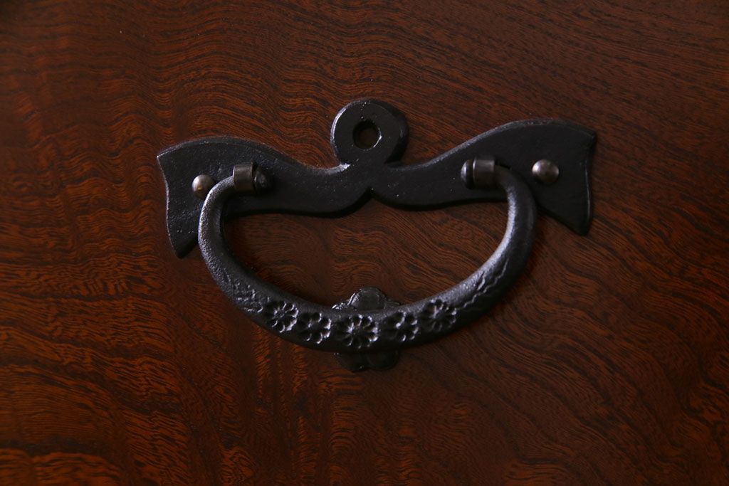 ラフジュ工房> キャビネット・戸棚> サイドボード > 中古 岩谷堂箪笥 天板リメイク 唐獅子の金具が魅力の衣装箪笥(チェスト、整理ダンス)
