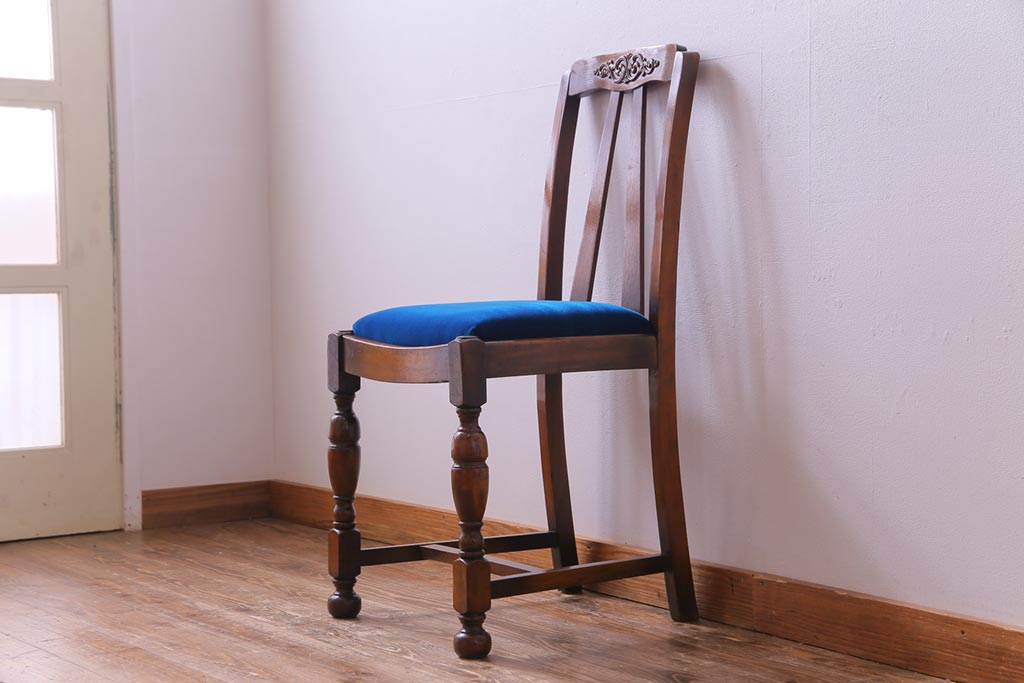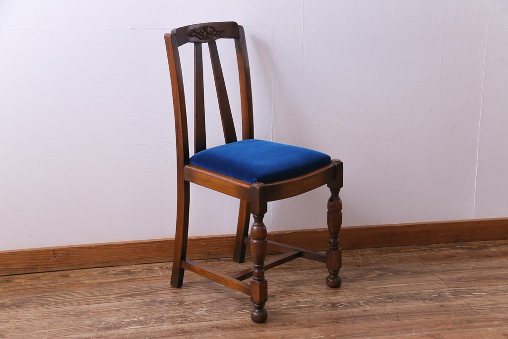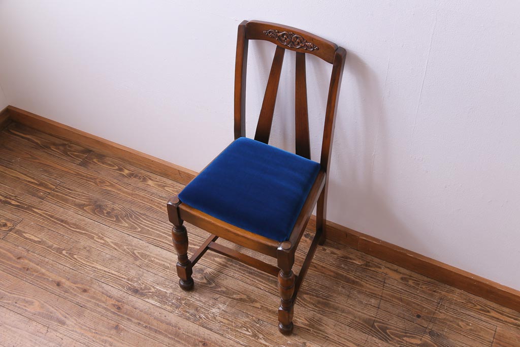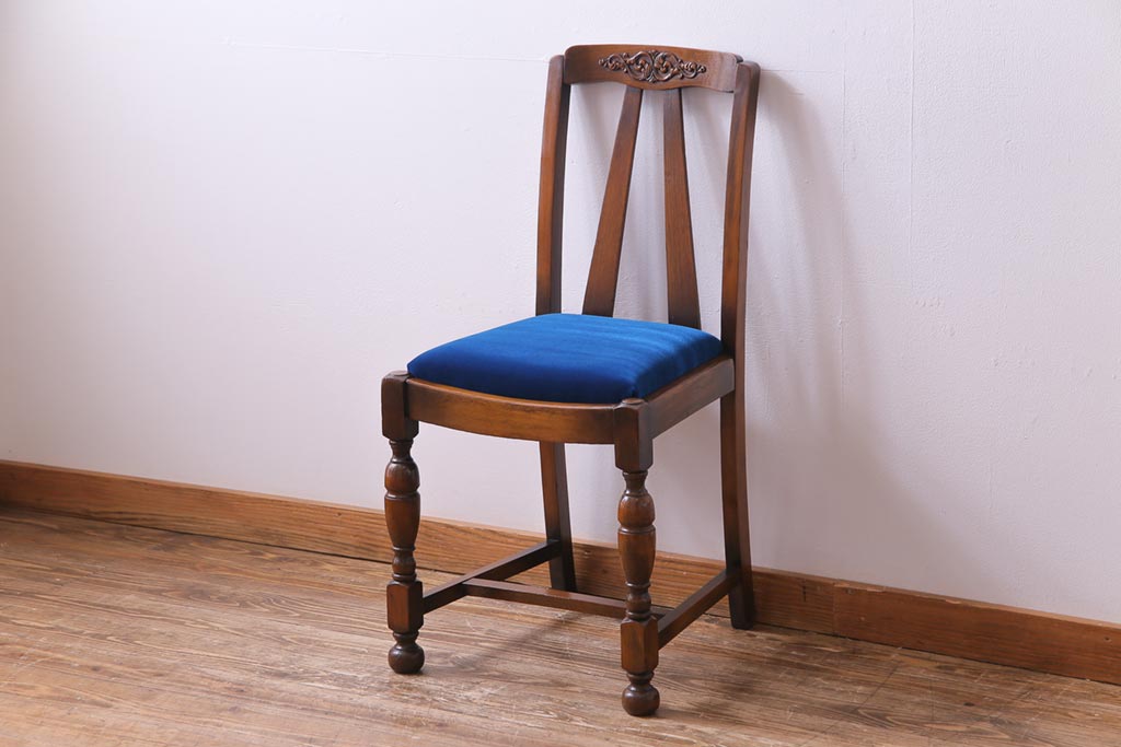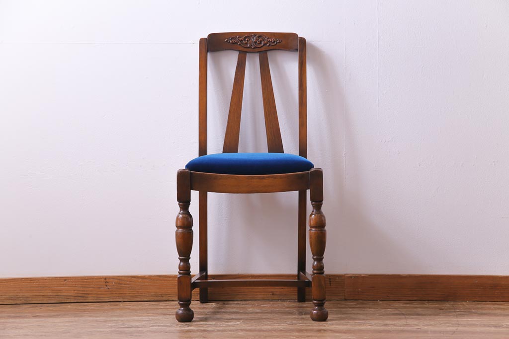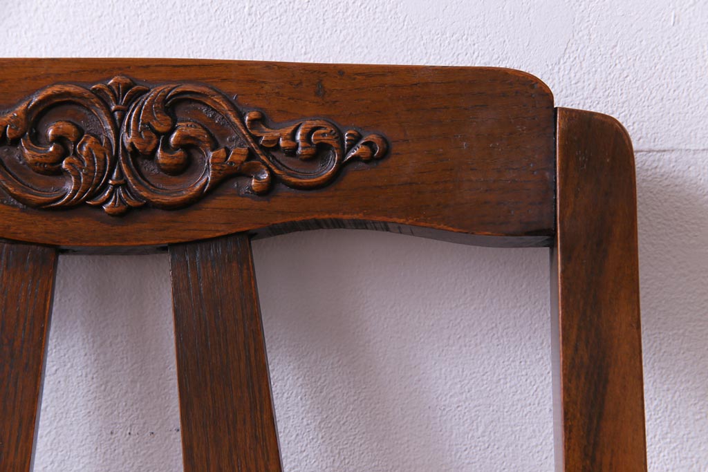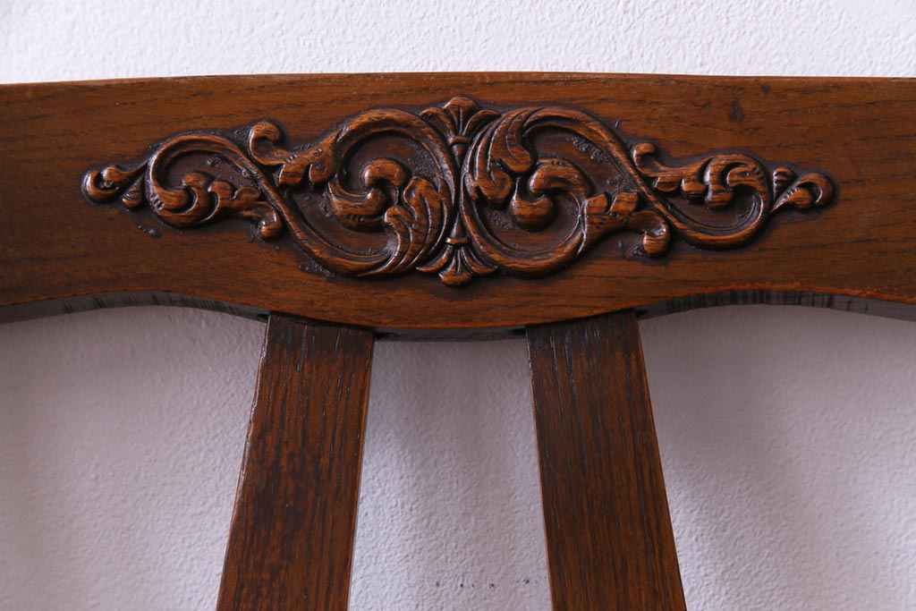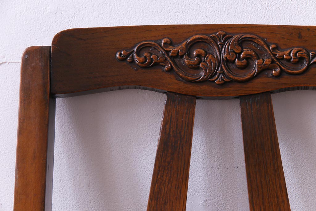 アンティーク家具 イギリスアンティーク オーク材 背もたれのレリーフがおしゃれなチェア(ダイニングチェア、椅子)