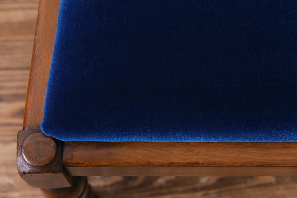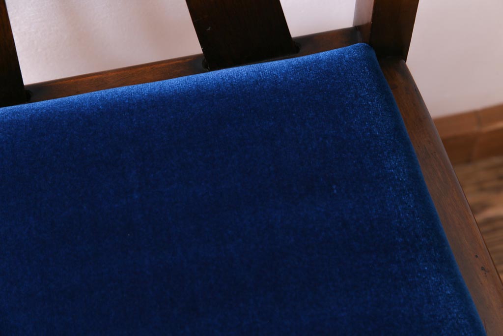 座面生地とクッション(座面内スポンジ)は当店にて張り替えておりますので、しっかりとしております。