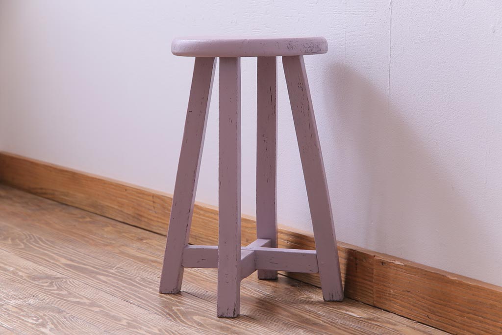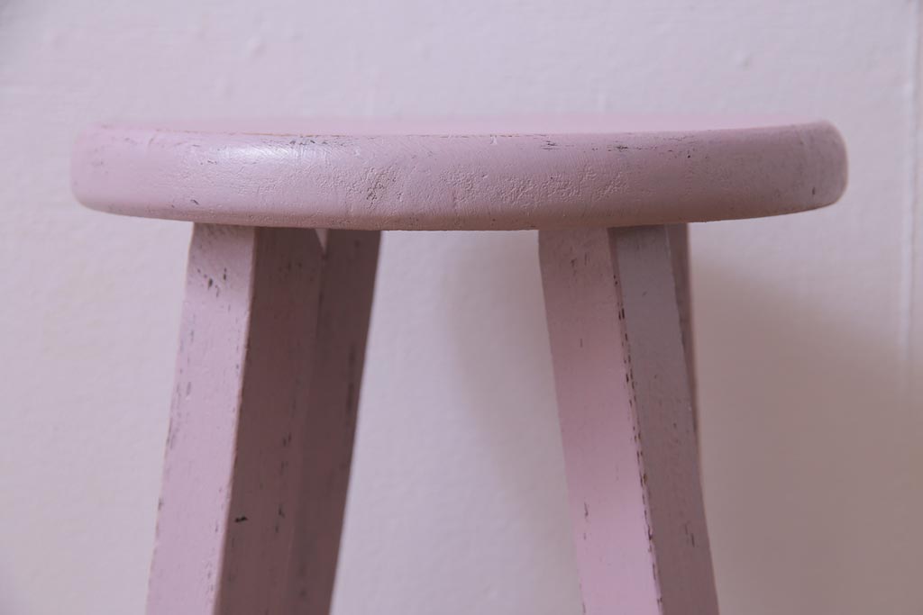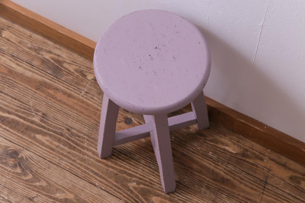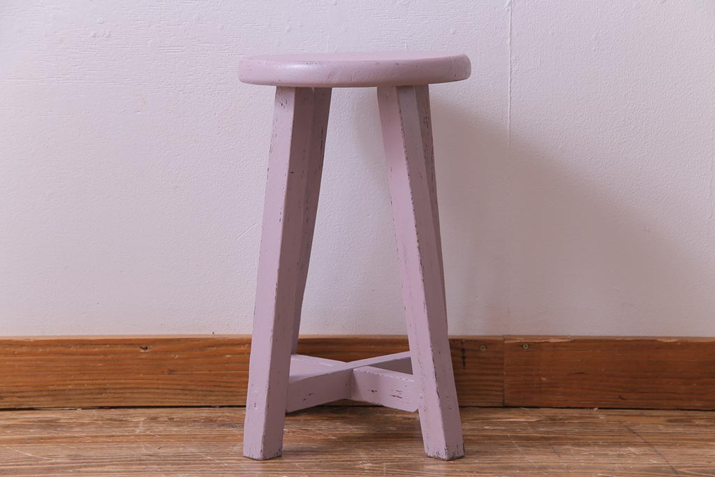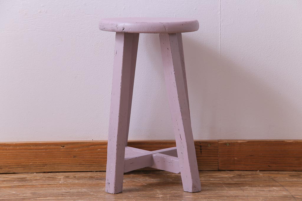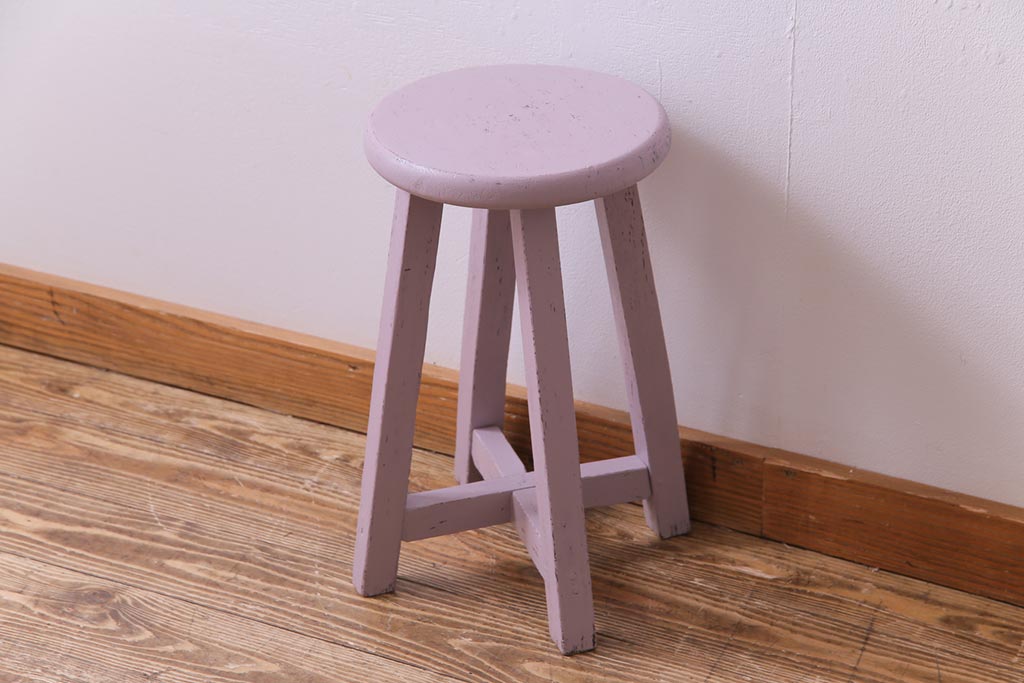 ペイント家具 淡い色合いがかわいらしいシャビーなスツール(花台)(1)