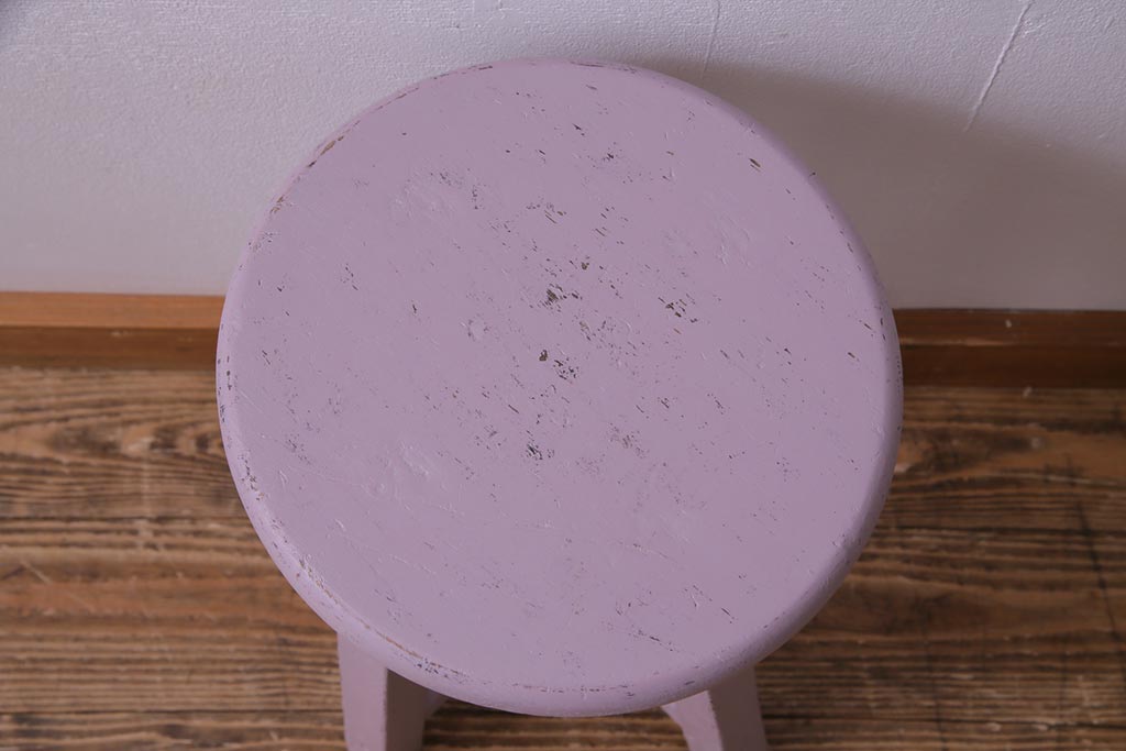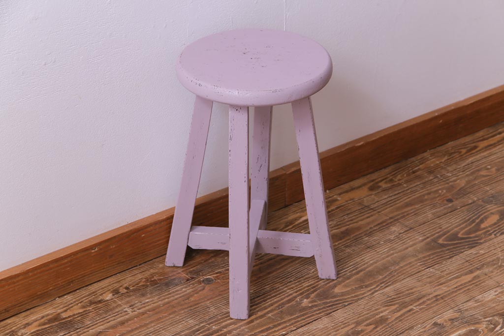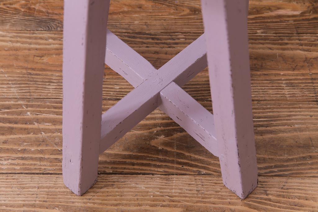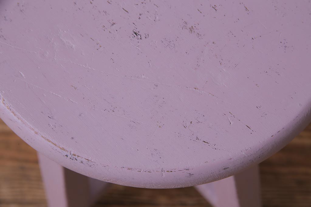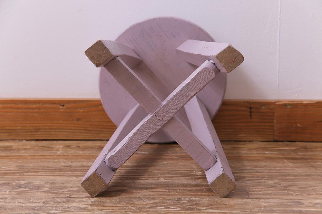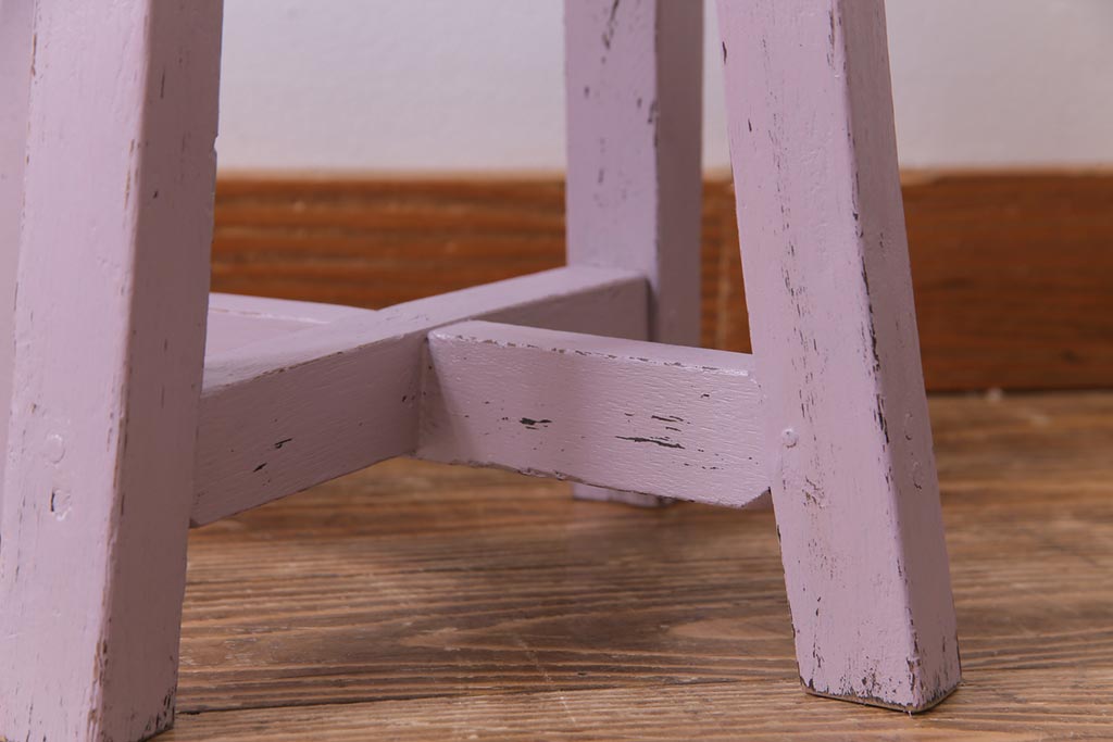 ペイント家具 淡い色合いがかわいらしいシャビーなスツール(花台)(1)