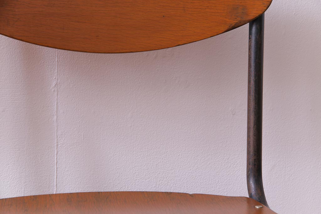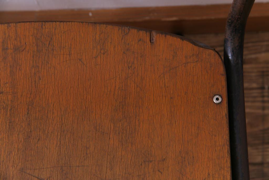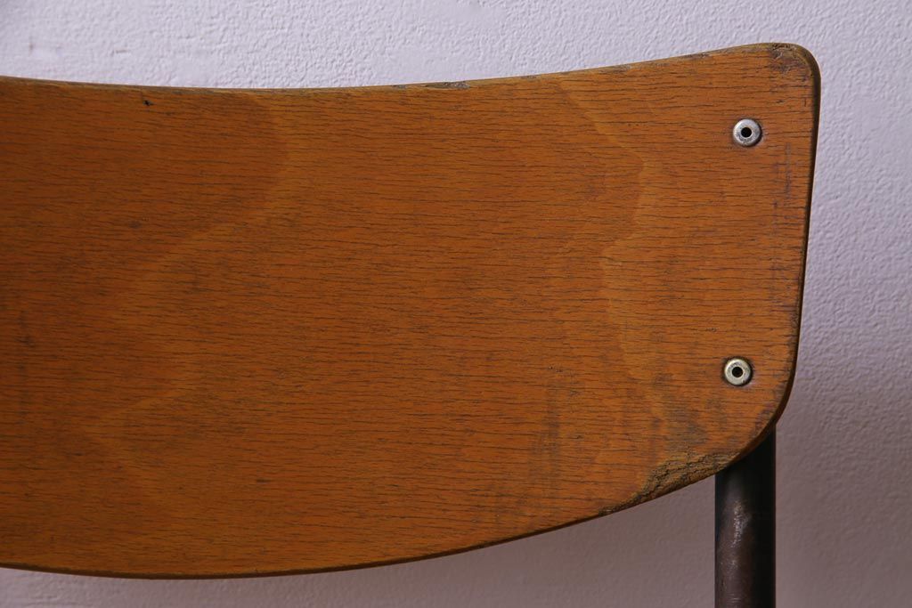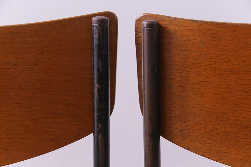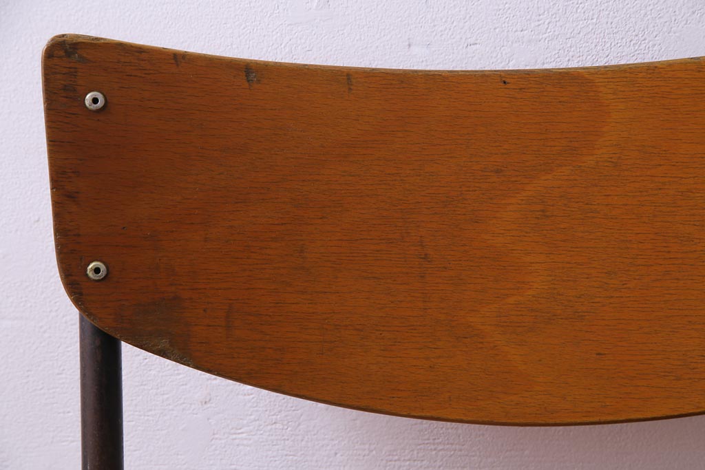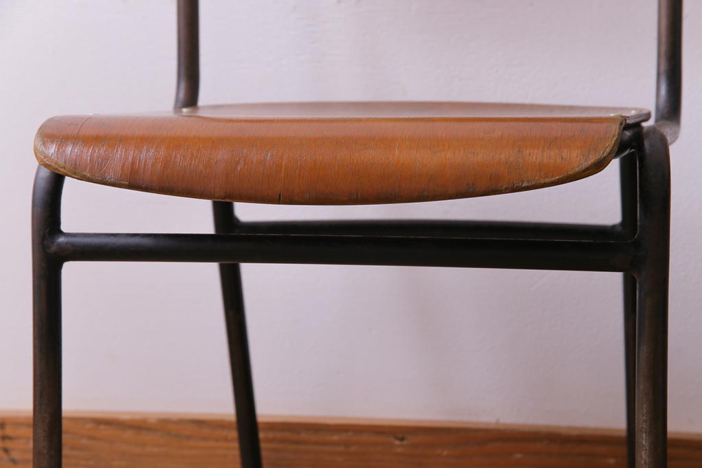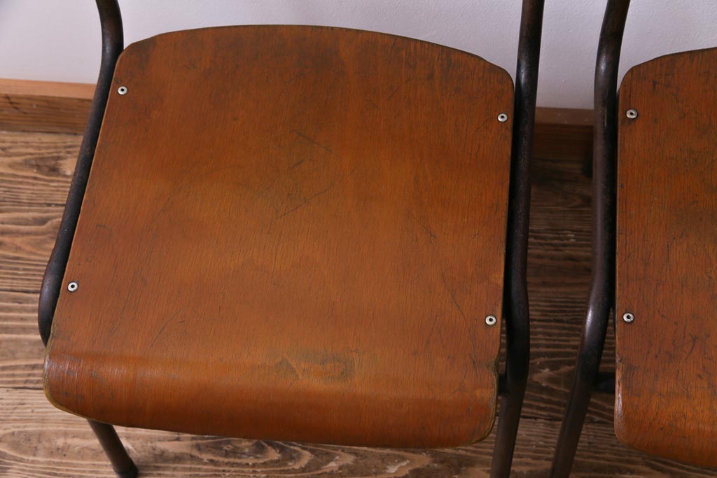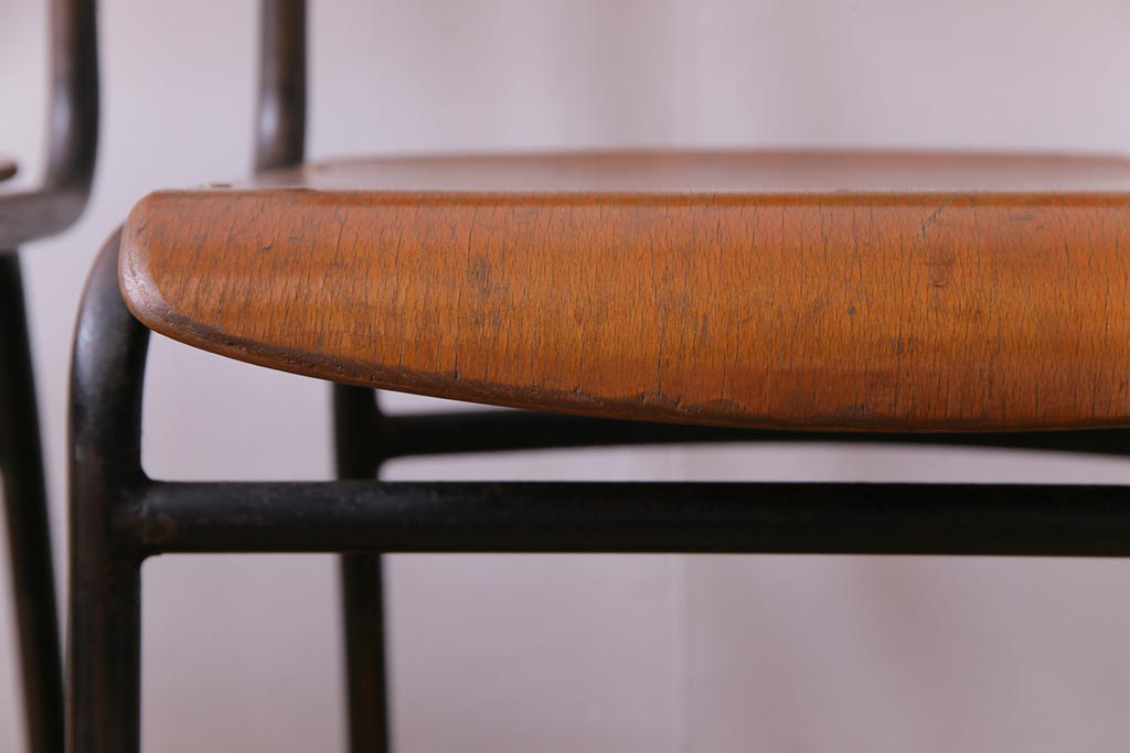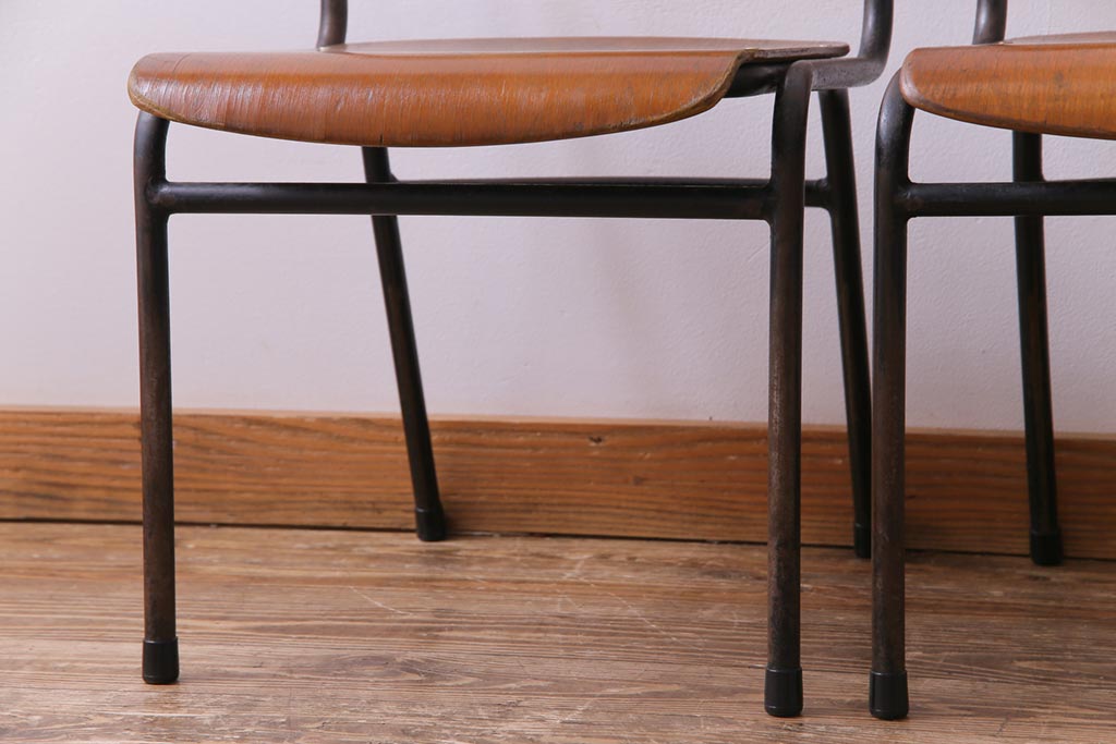 ヴィンテージ家具 ヨーロッパビンテージ レトロな佇まいのスクールチェア(キッズチェア、鉄脚チェア、椅子)2脚セット(1)