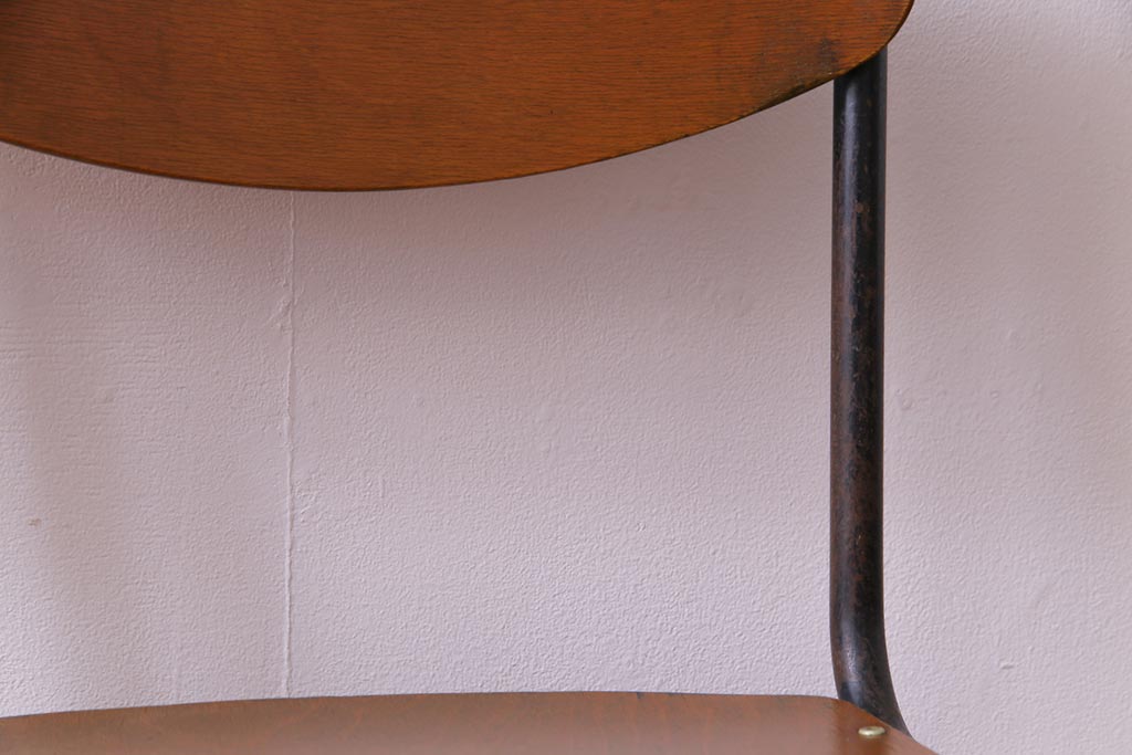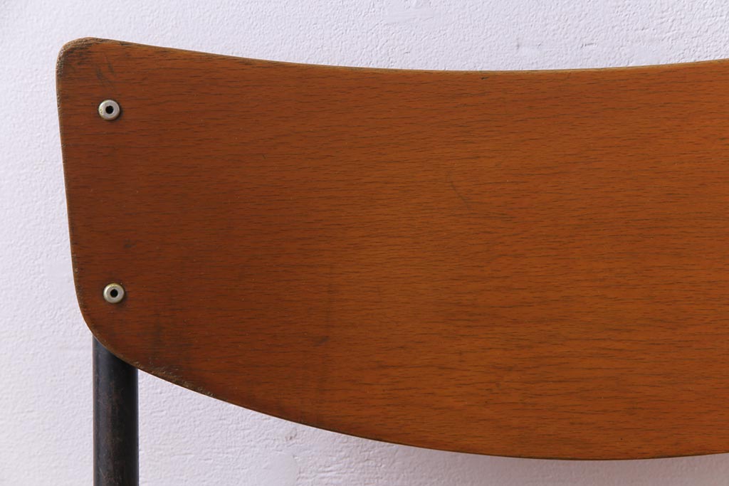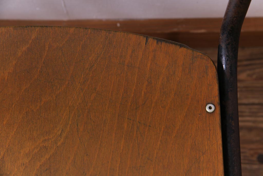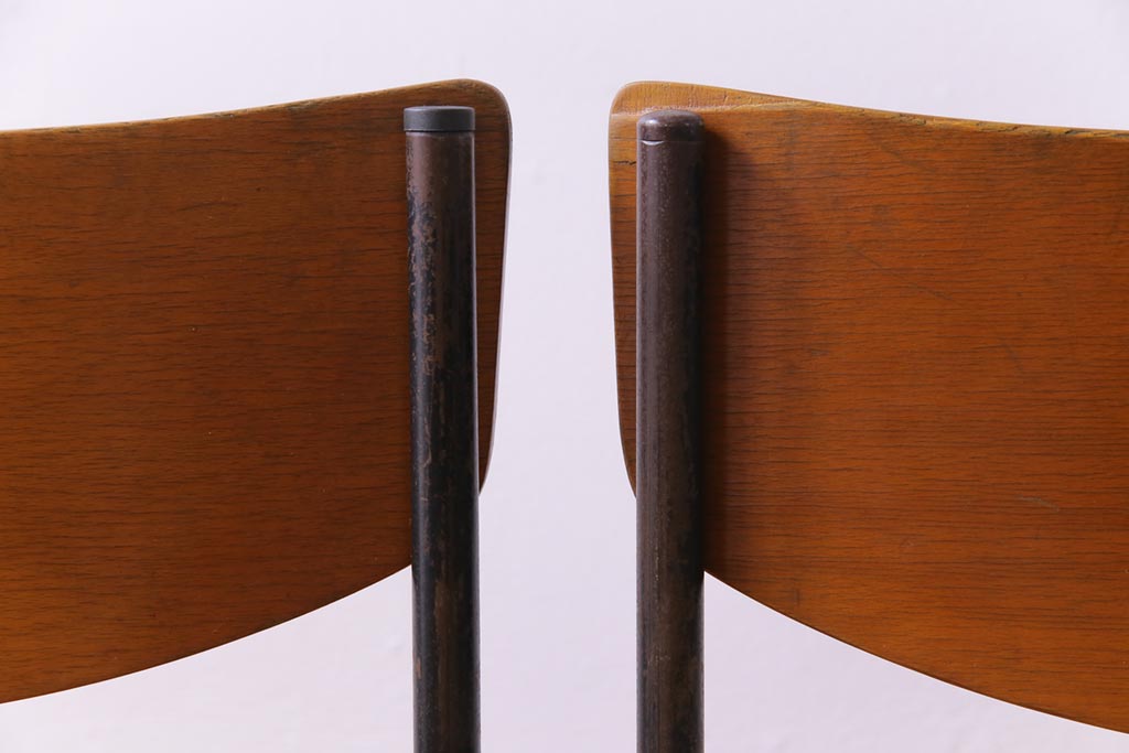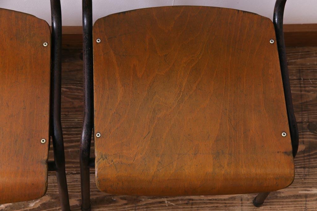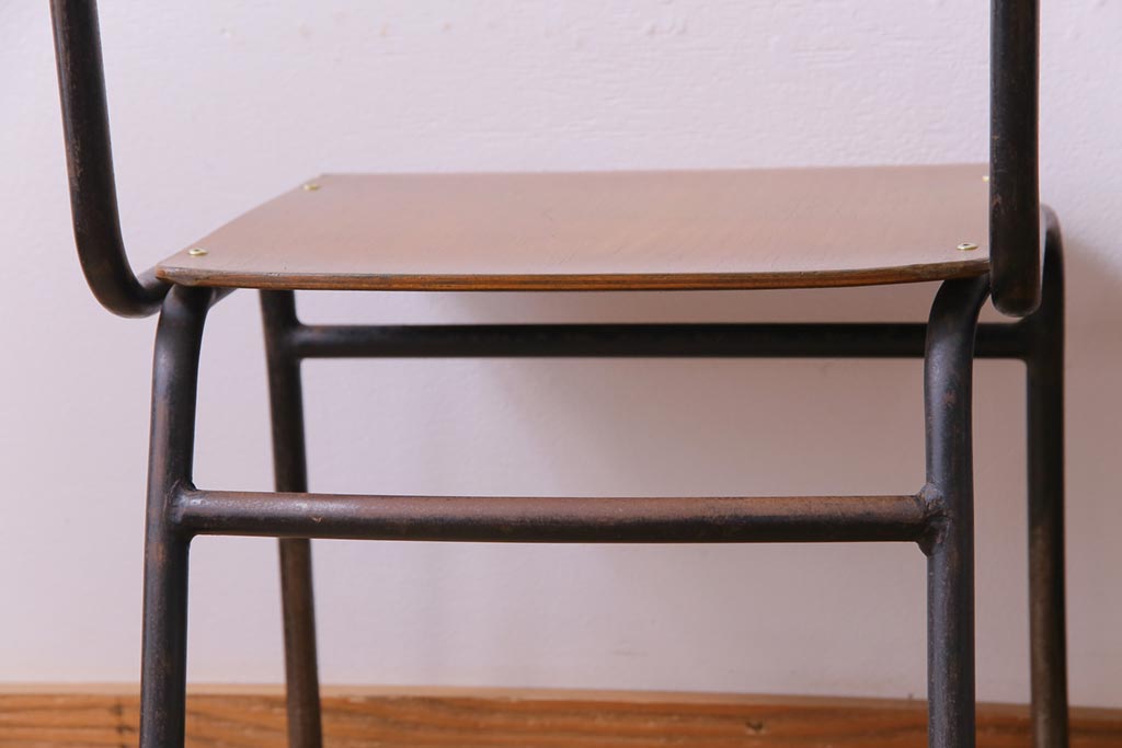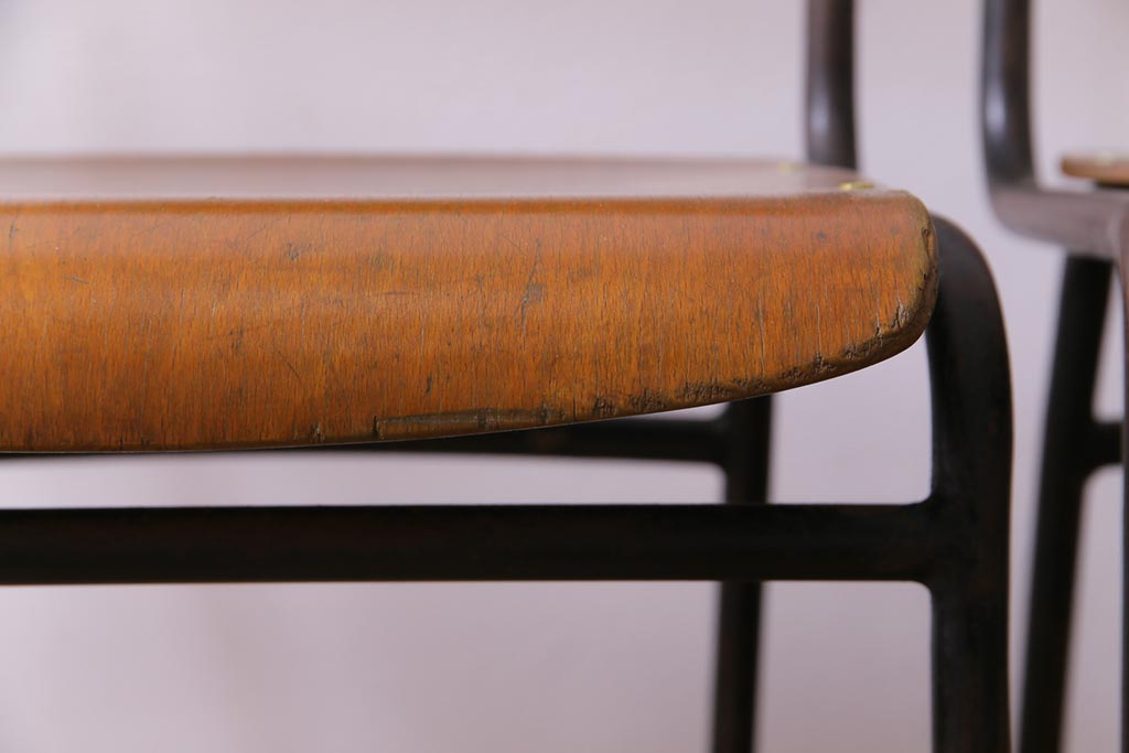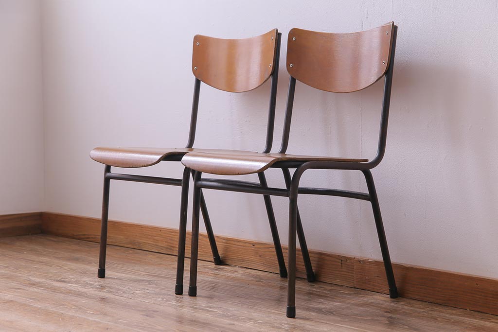 ヴィンテージ家具 ヨーロッパビンテージ レトロな佇まいのスクールチェア(キッズチェア、鉄脚チェア、椅子)2脚セット(2)
