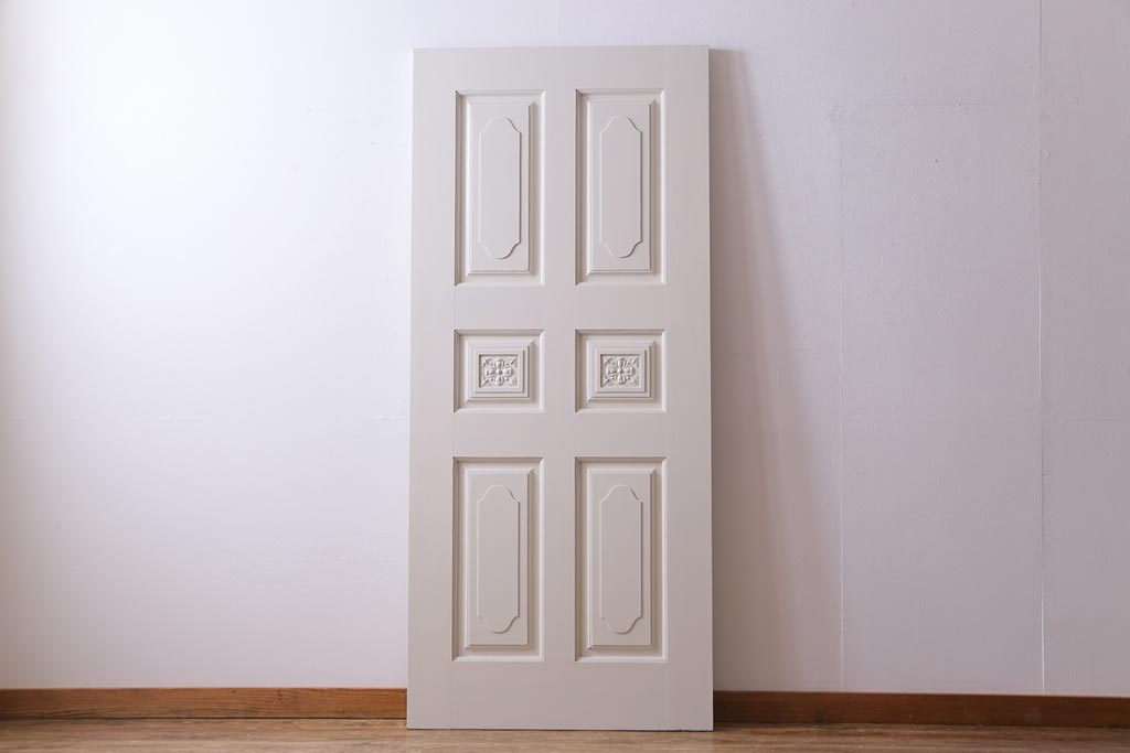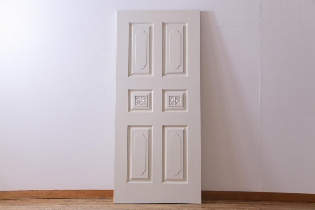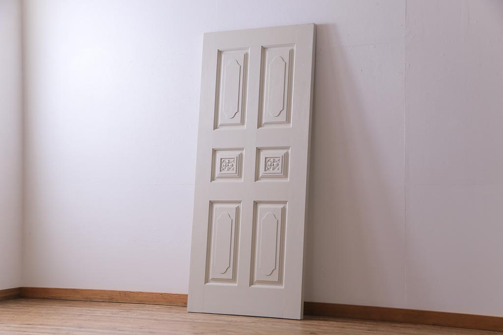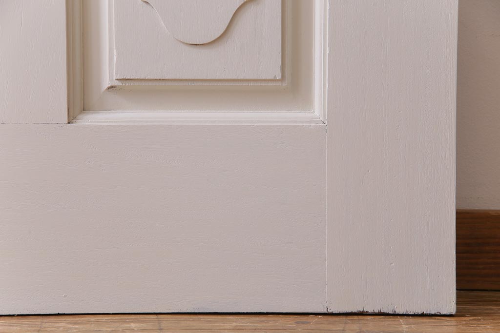 ペイント建具 花梨無垢材 可愛らしいレリーフが魅力のアンティークドア(扉、カリン)