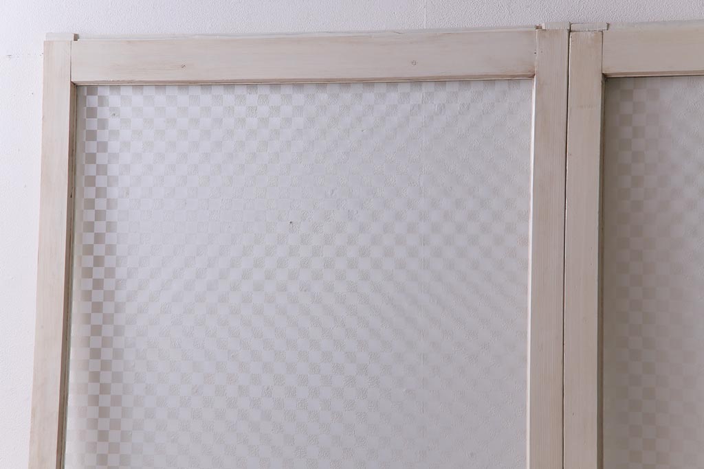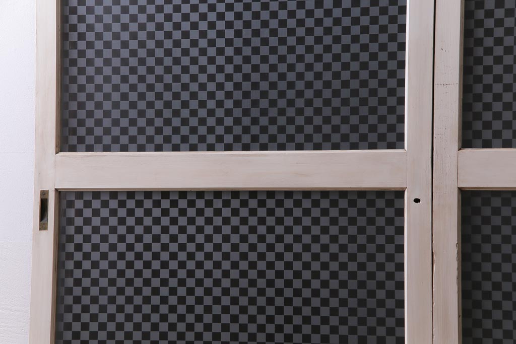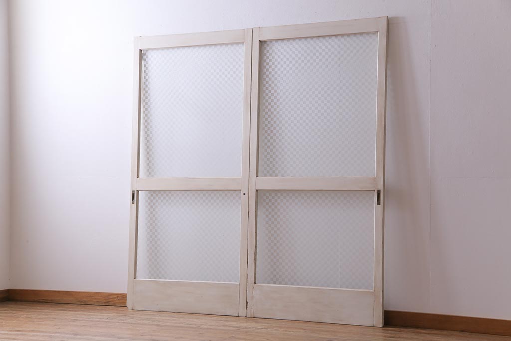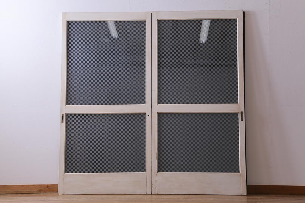 ヴィンテージ建具 ペイント 当店オリジナル市松模様ガラス レトロモダンな雰囲気のガラス引き戸2枚セット (R-031434)