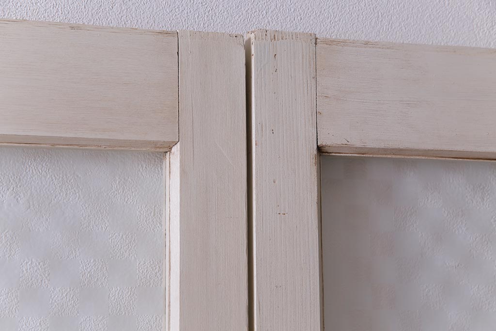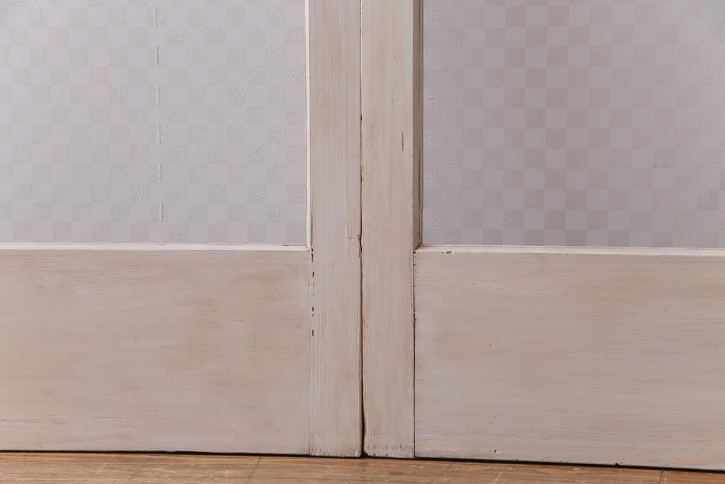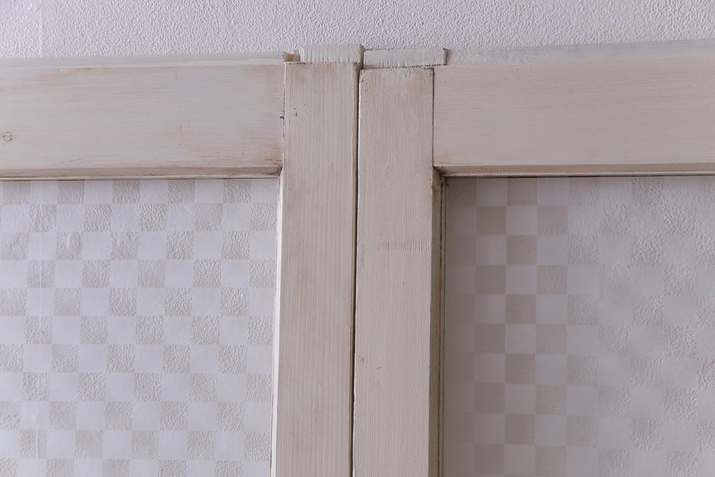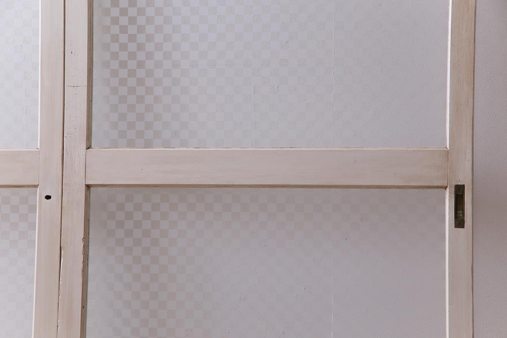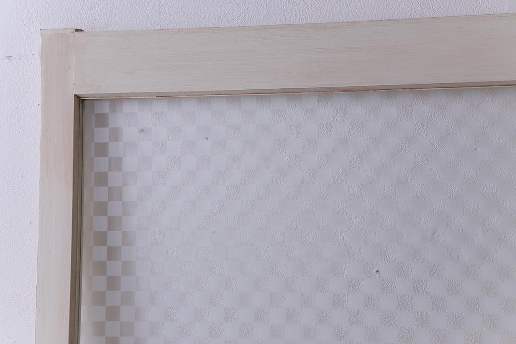 ヴィンテージ建具 ペイント 当店オリジナル市松模様ガラス レトロモダンな雰囲気のガラス引き戸2枚セット (R-031434)