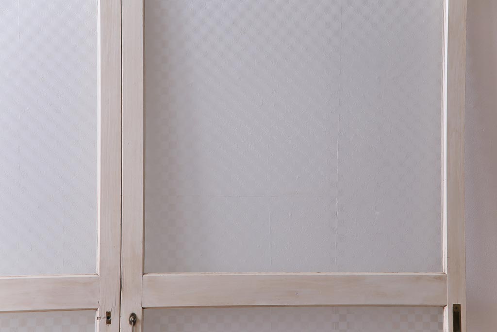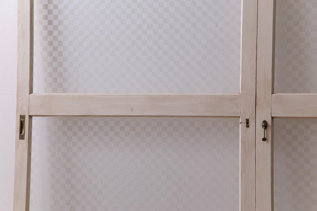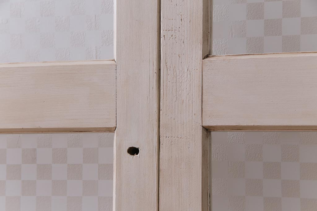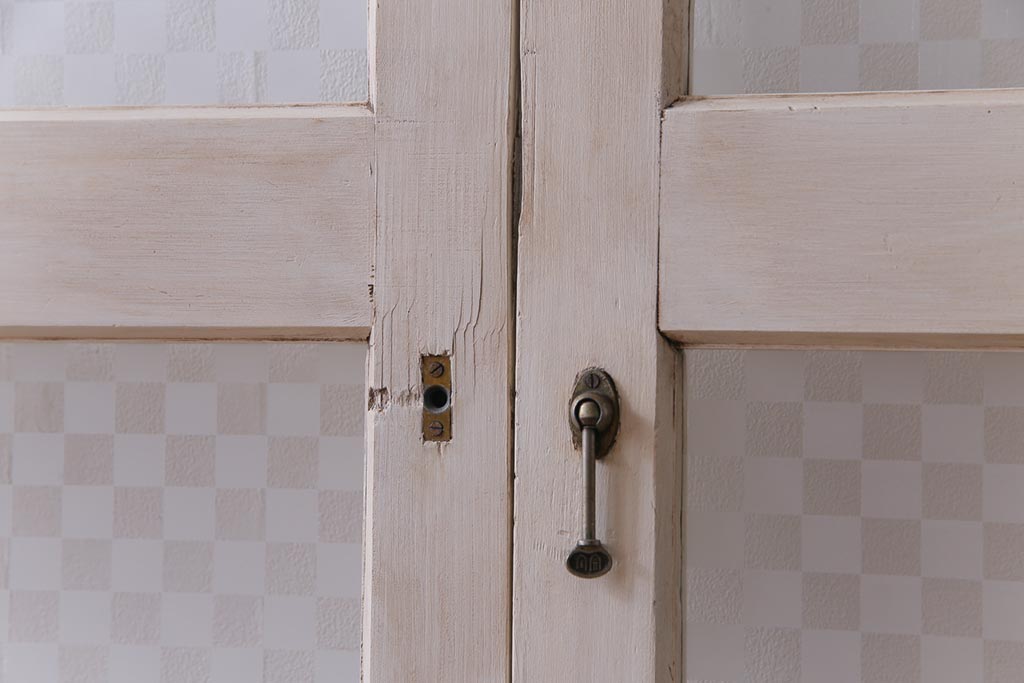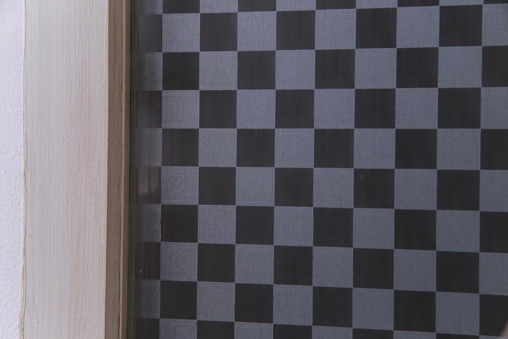 アンティーク調の淡いカラーのペイントを施し当店オリジナルの市松模様のガラスを組合せました。