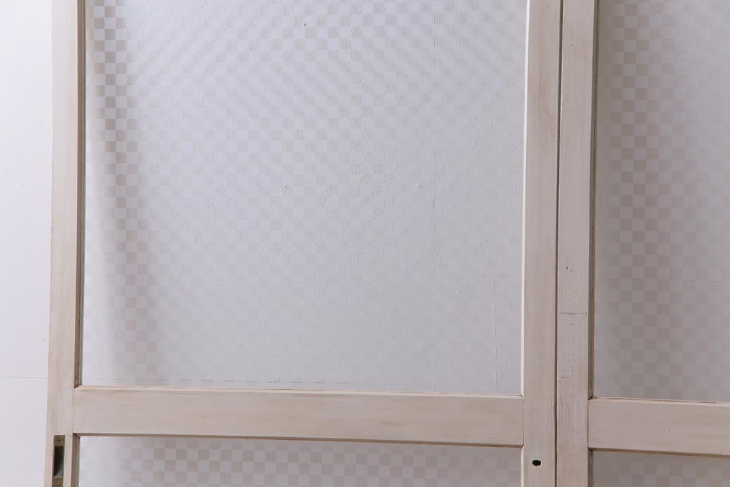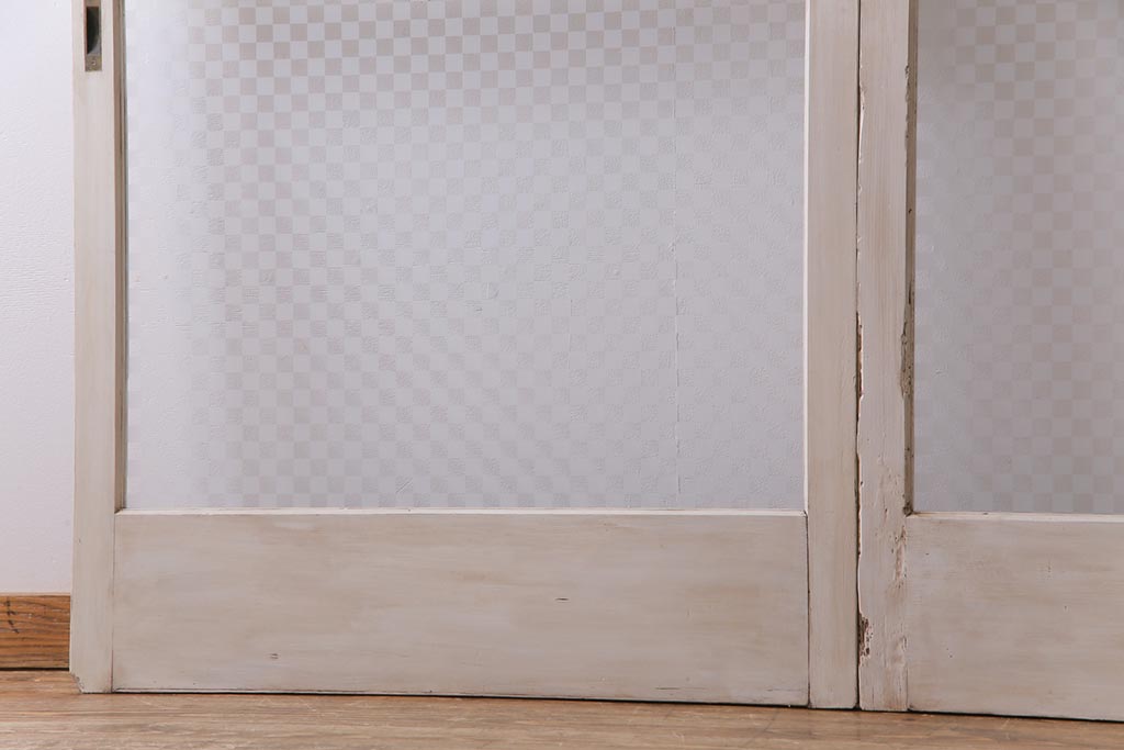 ドア・建具> ガラス戸 > ヴィンテージ建具 ペイント 当店オリジナル市松模様ガラス レトロモダンな雰囲気のガラス引き戸2枚セット (R-031434)