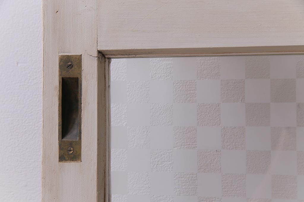 ドア・建具> 引き戸 > ヴィンテージ建具 ペイント 当店オリジナル市松模様ガラス レトロモダンな雰囲気のガラス引き戸2枚セット (R-031434)