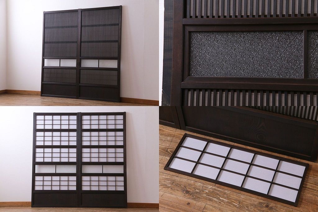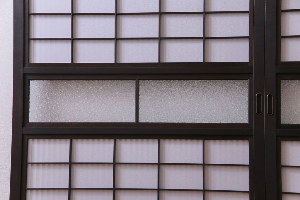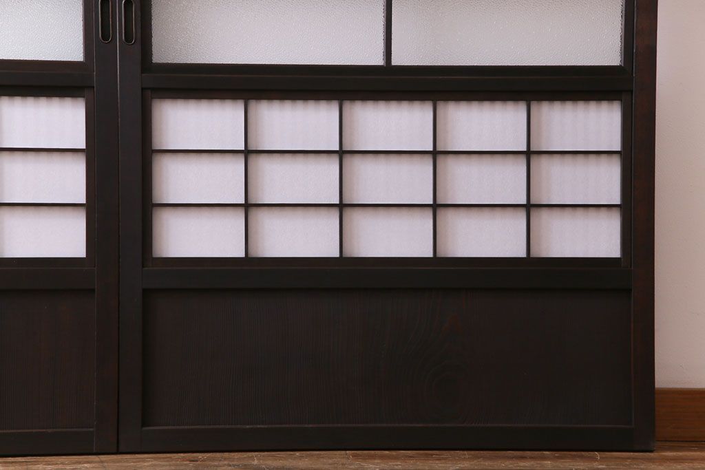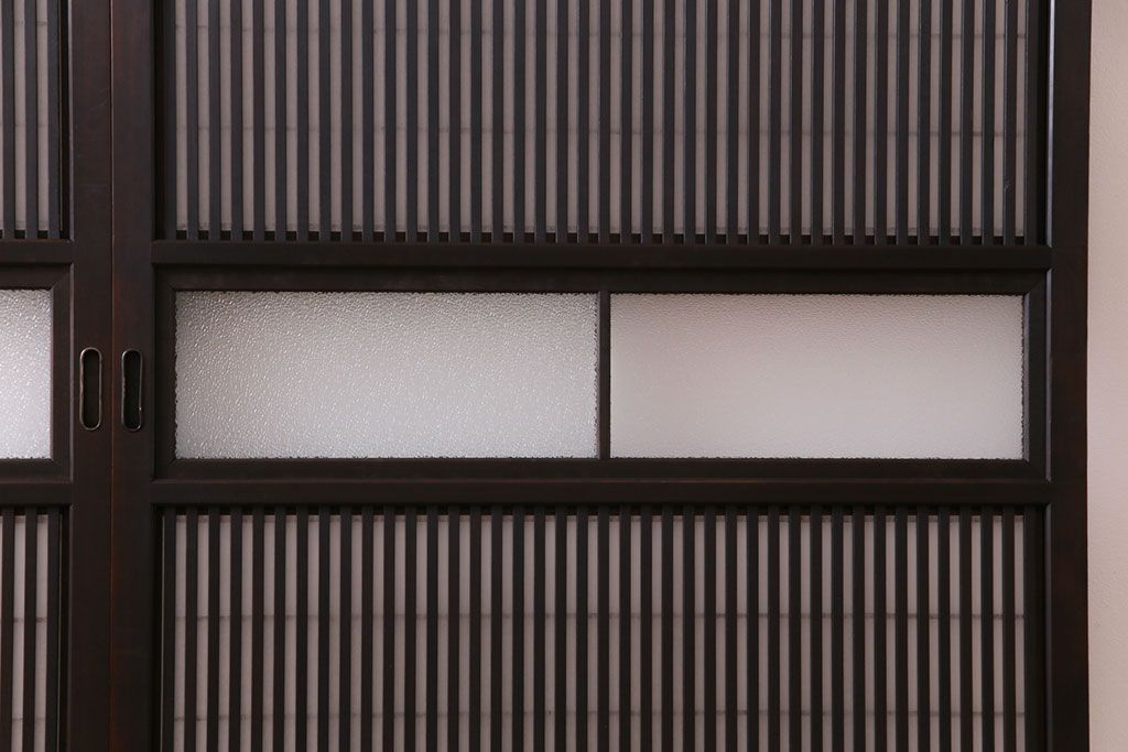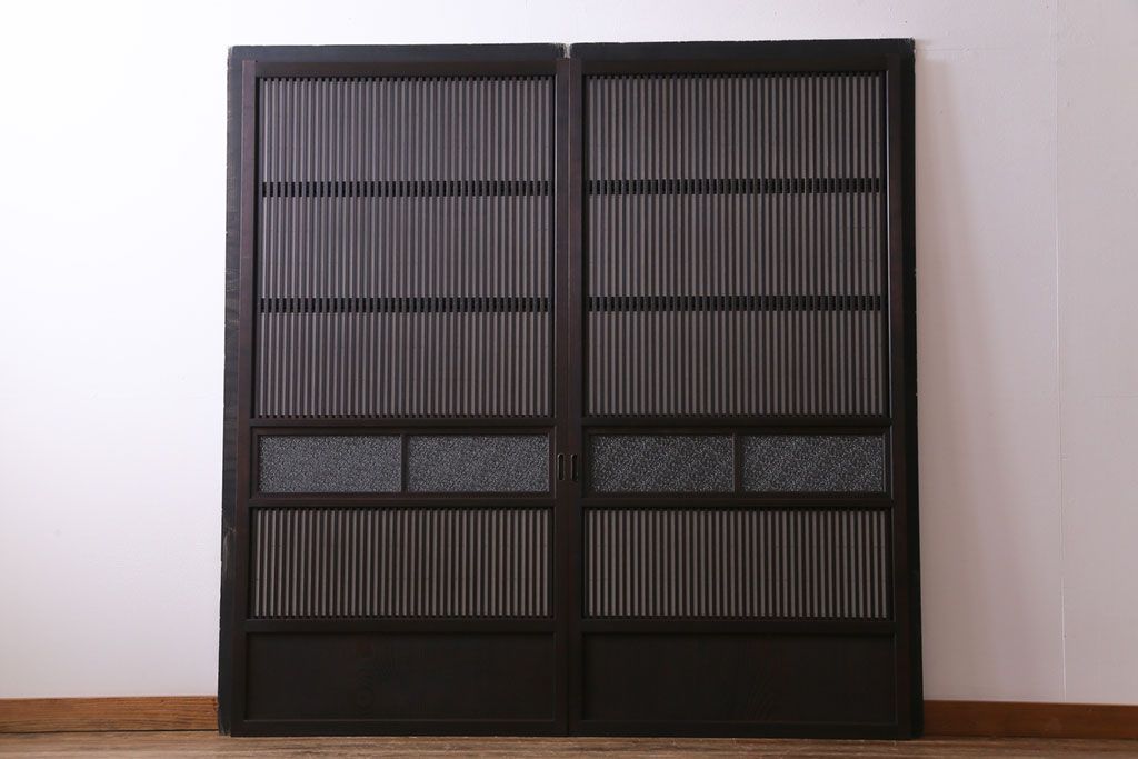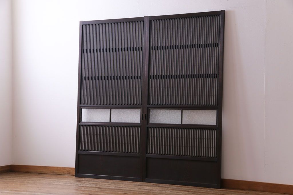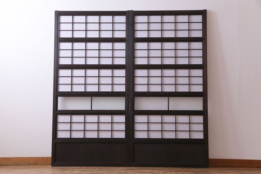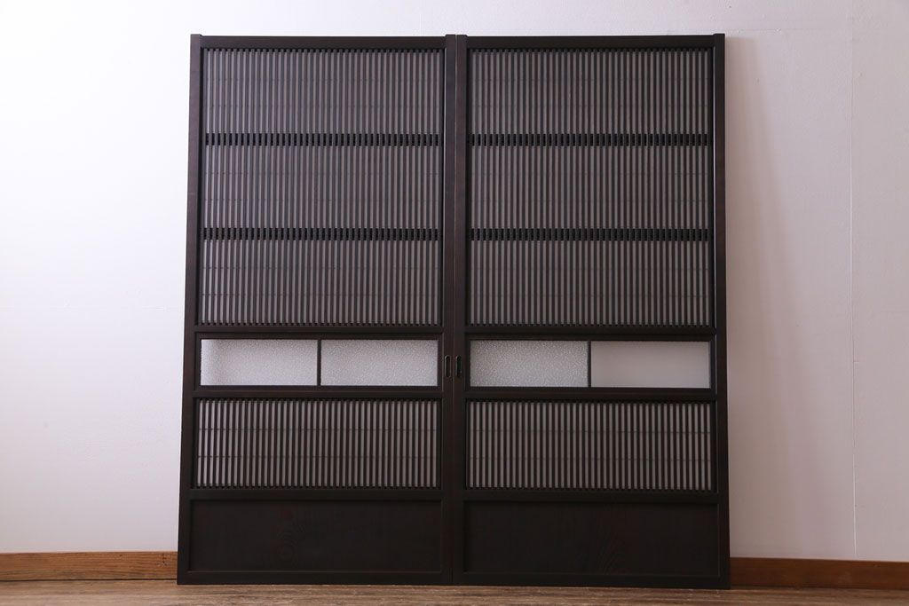和製アンティーク 裏障子付き ダイヤガラス 上品な和の雰囲気あふれる格子戸2枚セット(障子戸、引き戸、建具)