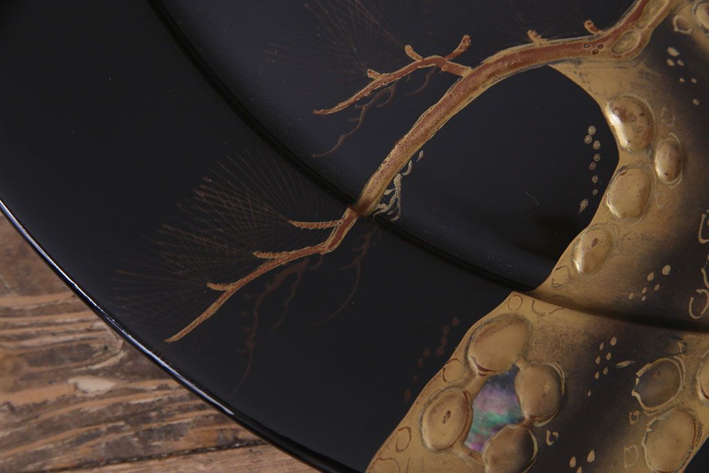 ラフジュ工房> 和食器・茶道具> 皿 > アンティーク雑貨 和製アンティーク 螺鈿入り 鶴・松の図 金彩高蒔絵木製大皿(漆器、和食器)