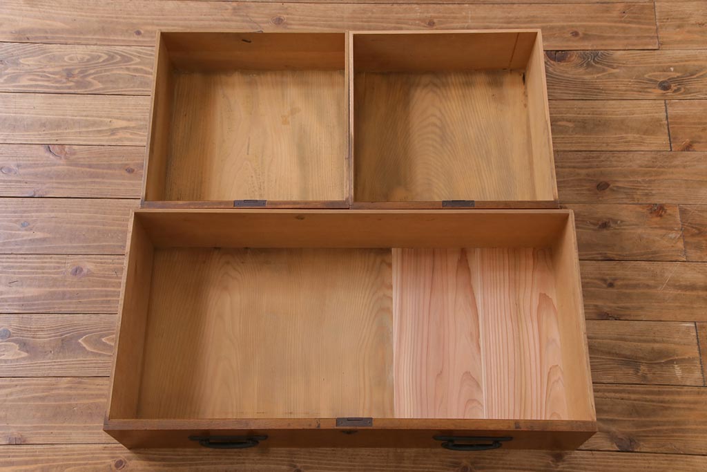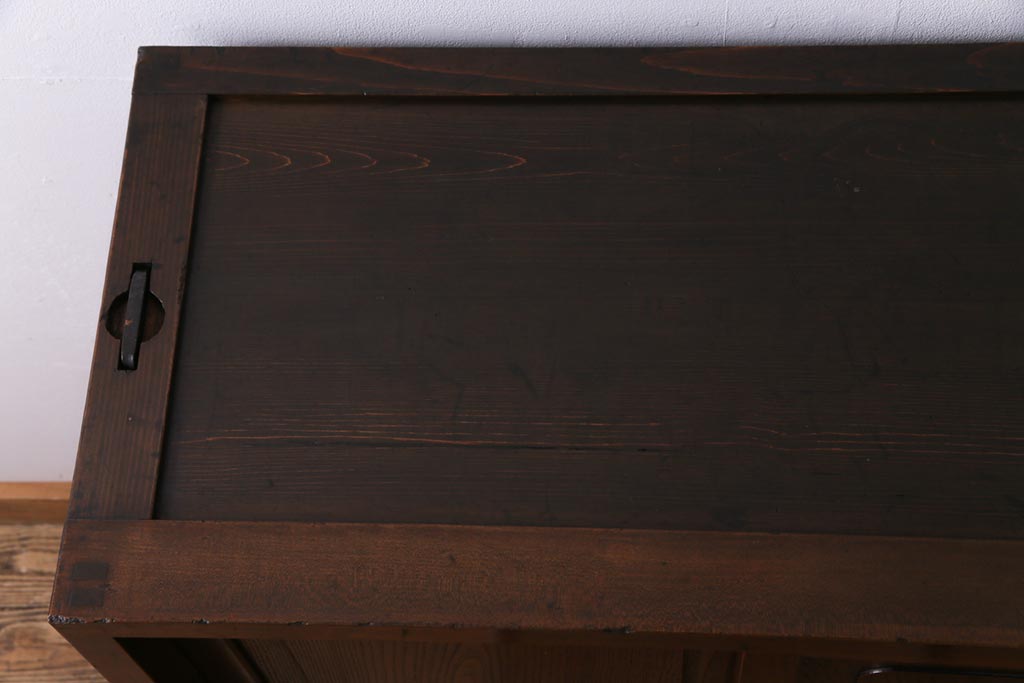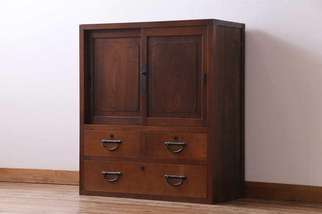 ラフジュ工房> 和箪笥> 茶箪笥・茶棚 > アンティーク家具 和製アンティーク 栗材 木の風合いが楽しめる小振りな戸棚(茶箪笥、収納棚)