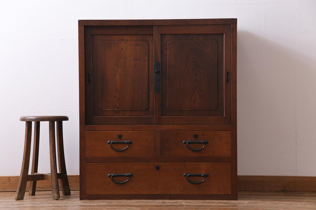 アンティーク家具 和製アンティーク 栗材 木の風合いが楽しめる小振りな戸棚(茶箪笥、収納棚)