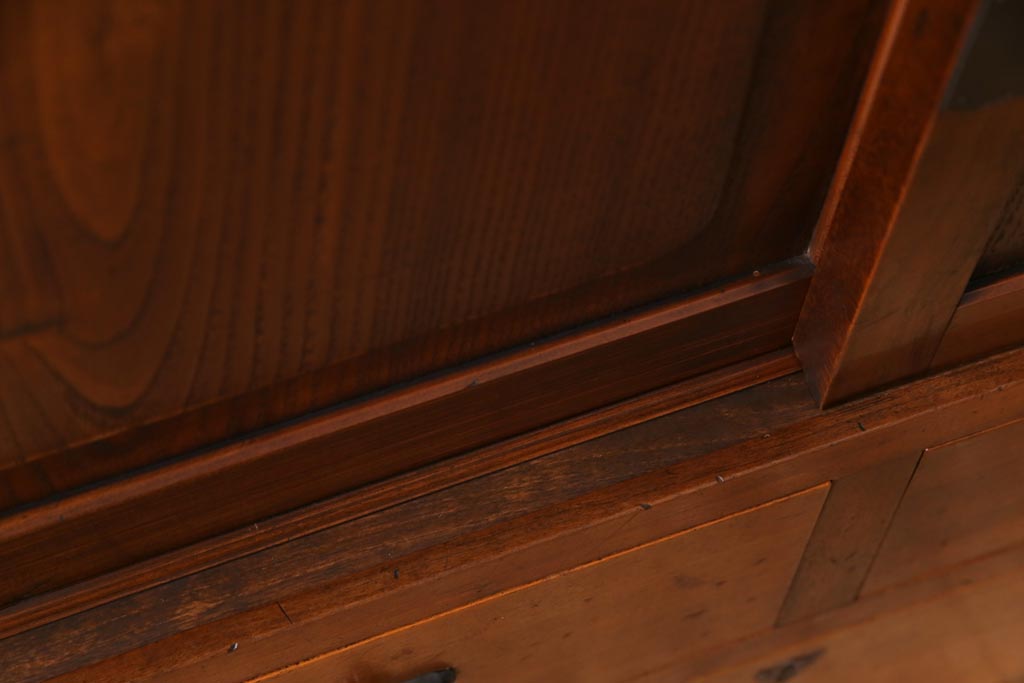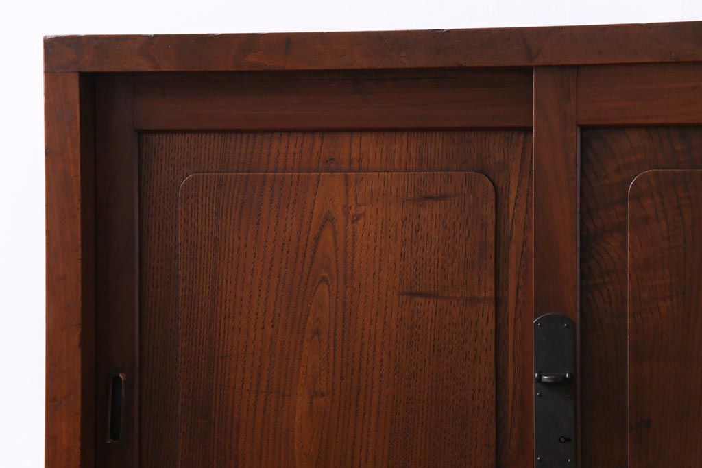 ラフジュ工房> キャビネット・戸棚> 食器棚・カップボード > アンティーク家具 和製アンティーク 栗材 木の風合いが楽しめる小振りな戸棚(茶箪笥、収納棚)
