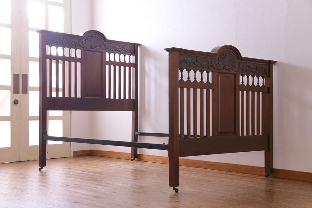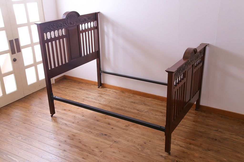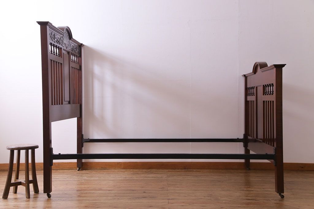 イギリスアンティーク マホガニー材 高級感漂うクラシカルなベッドフレーム