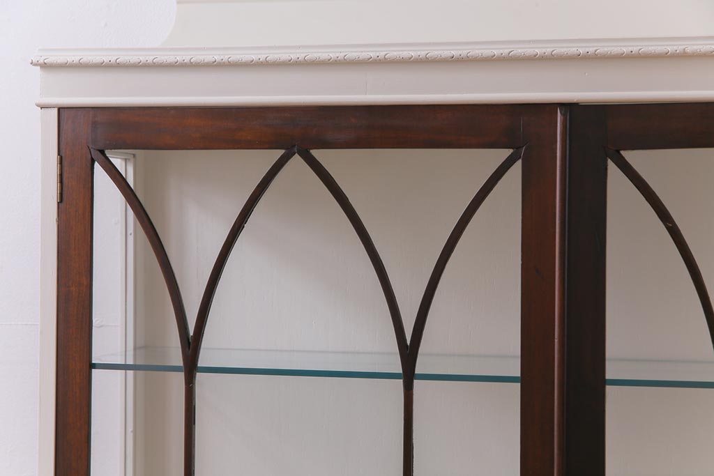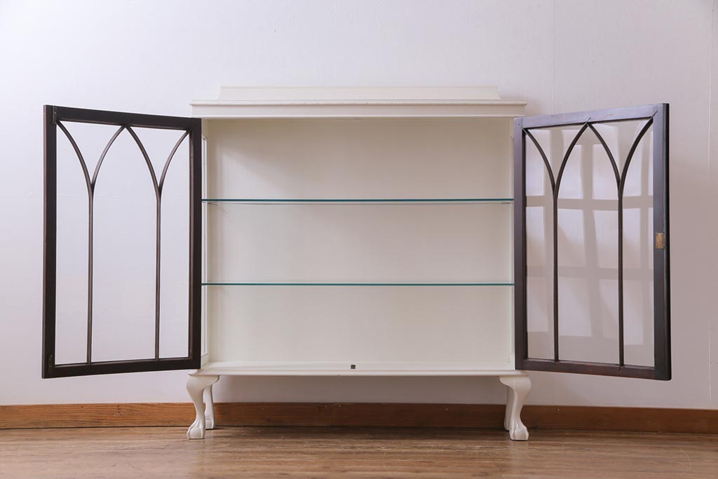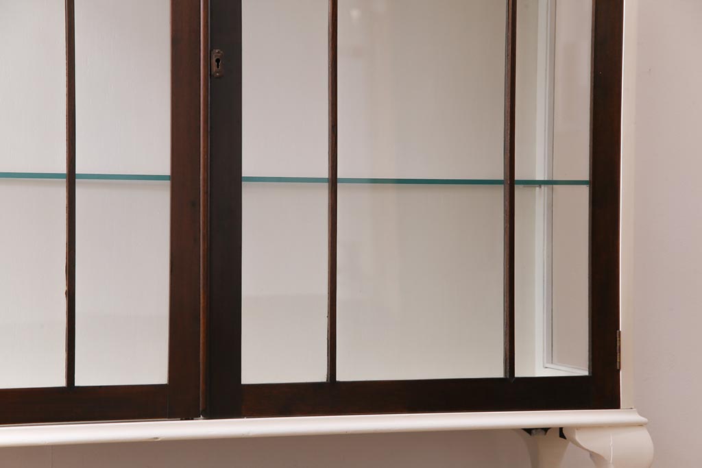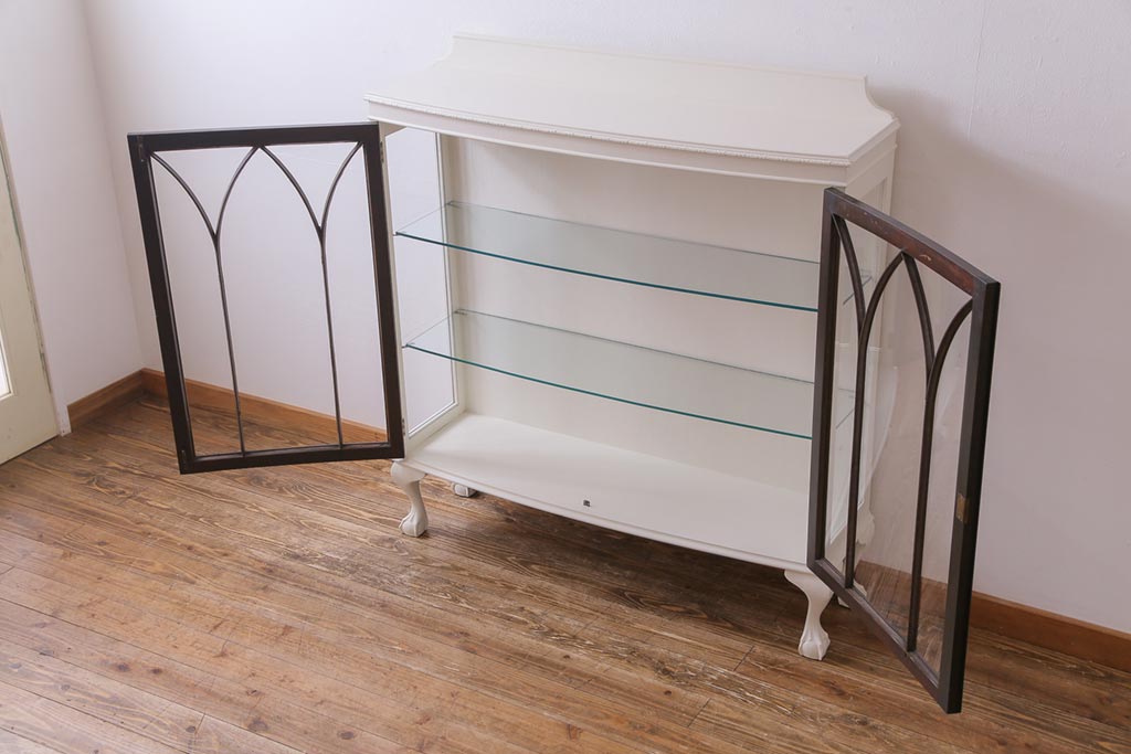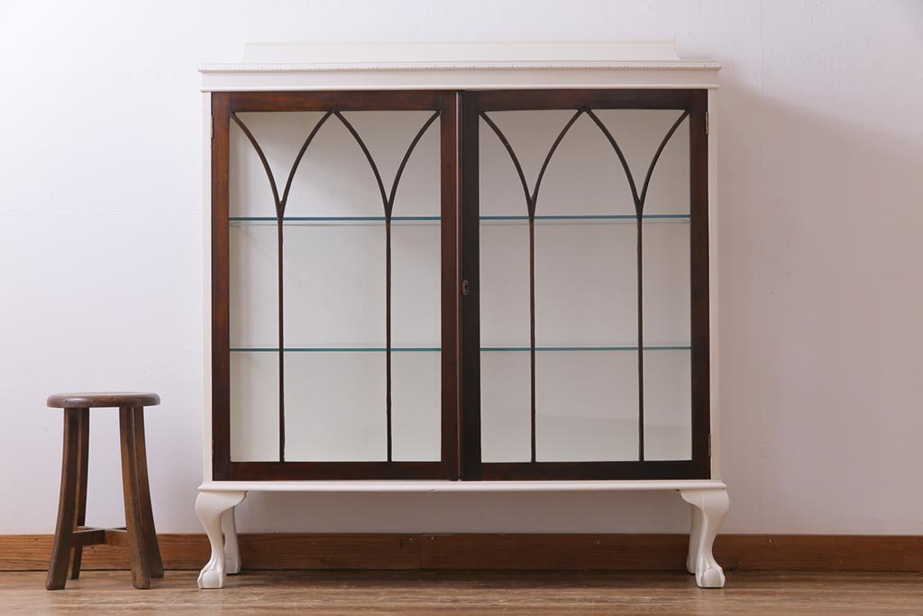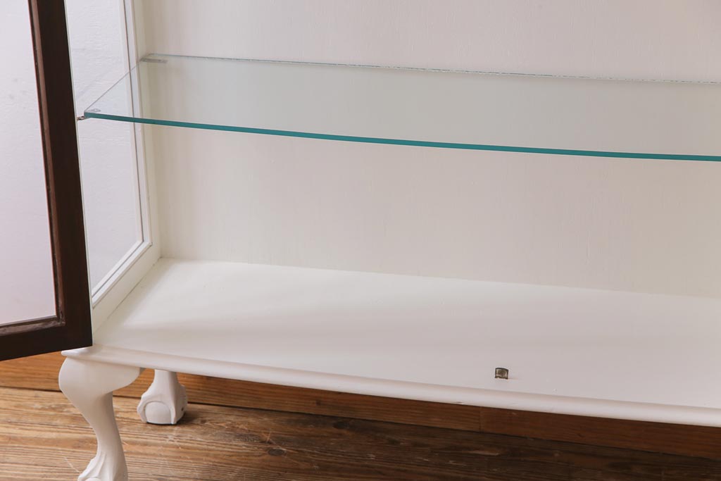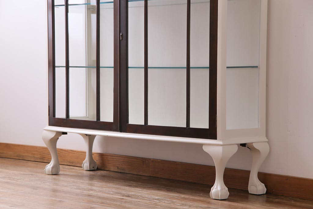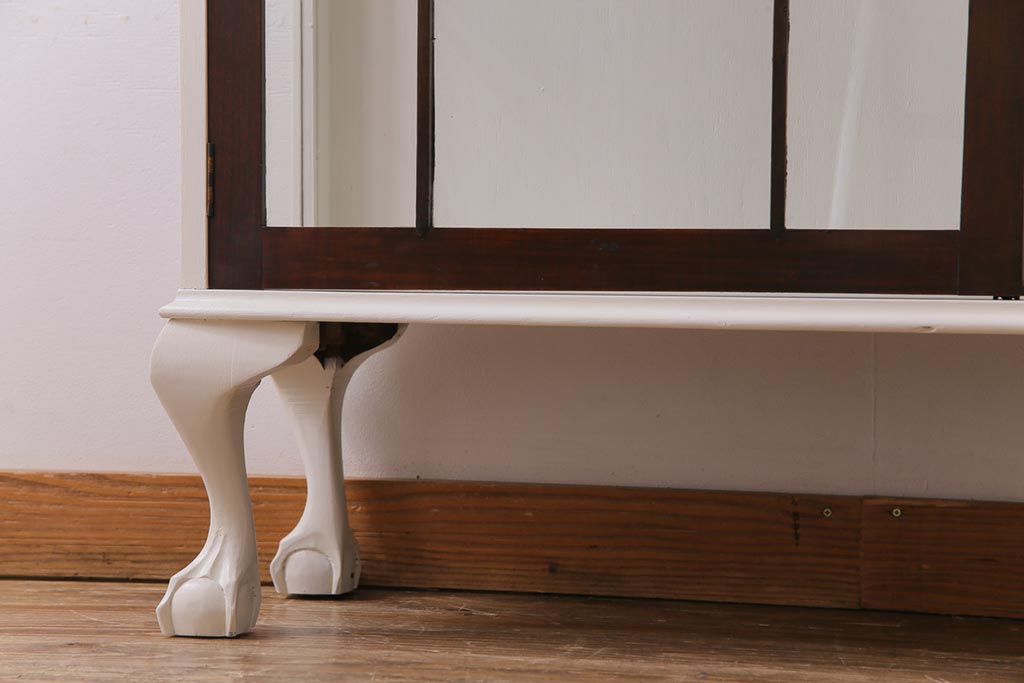 ラフジュ工房> 店舗什器 > ペイント家具 イギリスアンティーク 淡いカラーが柔らかな雰囲気を醸し出す猫脚のガラスキャビネット(ガラスケース、陳列棚、ショーケース)