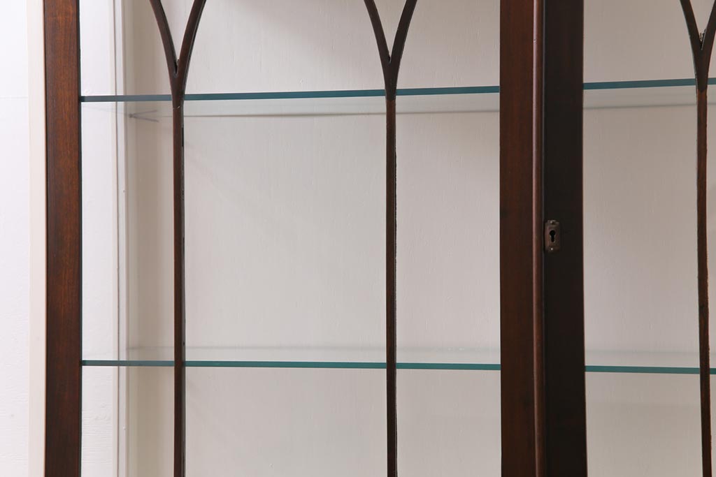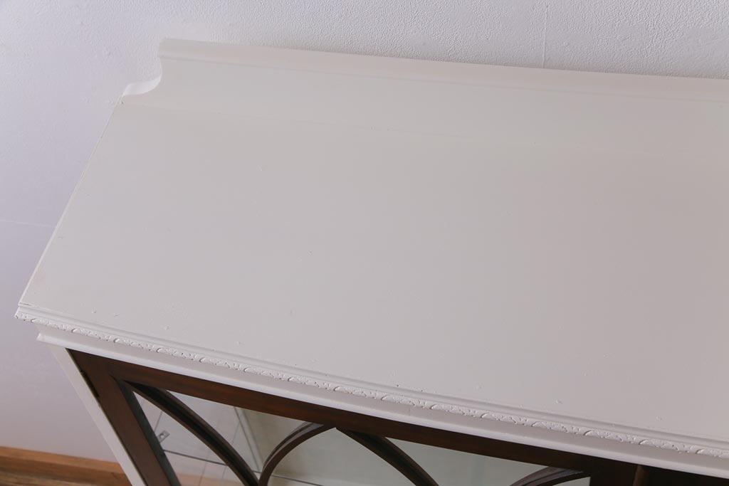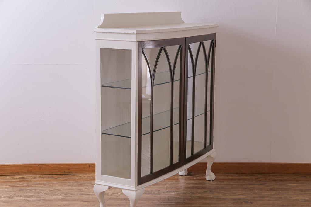 ペイント家具 イギリスアンティーク 淡いカラーが柔らかな雰囲気を醸し出す猫脚のガラスキャビネット(ガラスケース、陳列棚、ショーケース)