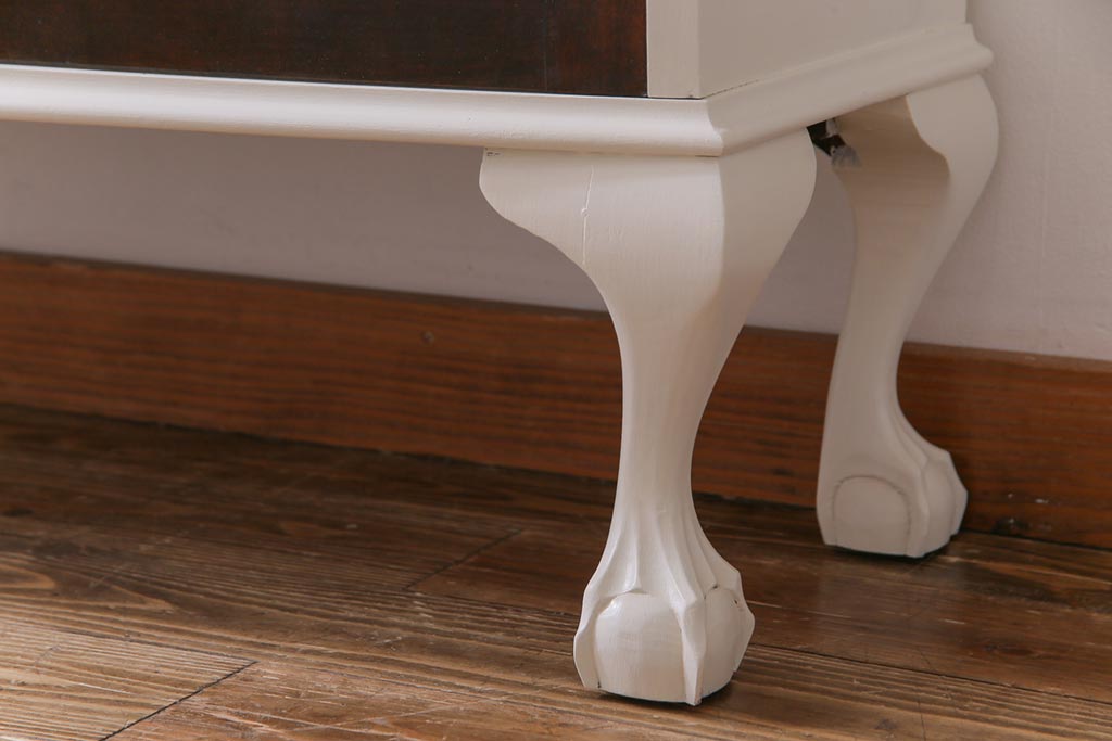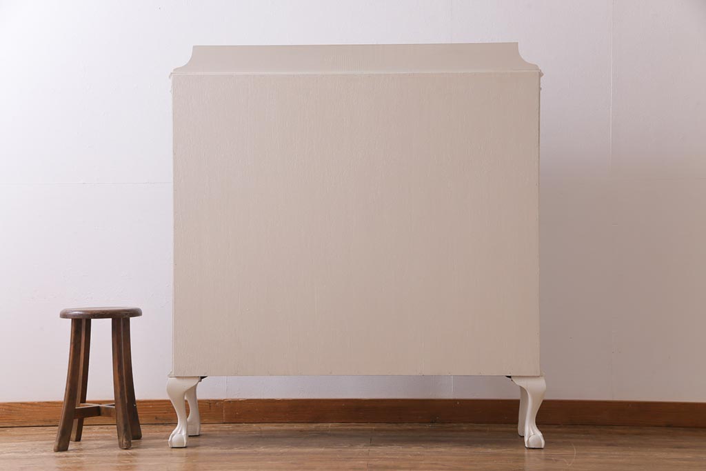 ラフジュ工房> ガラスケース・ショーケース > ペイント家具 イギリスアンティーク 淡いカラーが柔らかな雰囲気を醸し出す猫脚のガラスキャビネット(ガラスケース、陳列棚、ショーケース)