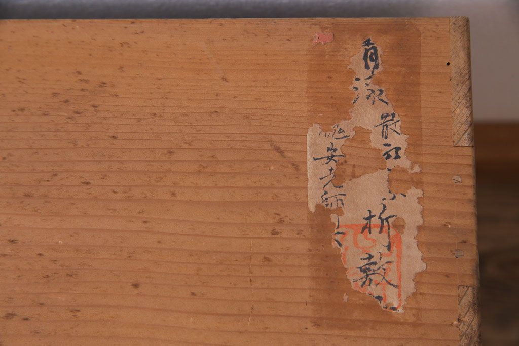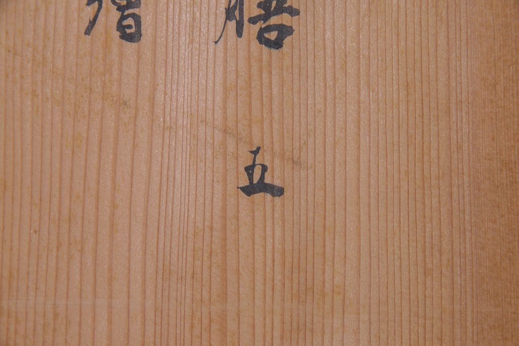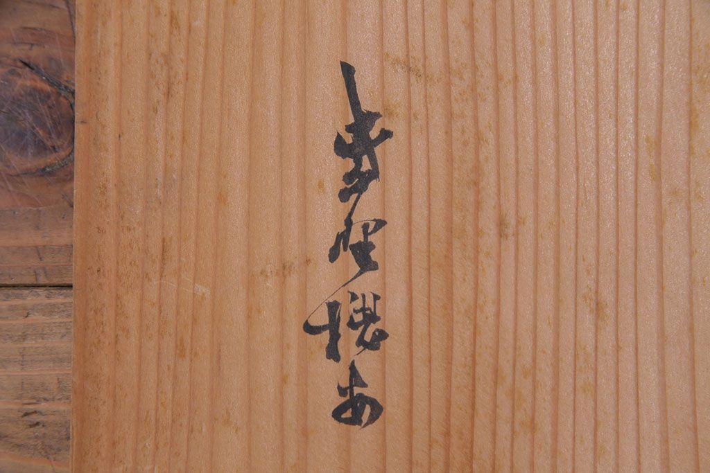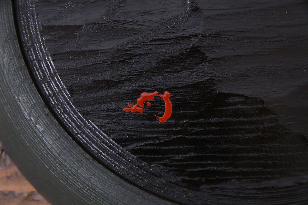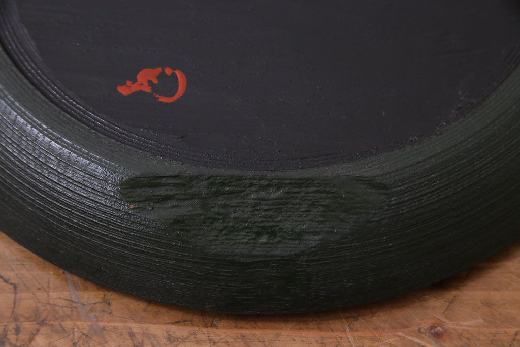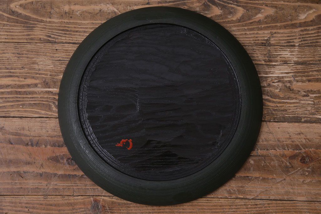 ラフジュ工房> 骨董・美術品> 骨董-漆器 > 和製アンティーク 紅葉の図 共箱付き青漆丸型膳(お盆、漆器)5枚セット