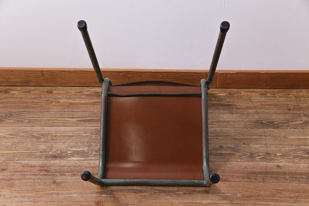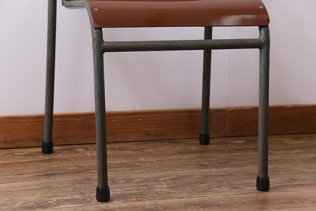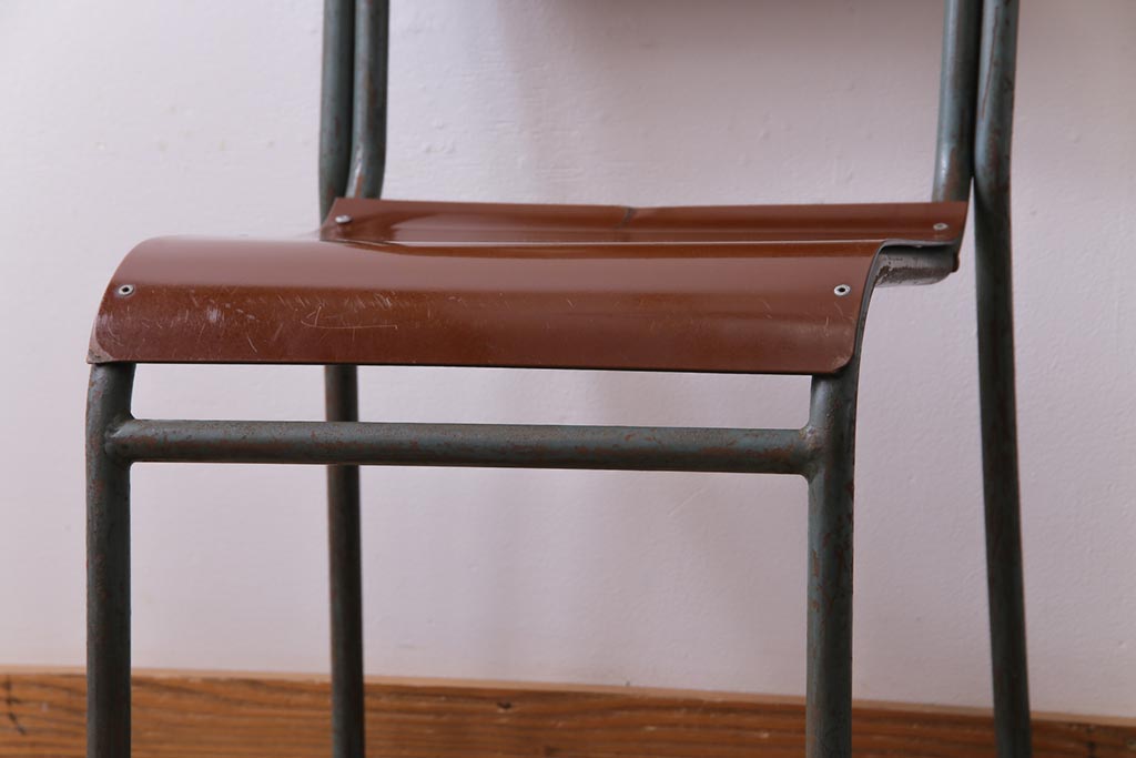 ヴィンテージ家具 イギリスビンテージ ベークライト 座面のカーブが特徴的なスクールチェア(鉄脚チェア、椅子)(3)
