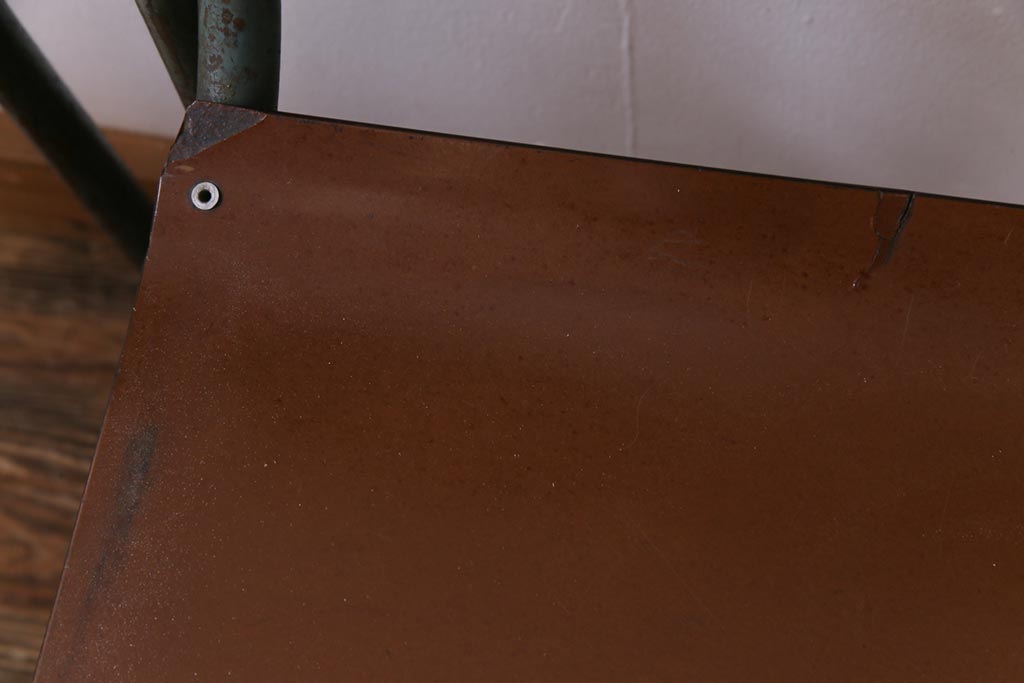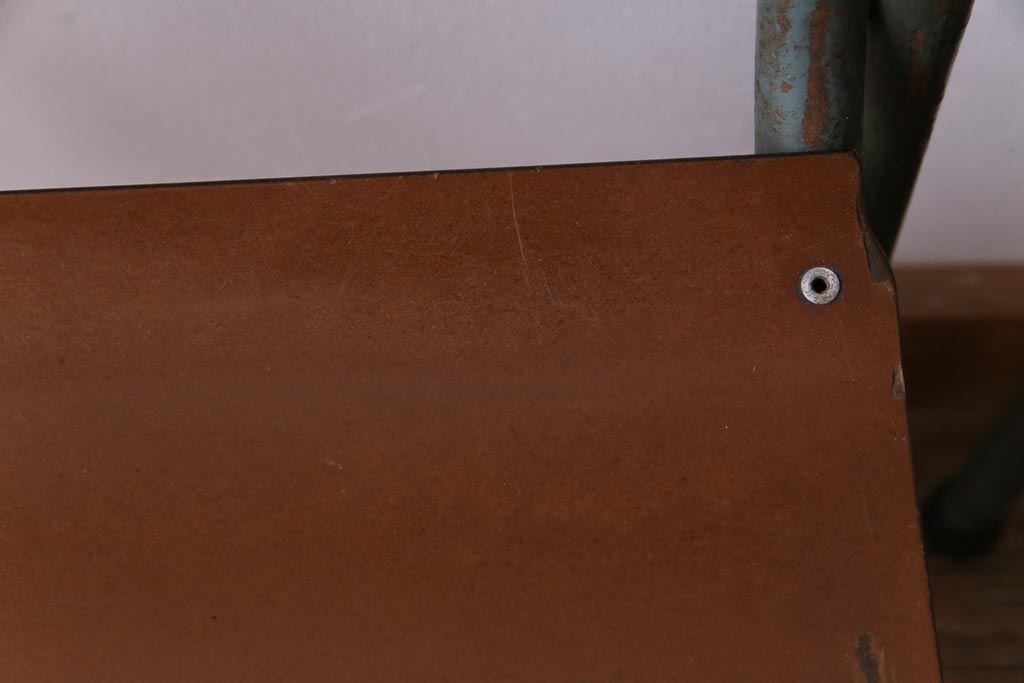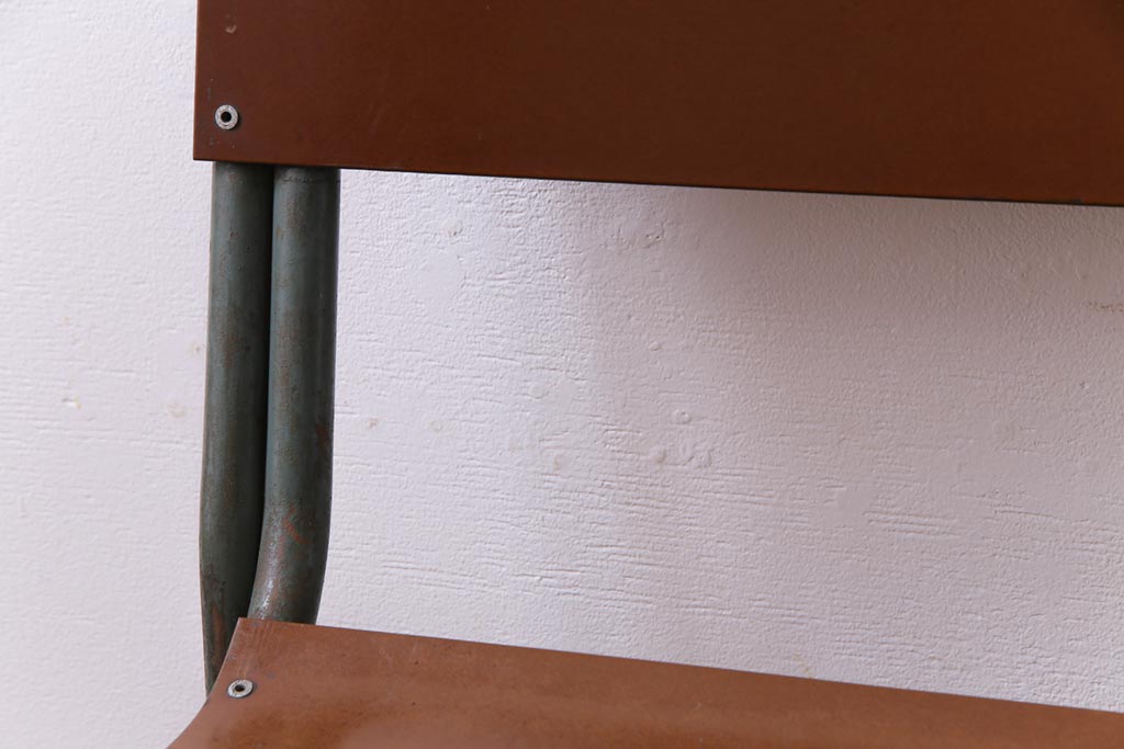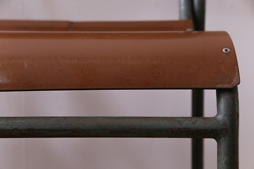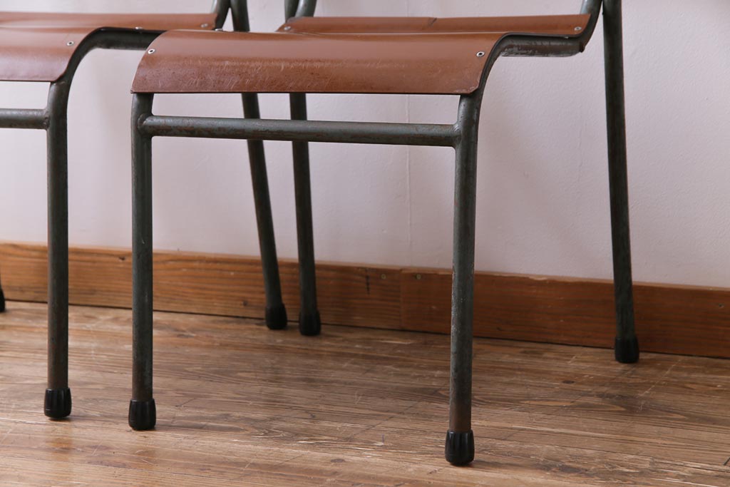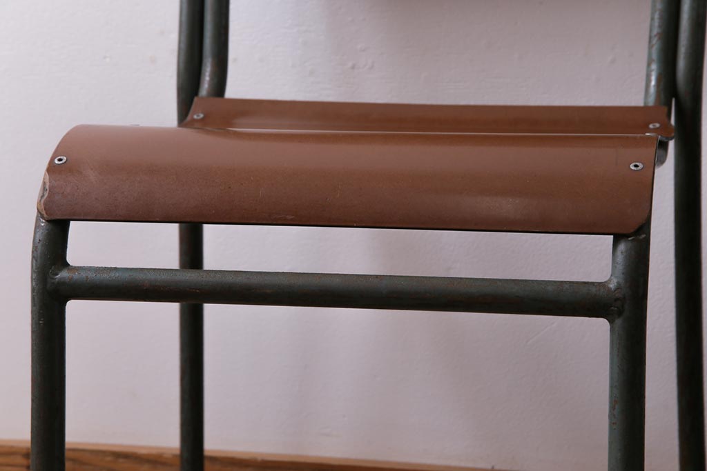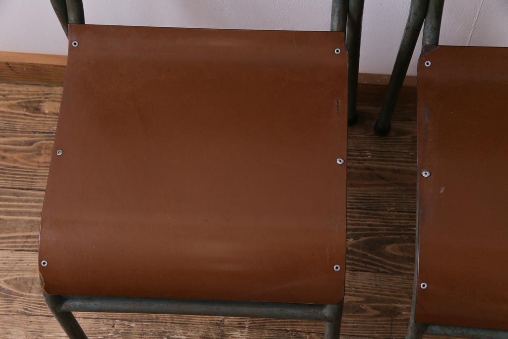 ラフジュ工房> 椅子・ベンチ> ダイニングチェア > ヴィンテージ家具 イギリスビンテージ ベークライト 座面のカーブが特徴的なスクールチェア(鉄脚チェア、椅子)2脚セット