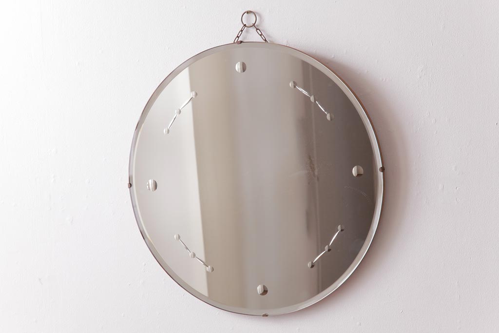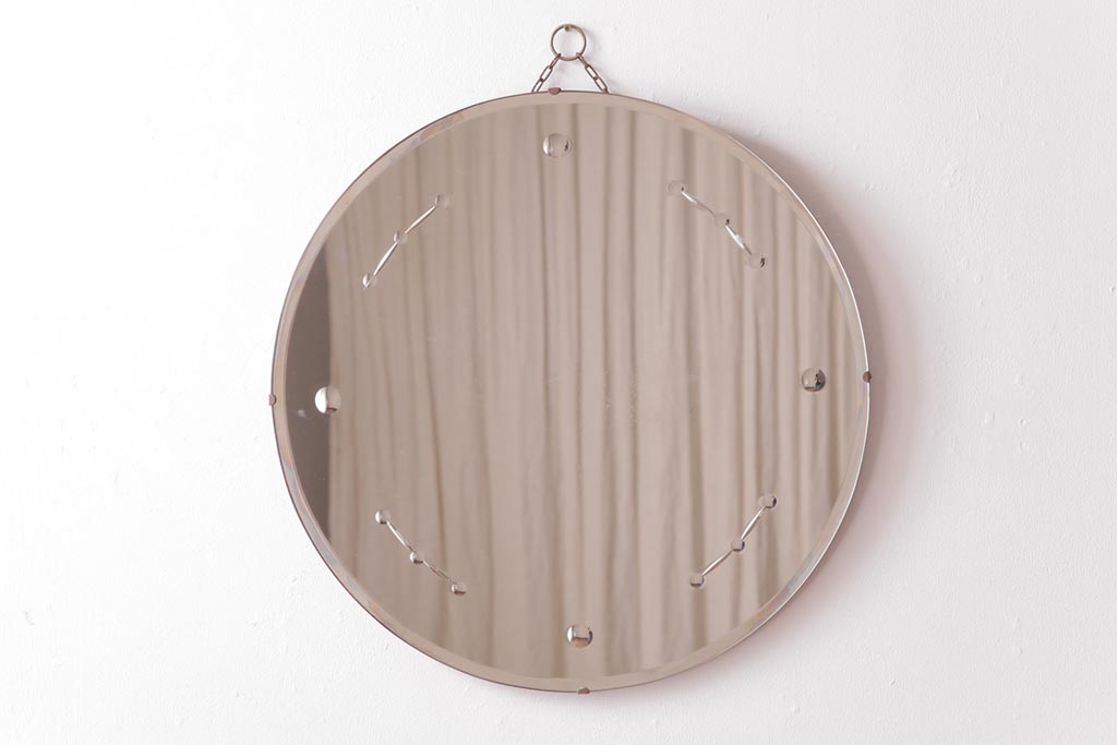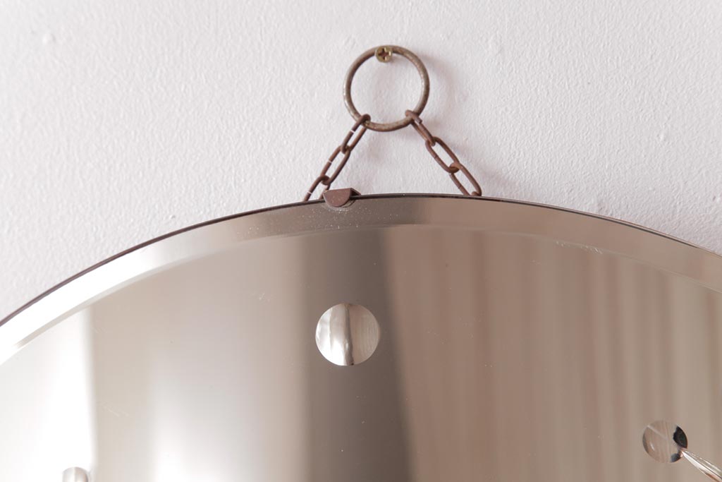 ラフジュ工房> 鏡> 壁掛け鏡 > アンティーク雑貨 イギリスビンテージ 小さな丸のカットがシンプルで可愛らしいウォールミラー(壁掛け鏡)