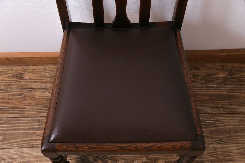 アンティーク家具 イギリスアンティーク オーク材 上品で味わい深いダイニングチェア(ワークチェア、椅子)(2)