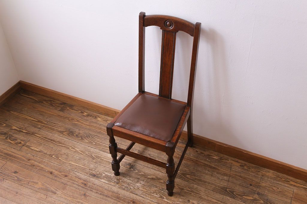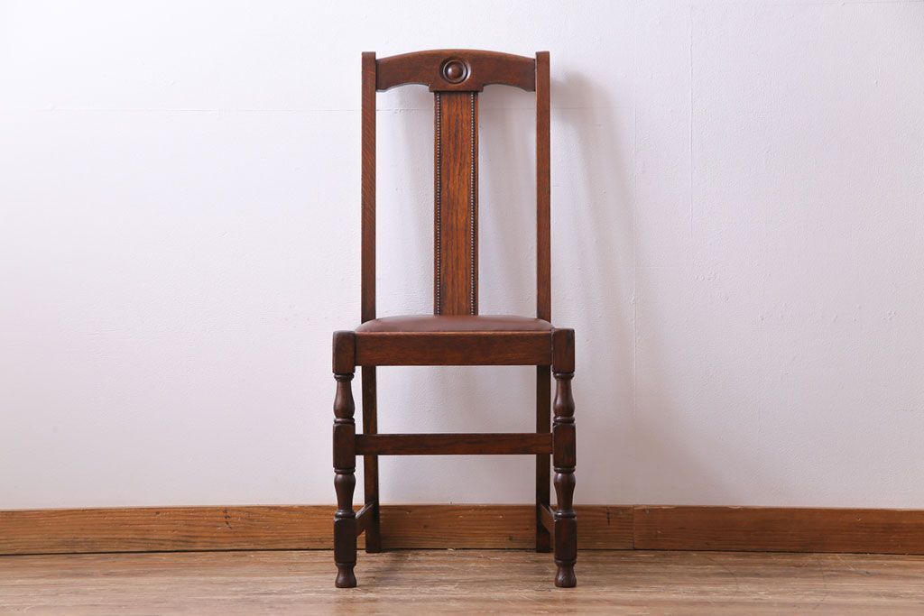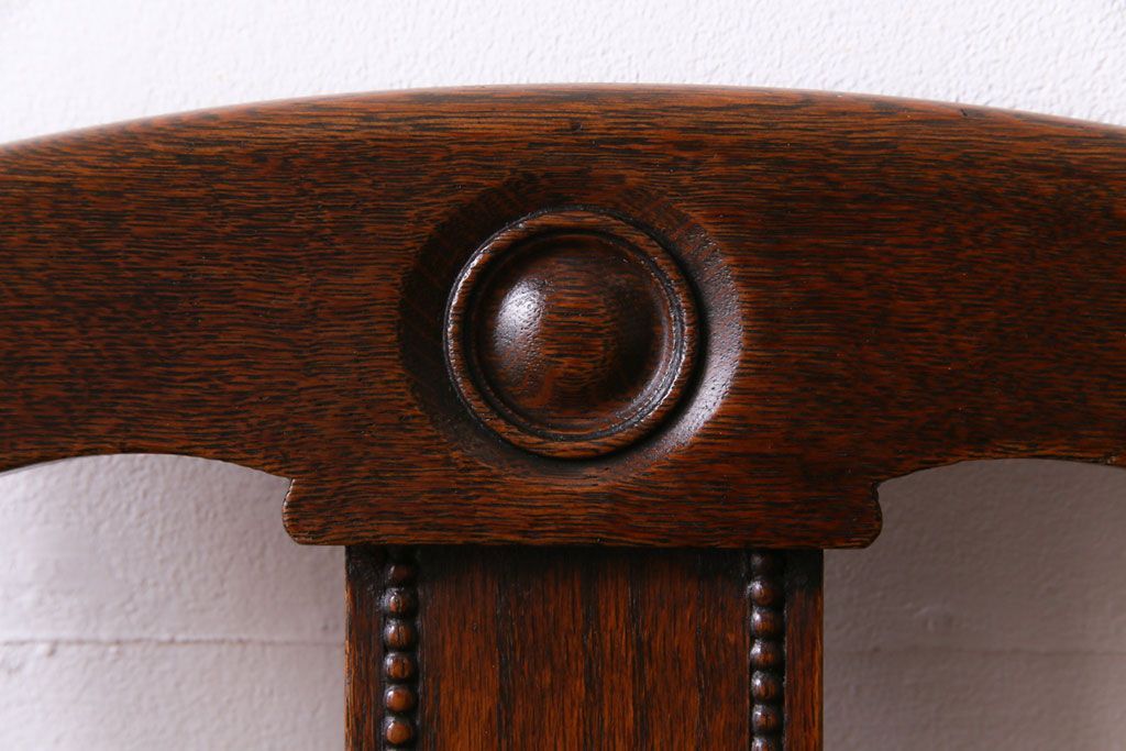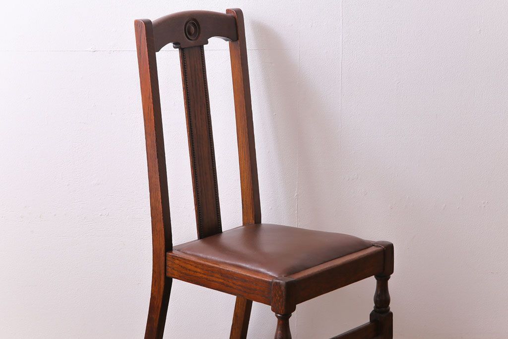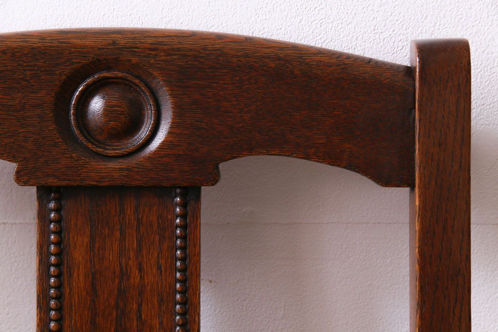 アンティーク家具 イギリスアンティーク オーク材 細かな彫りとシンプルな形のチェア(ダイニングチェア、椅子)