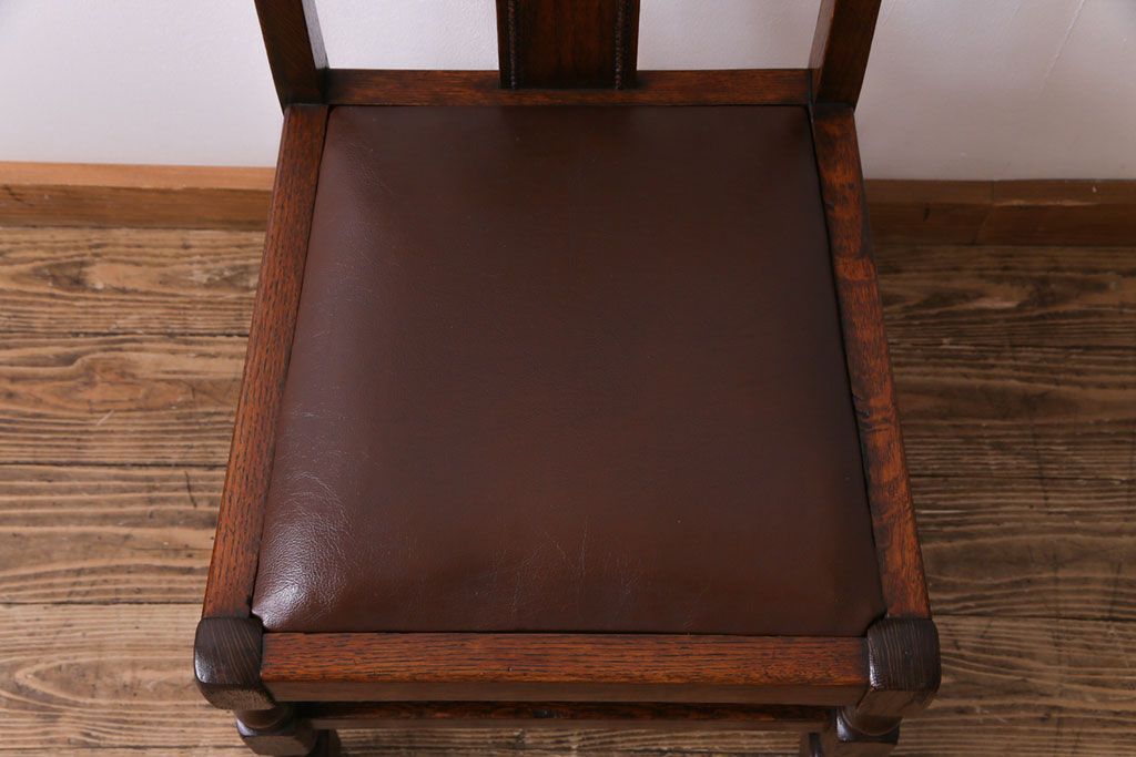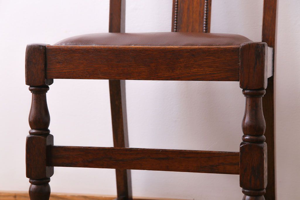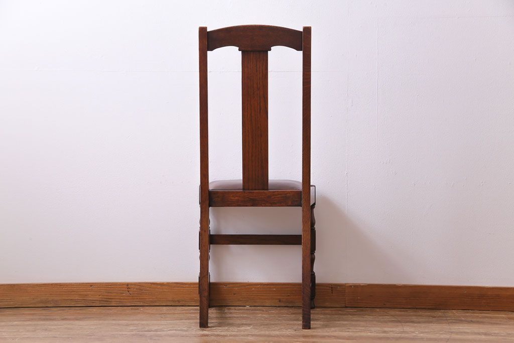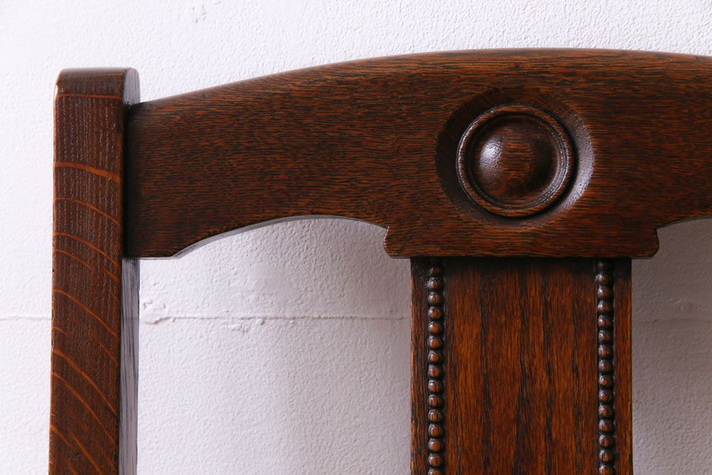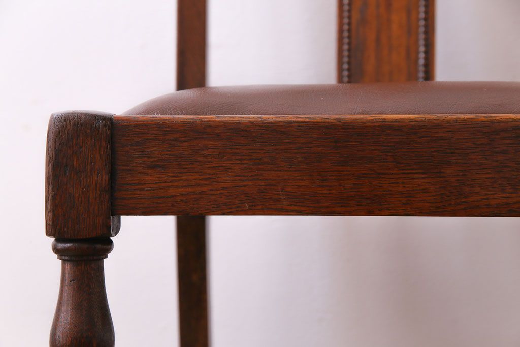 アンティーク家具 イギリスアンティーク オーク材 細かな彫りとシンプルな形のチェア(ダイニングチェア、椅子)