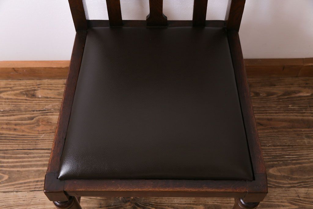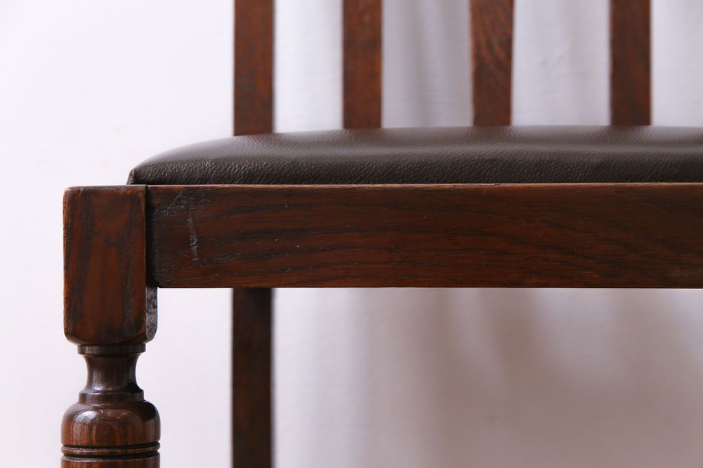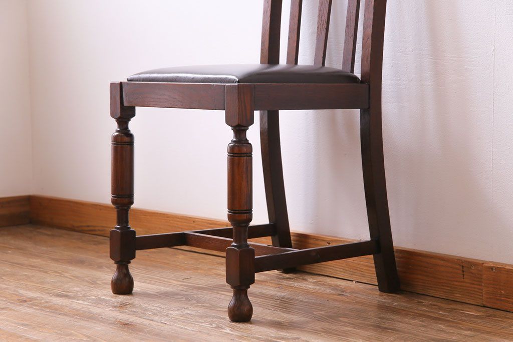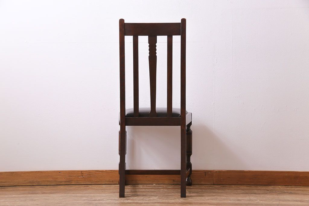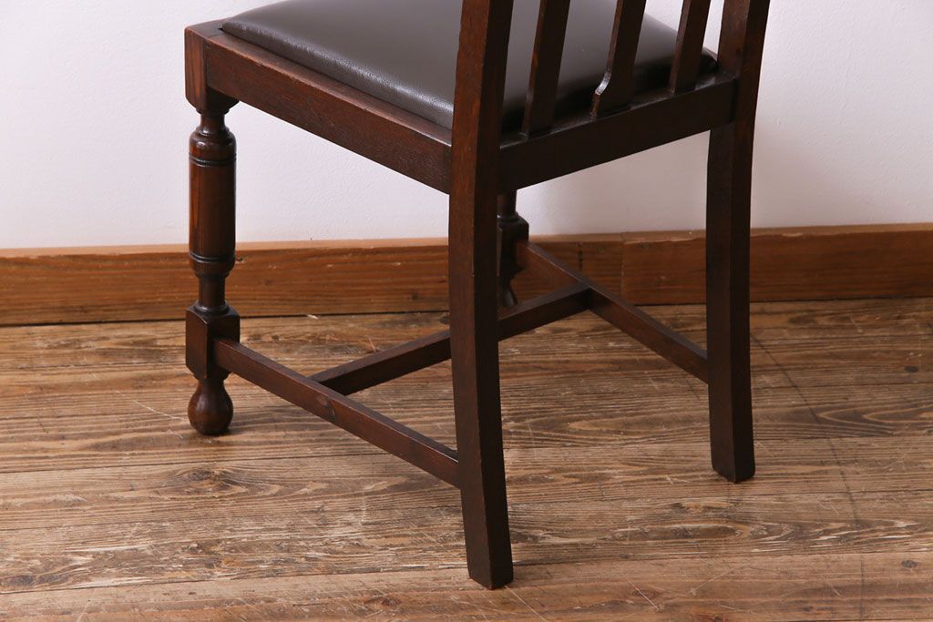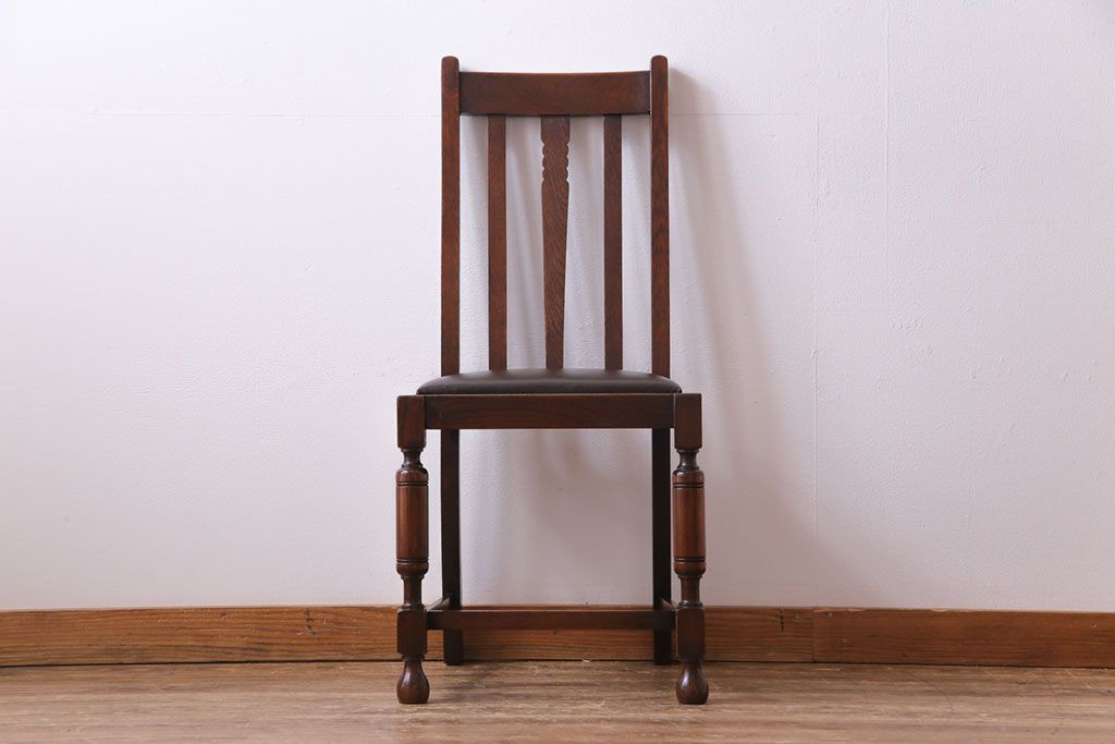アンティーク家具 イギリスアンティーク オーク材 挽き物の脚が目を引くダイニングチェア(ワークチェア、椅子)(1)