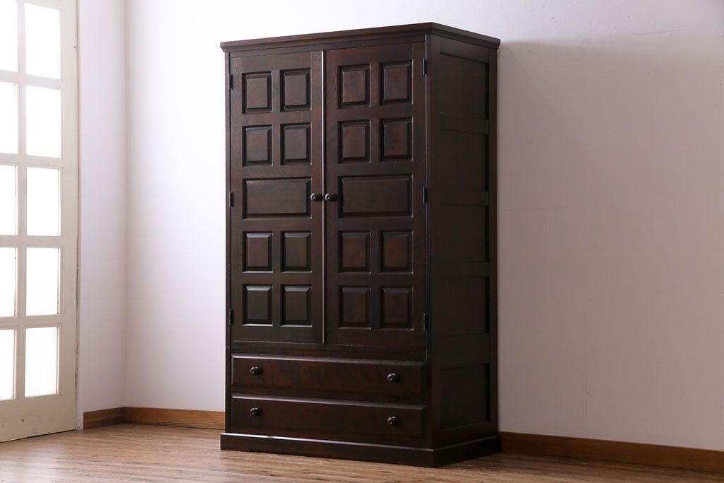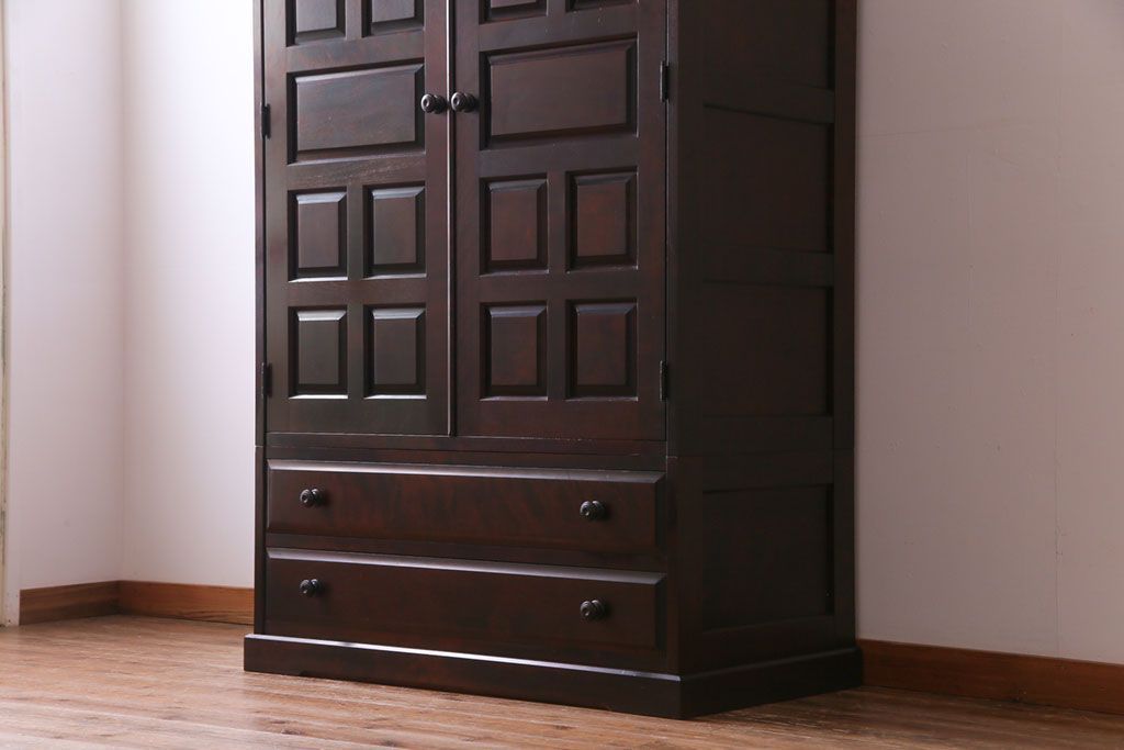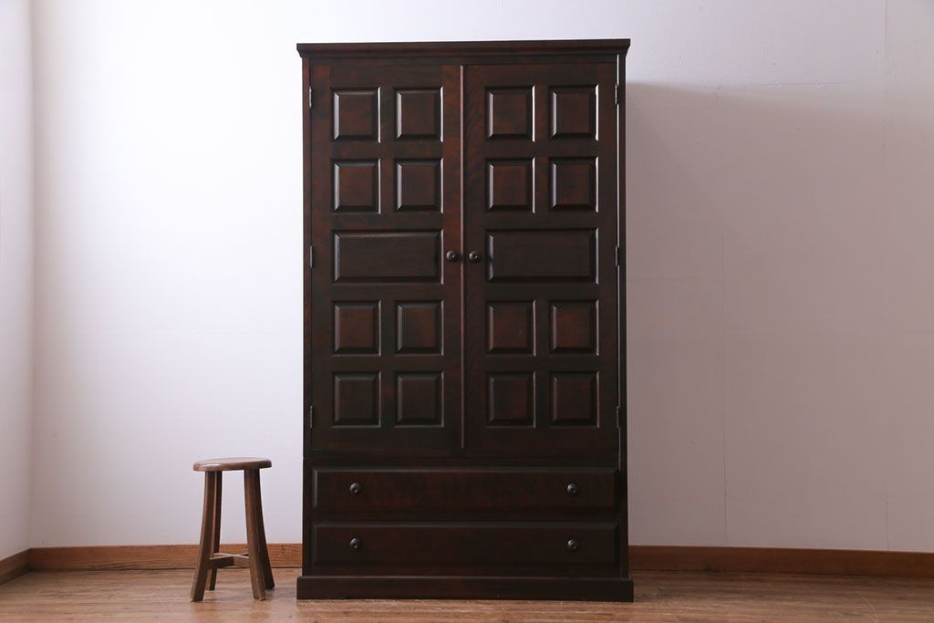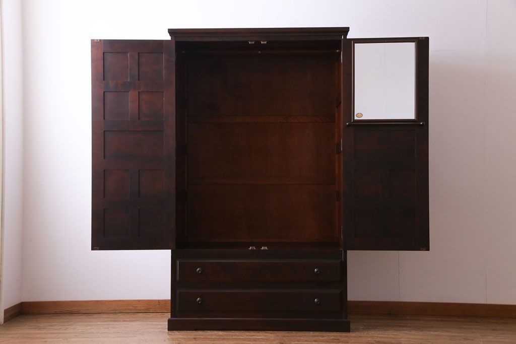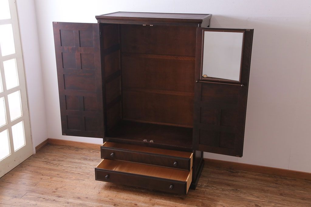 ラフジュ工房> 民芸家具 > 中古 北海道民芸家具 鏡付き 上品な雰囲気づくりに活躍する2段重ねワードローブ(洋服タンス、洋服箪笥)(定価約80万円)(2)