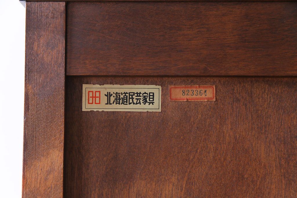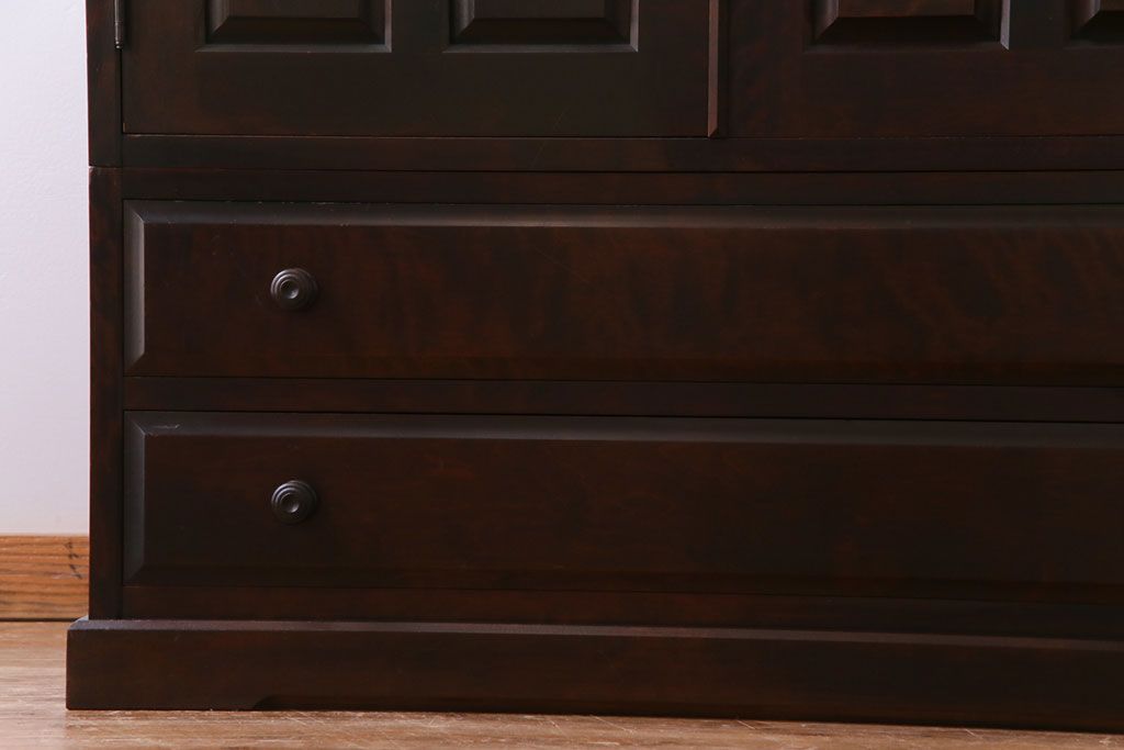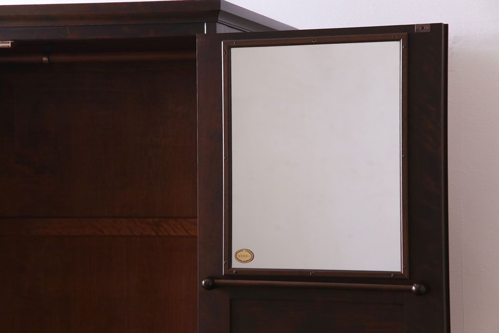 ラフジュ工房> ワードローブ・ロッカー> ワードローブ > 中古 北海道民芸家具 鏡付き 上品な雰囲気づくりに活躍する2段重ねワードローブ(洋服タンス、洋服箪笥)(定価約80万円)(2)