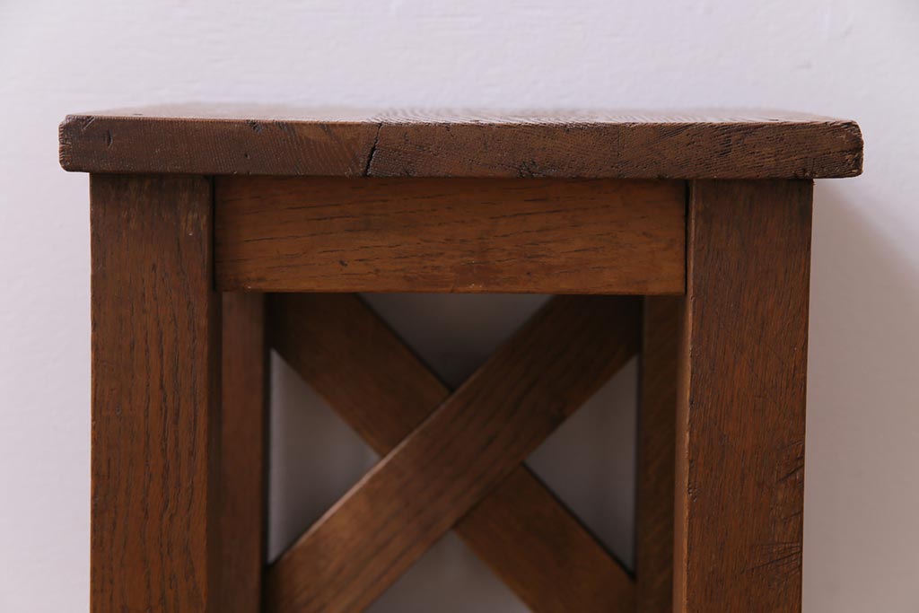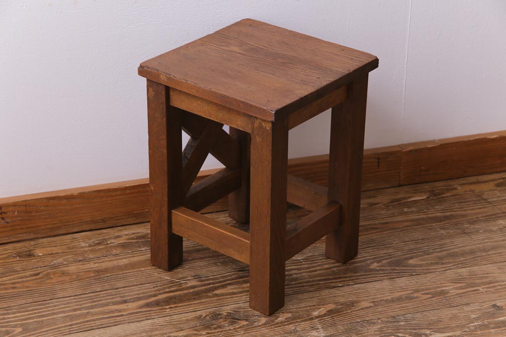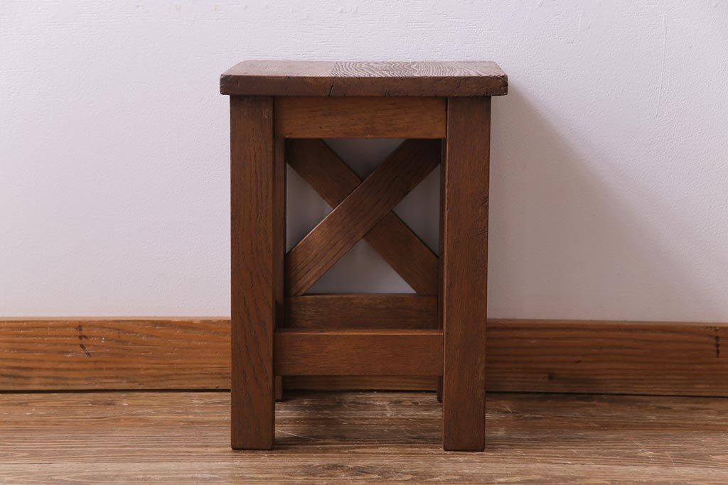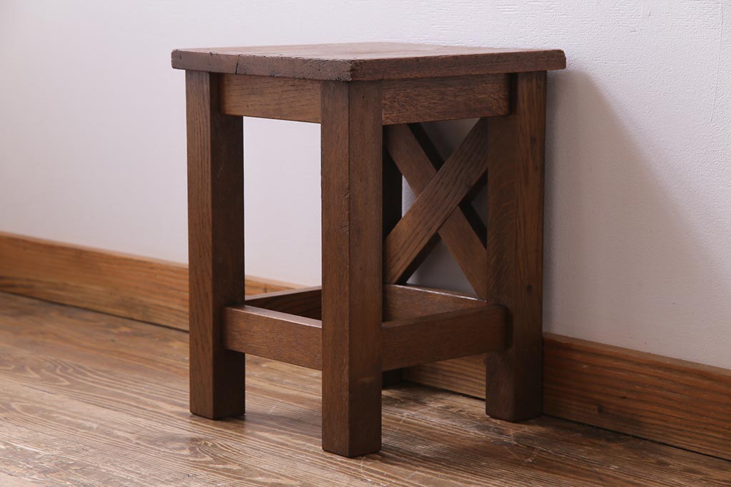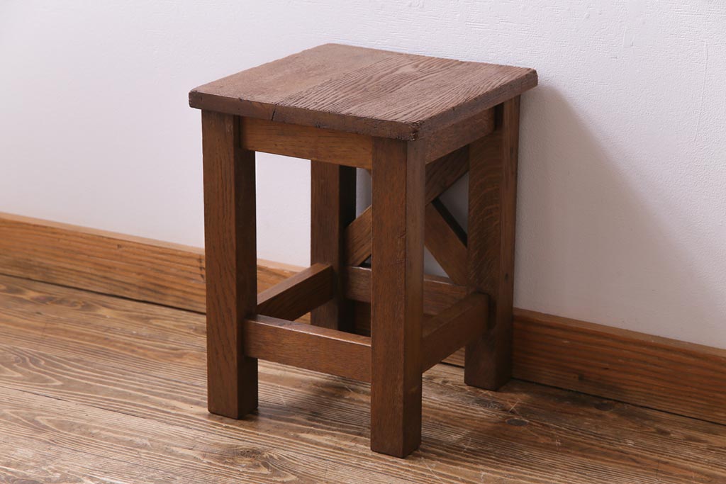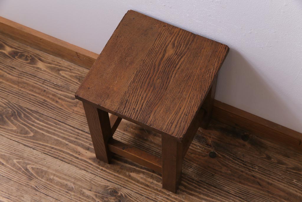 レトロ家具 昭和レトロ 懐かしさと温もり溢れるナラ材製の学校スツール(角スツール、花台)(2)