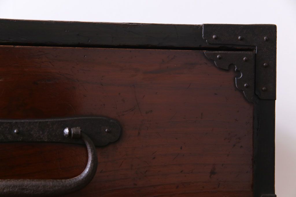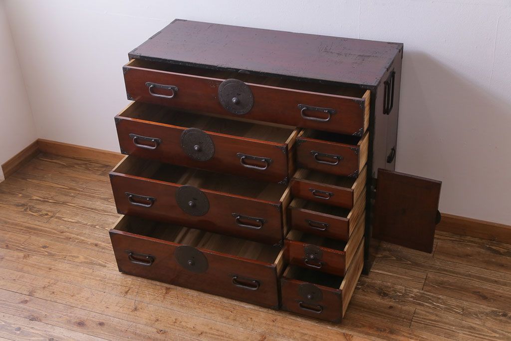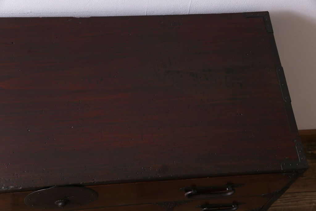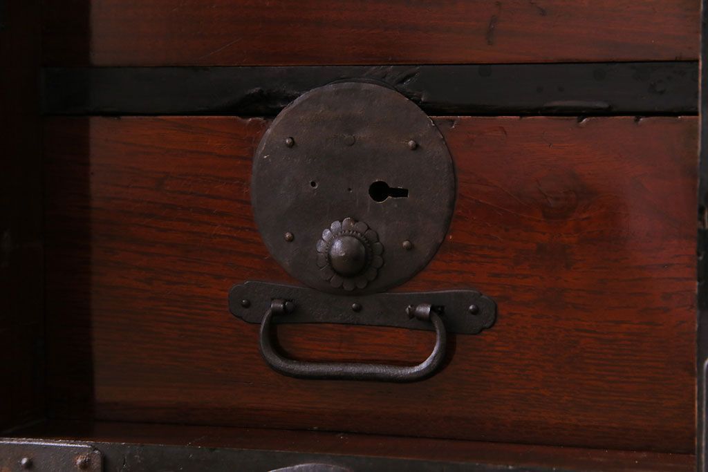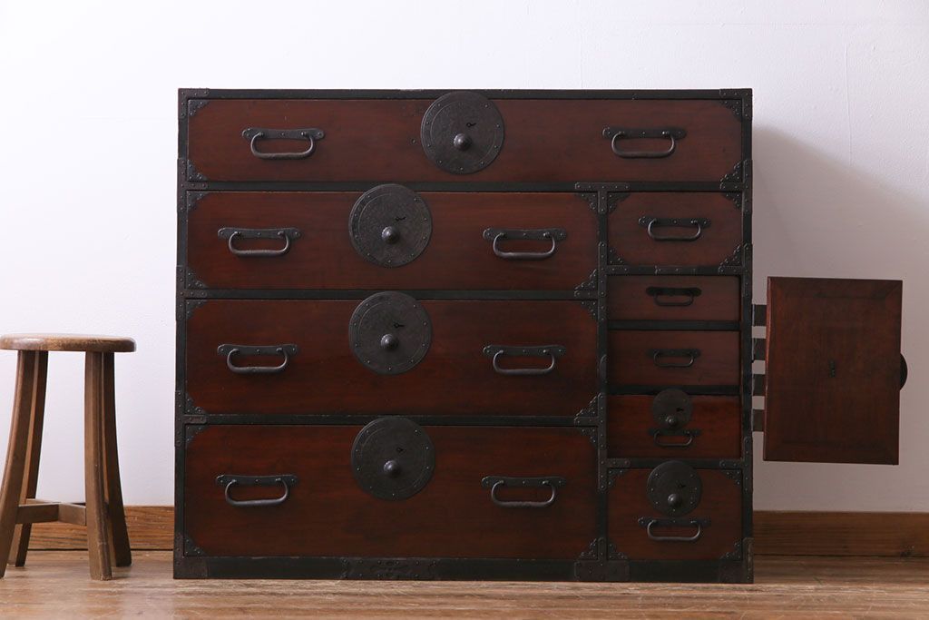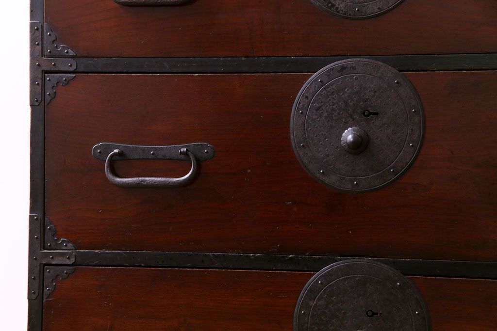 ラフジュ工房> 和箪笥 > アンティーク家具 和製アンティーク 前面栗材 落ち着いた和の雰囲気が魅力の最上箪笥(衣装箪笥、引き出し)