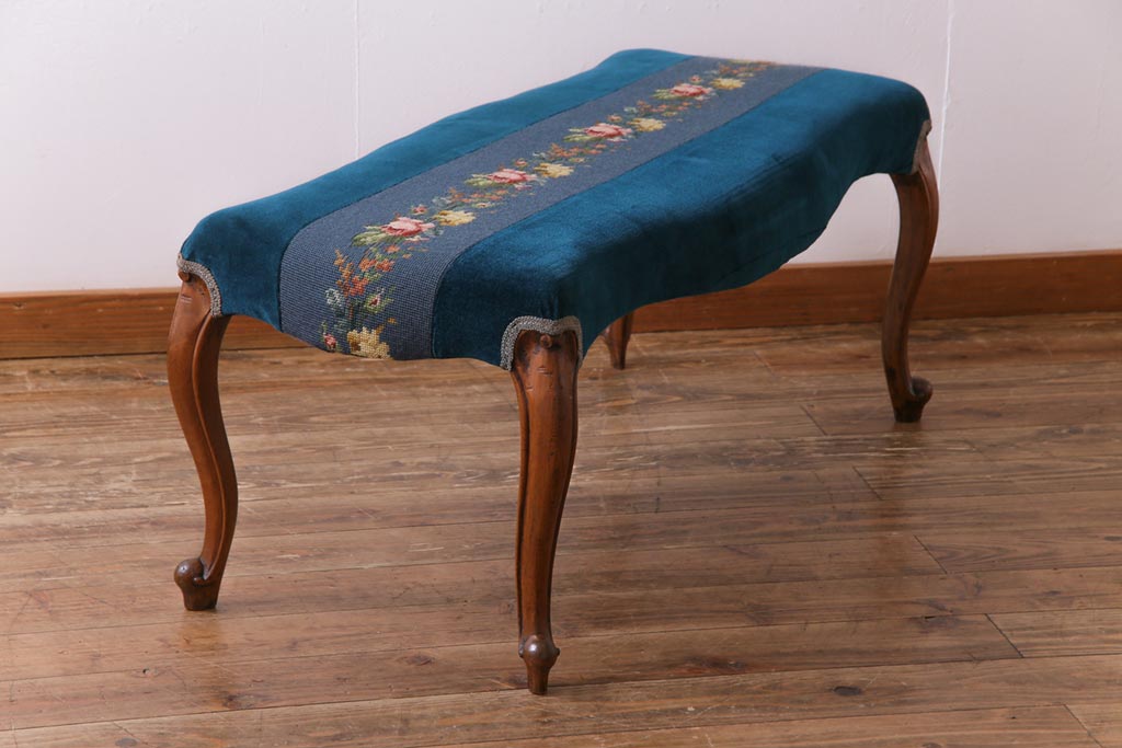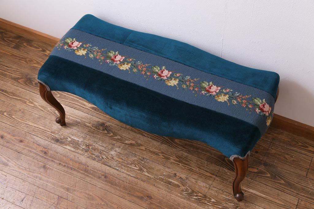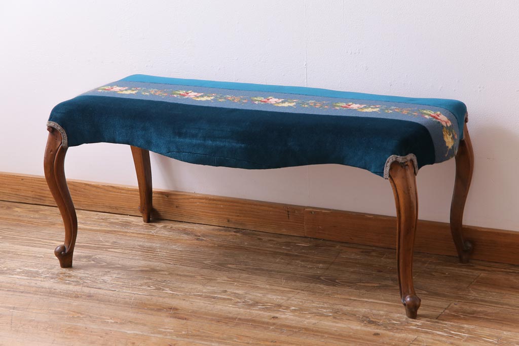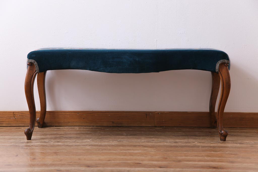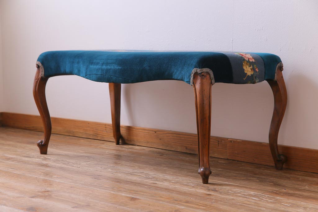 アンティーク家具 フランスアンティーク ゴブラン織り シックなファブリックが高級感漂うアンティークベンチ(椅子)